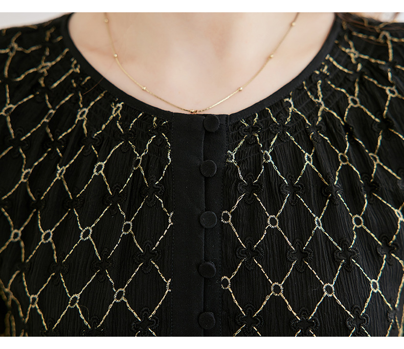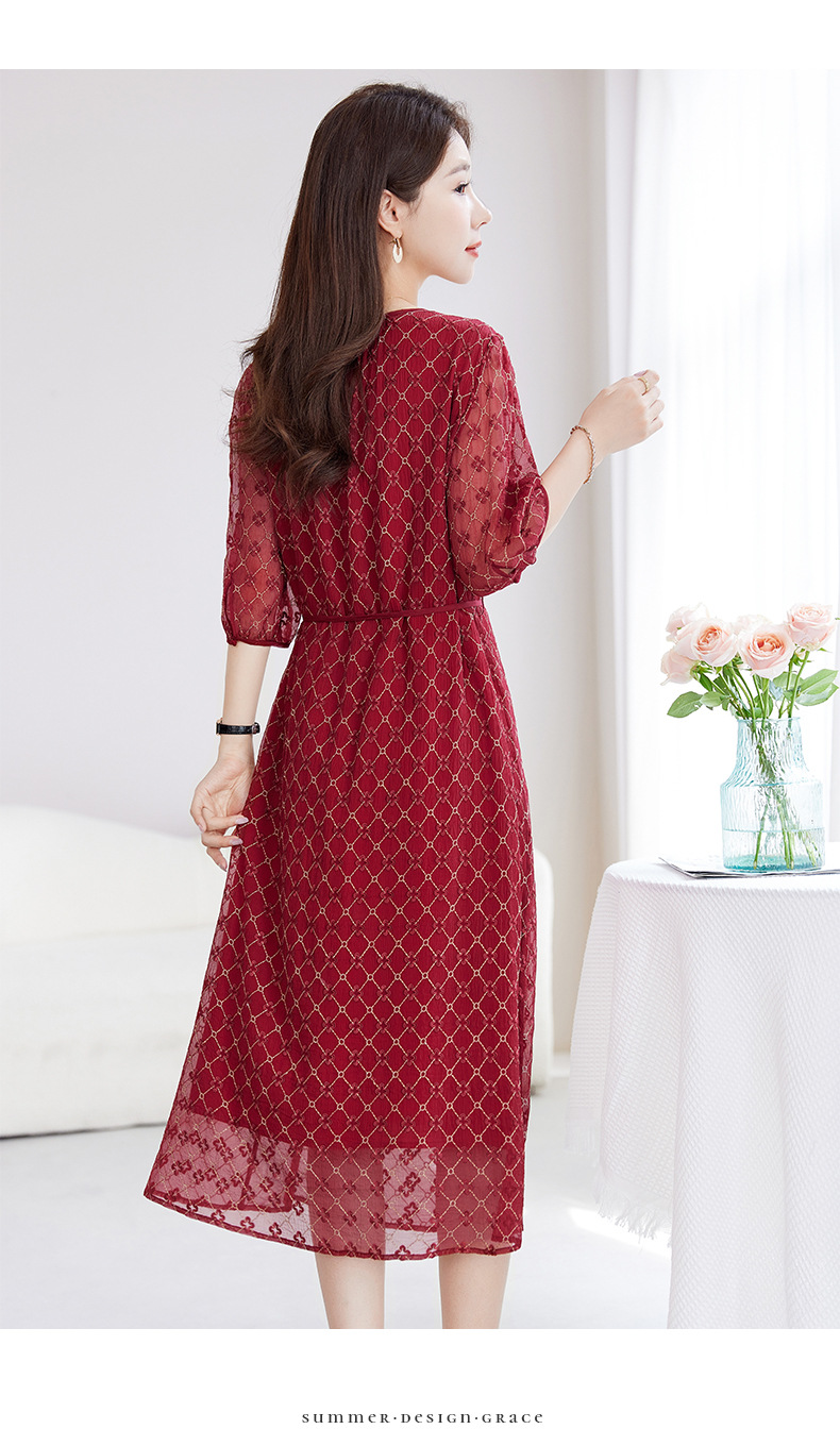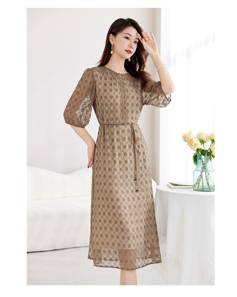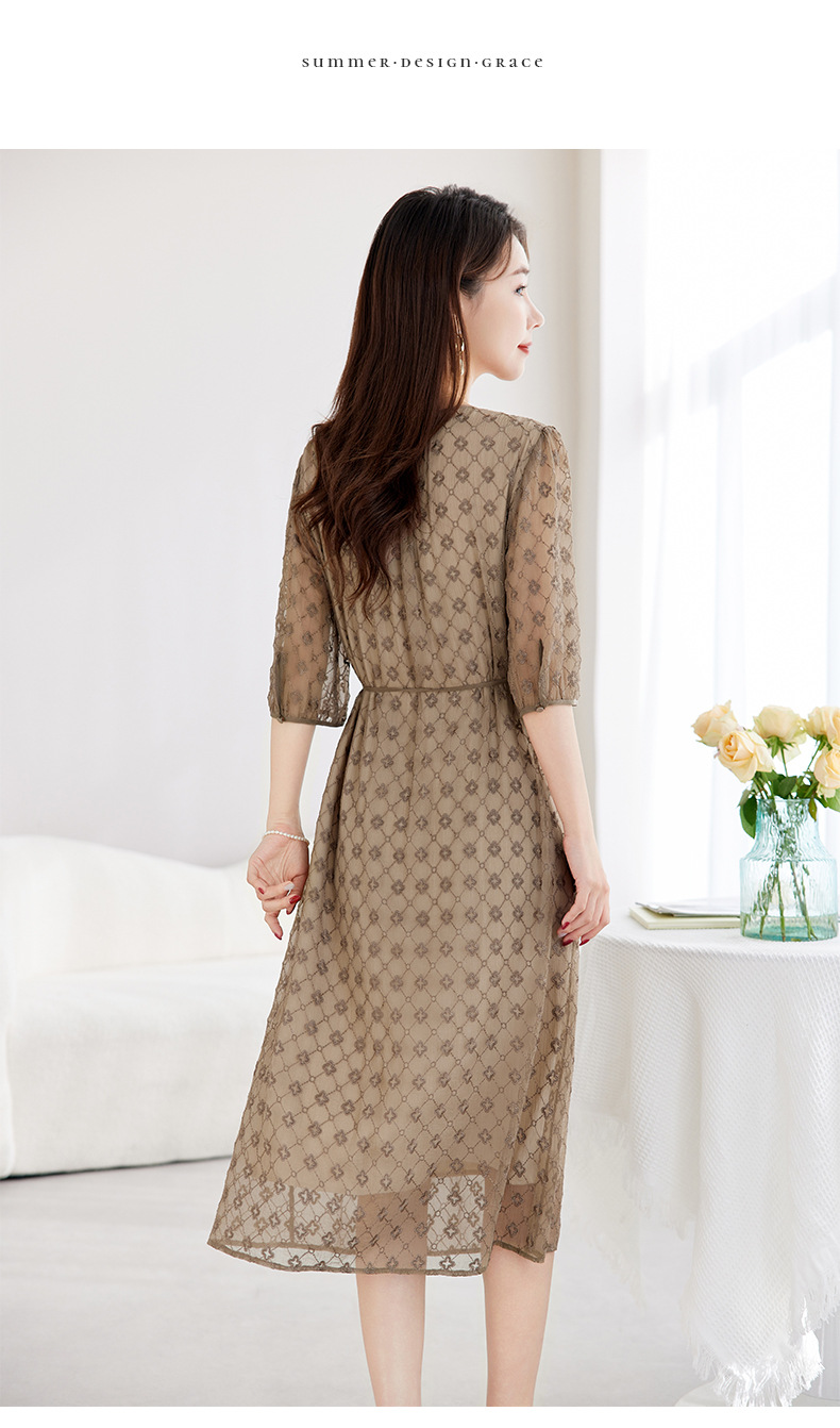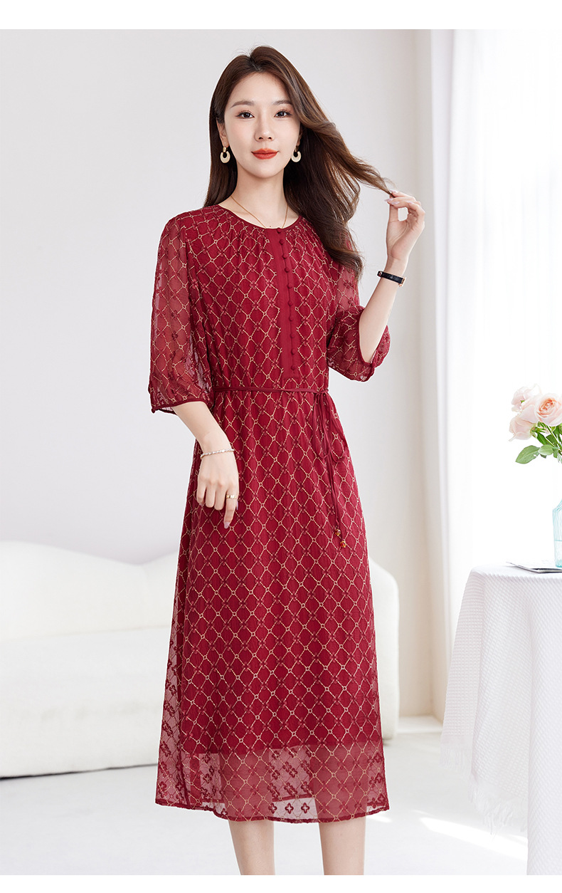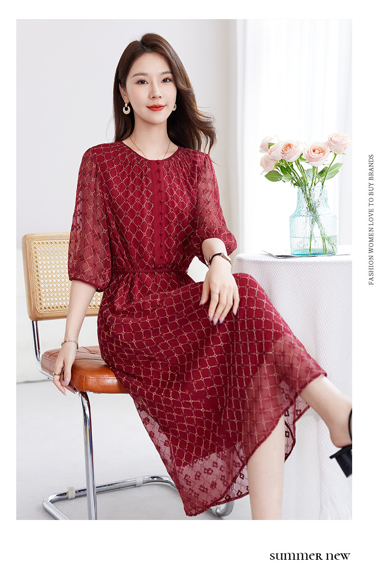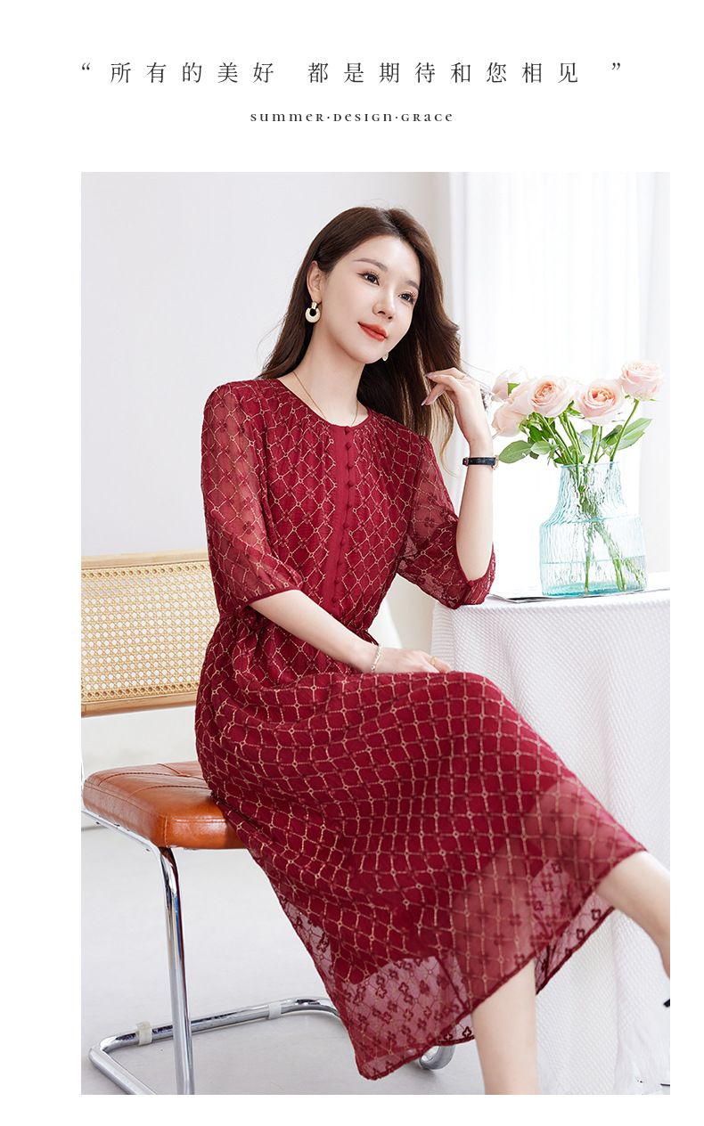 丁摩真丝绣花连衣裙收腰圆领减龄桑蚕丝连衣裙女AL9092