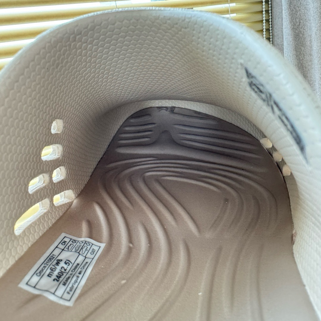 今年的最新款式,旋风波波软底拖鞋,不得不说,这款真的要比其他男款洞洞鞋好看,全包裹设计,外加条纹纹路,让整双鞋看上去更加有型,鞋底是柔软的,上脚又增高,又舒适,一共五个颜色,跟着订单出货,品质无疑,上身百搭,潮男必备款式:黑沙灰,池塘绿,浅杏仁,香草色,大气灰,尺码:M6-M7-M8-M9-M10-M11,码数偏大半码,40脚穿M6正好,M7稍微宽松些,根据个人穿鞋风格下单就好,拖鞋大一点一样舒适……今年的最新款超级推荐,已经自留一双香草色M7,舒适度和颜值都在线……