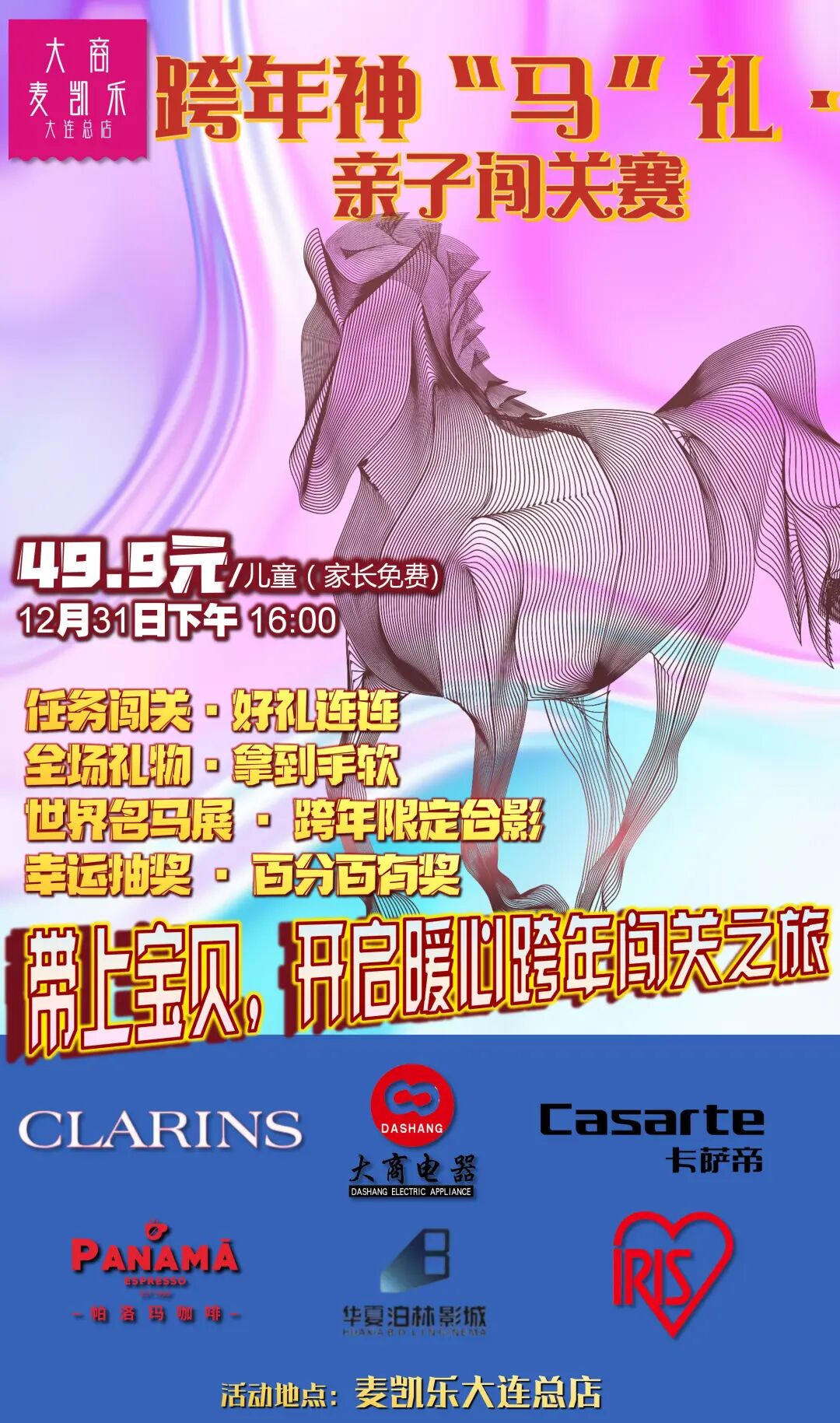 名马互动体验 + 专业摄影服务、6大品牌礼品 + 新年大礼包、2小时趣味闯关、无任何隐藏消费
