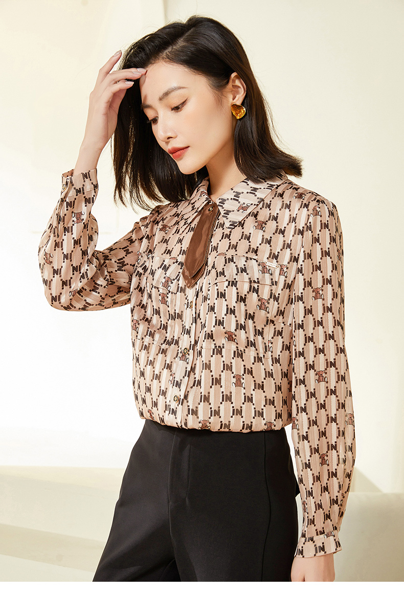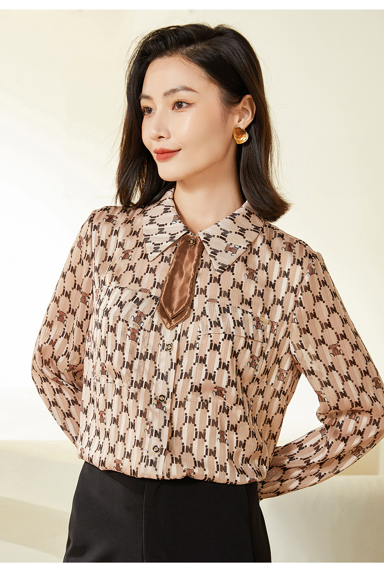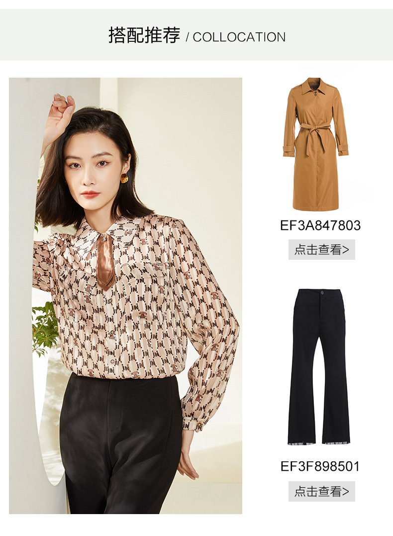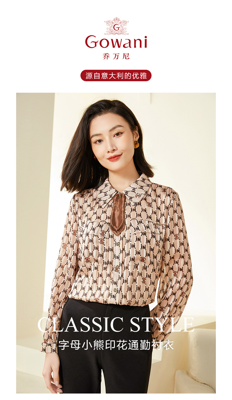 乔万尼新款春装高级感衬衫女减龄印花设计长袖款EF3C876