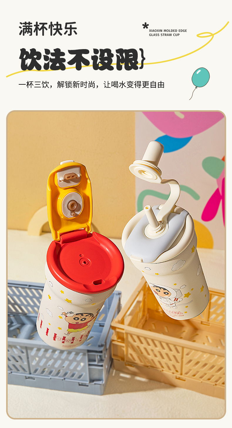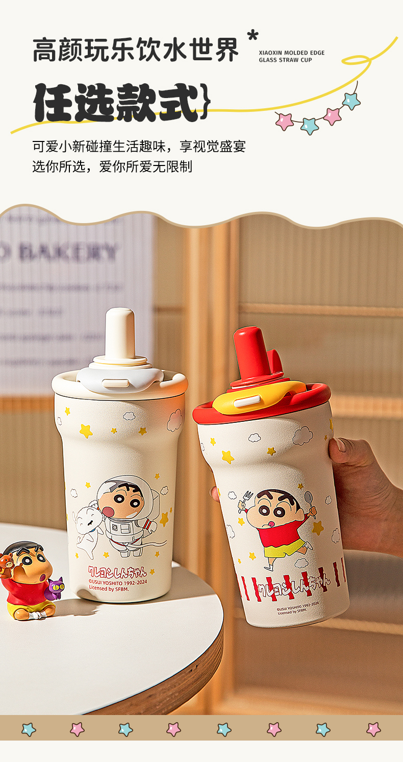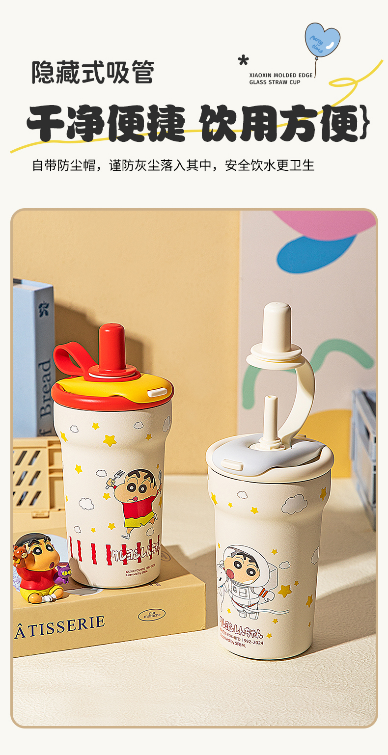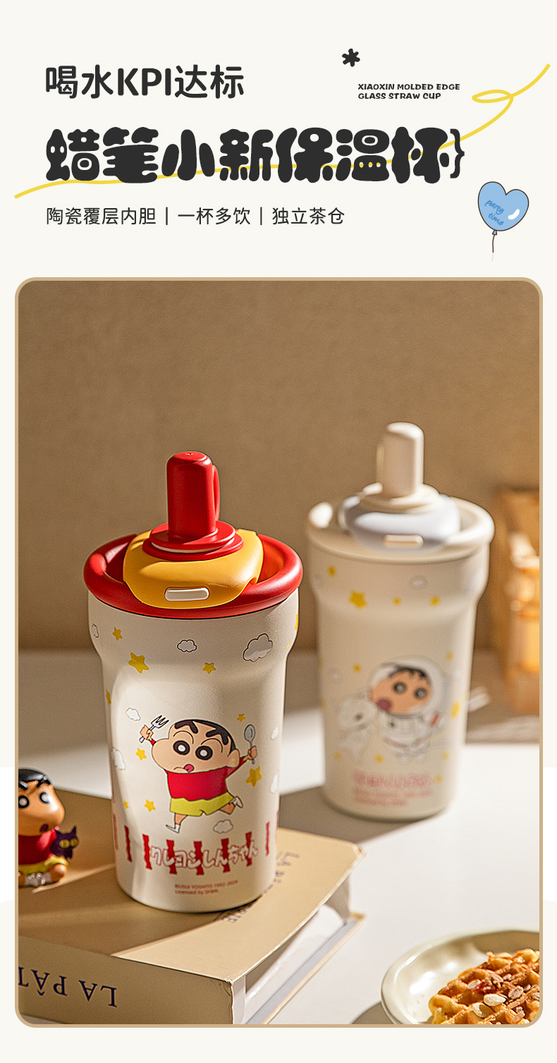 摩登主妇蜡笔小新水杯女生2025新款杯子吸管杯陶瓷内胆儿童保温杯