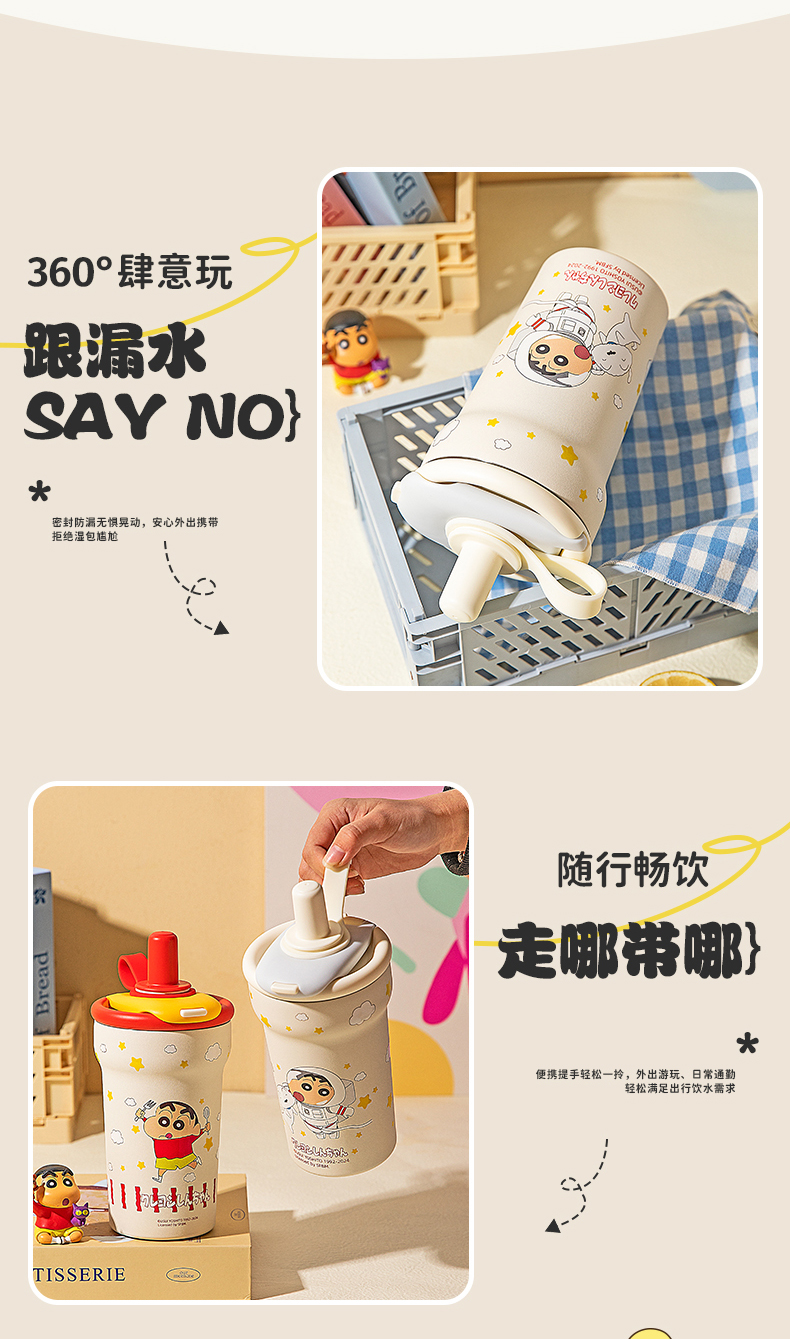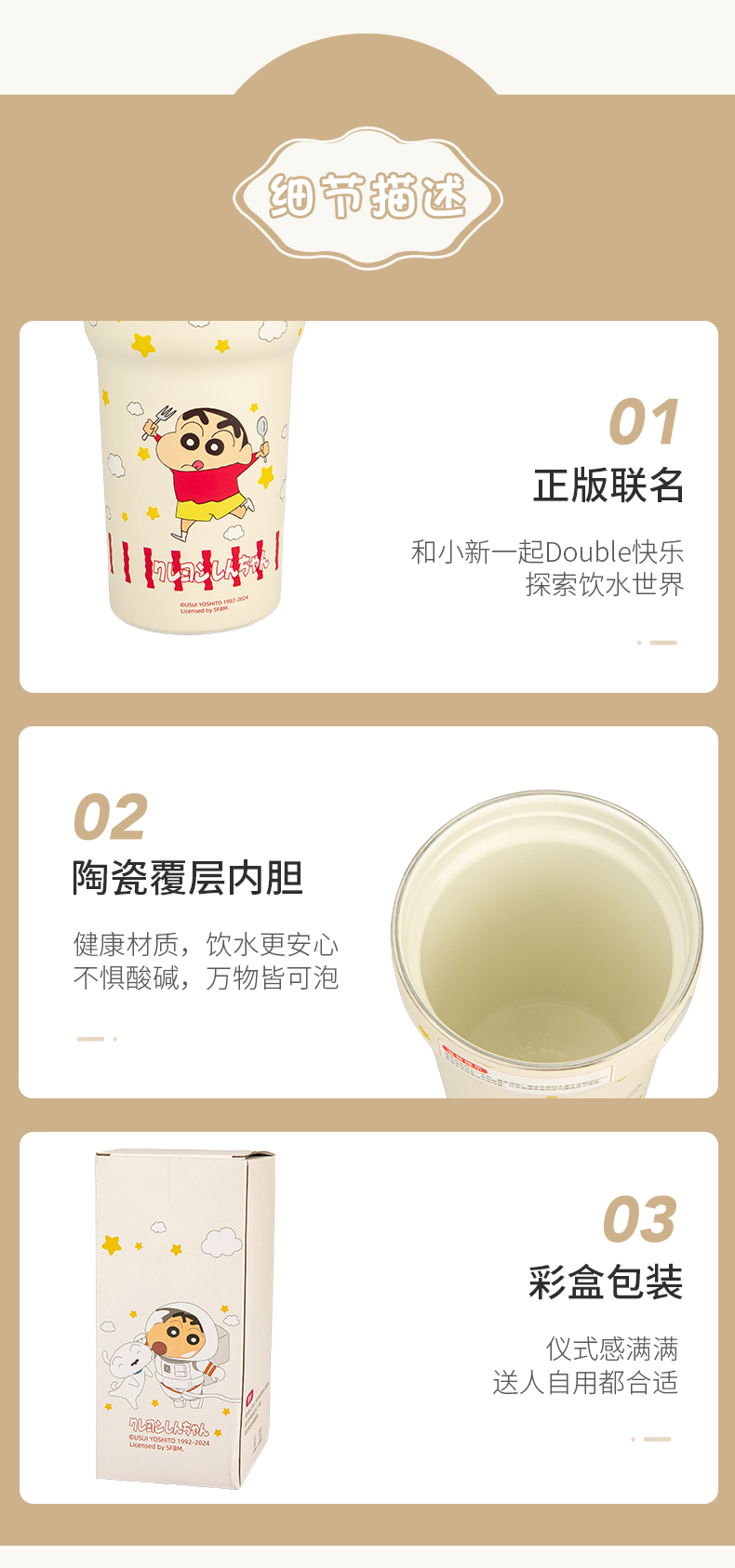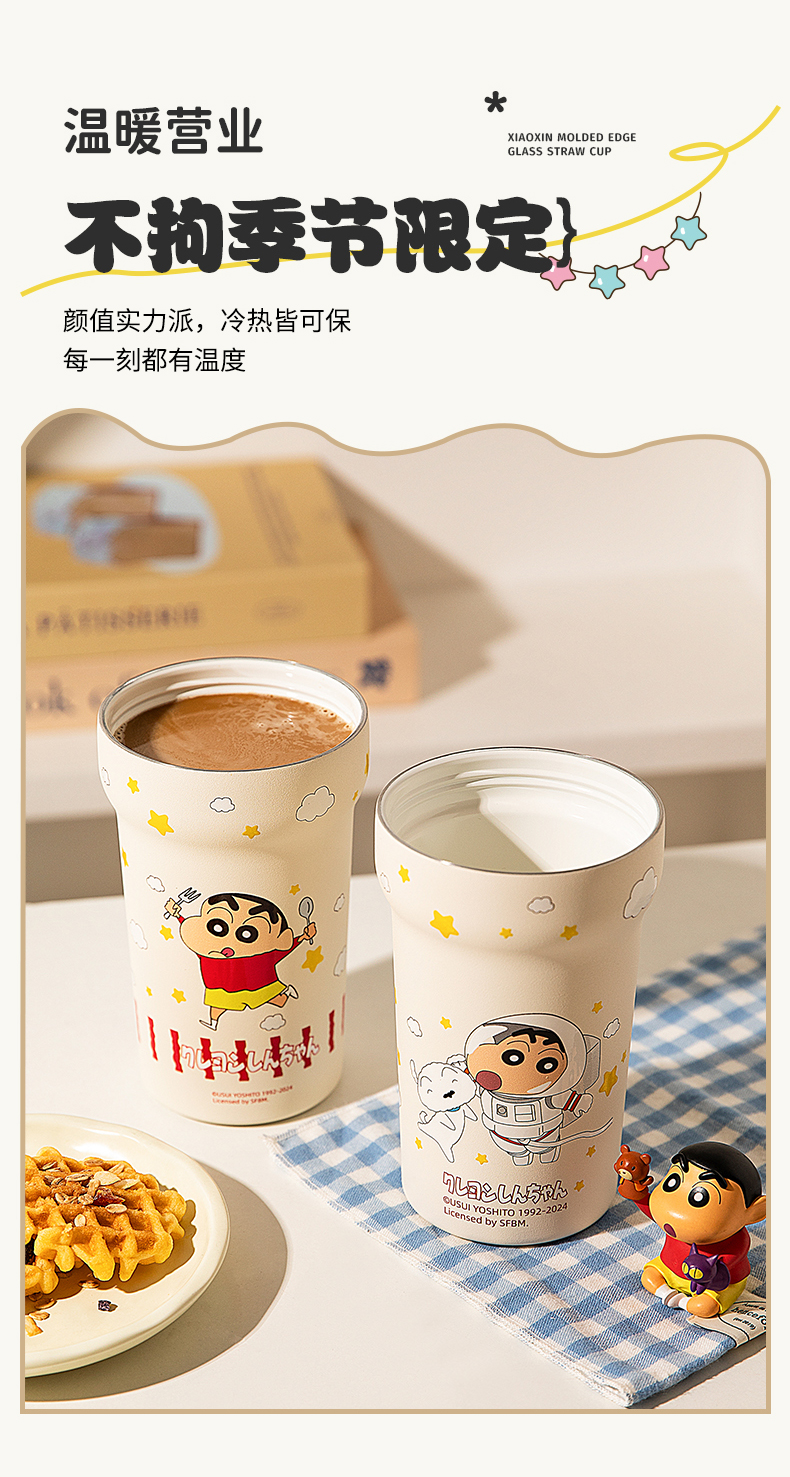 摩登主妇蜡笔小新水杯女生2025新款杯子吸管杯陶瓷内胆儿童保温杯