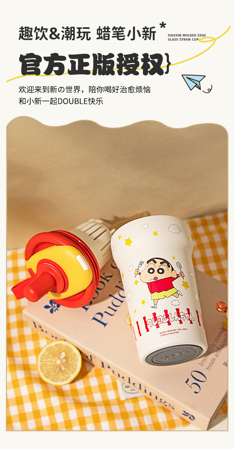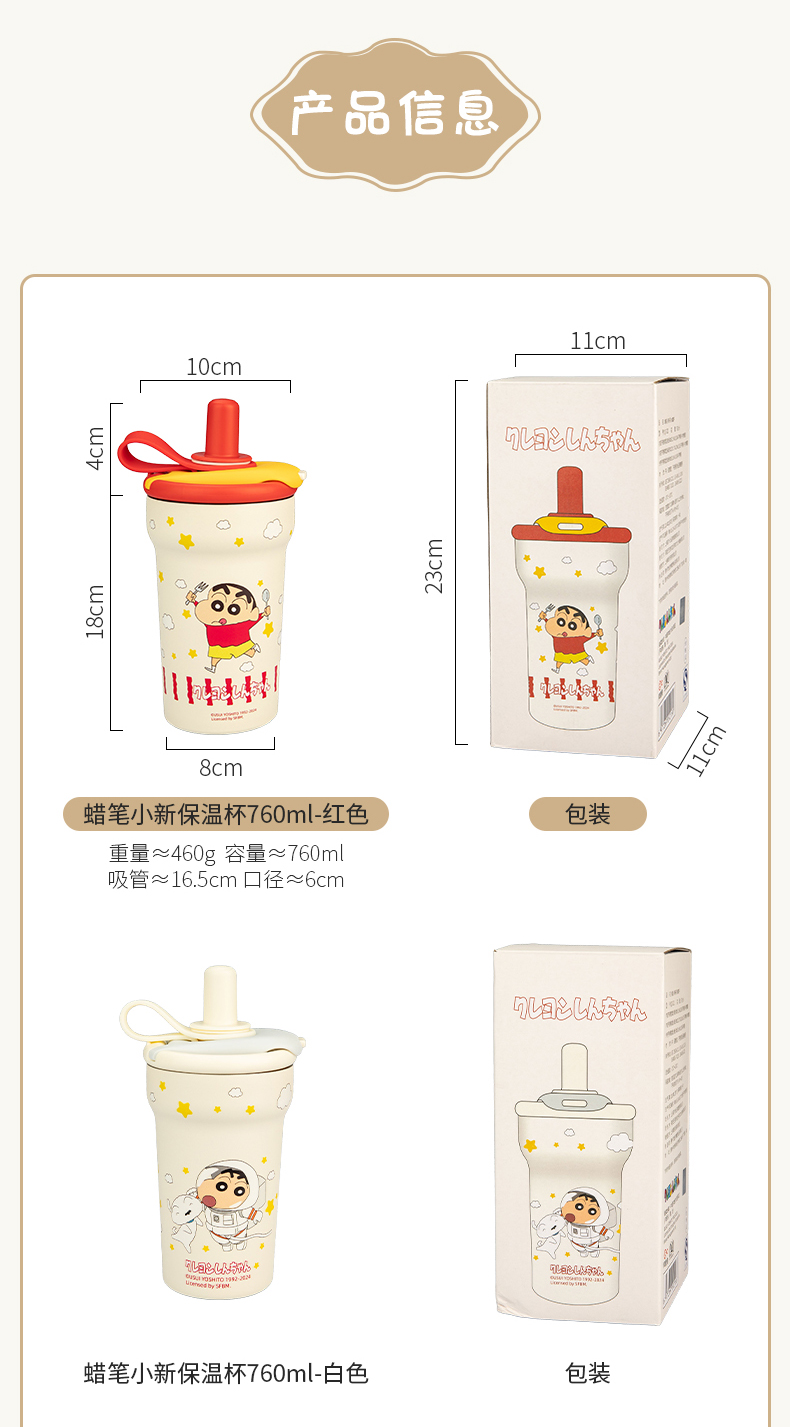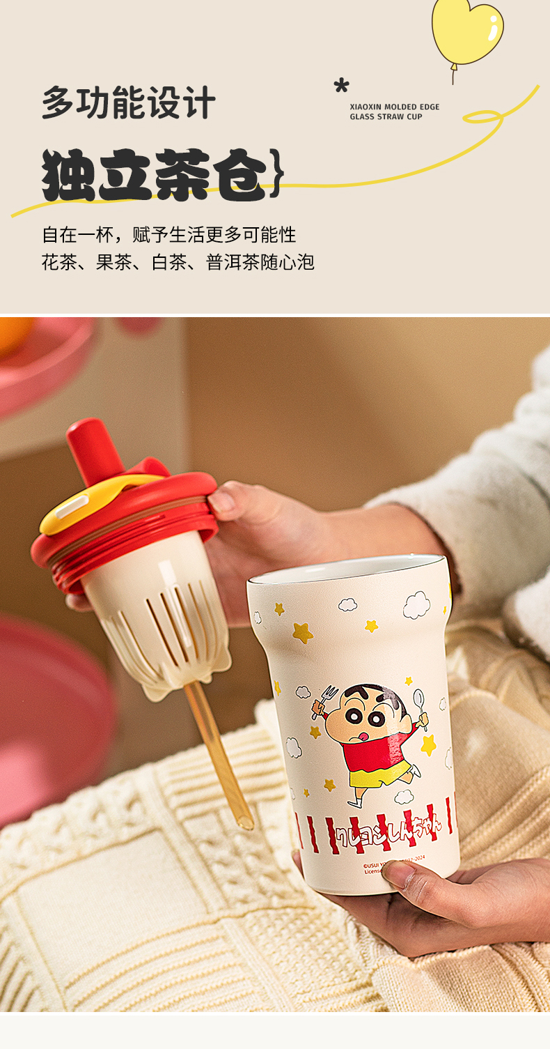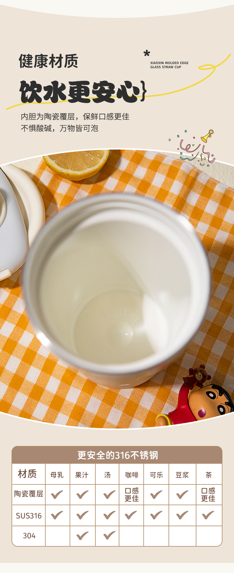 摩登主妇蜡笔小新水杯女生2025新款杯子吸管杯陶瓷内胆儿童保温杯