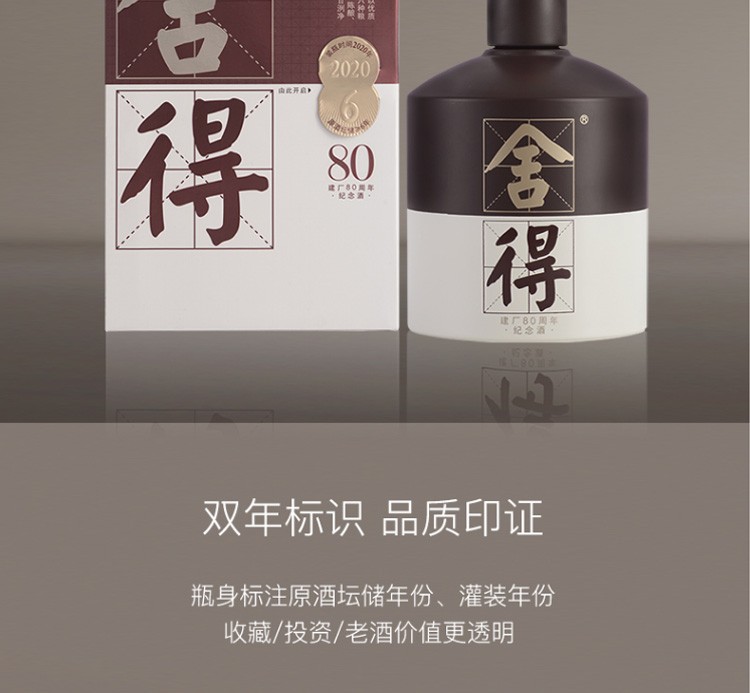 【元旦捡漏】【2020年】舍得 建厂80周年纪念款 浓香型 52度 500ml单瓶装