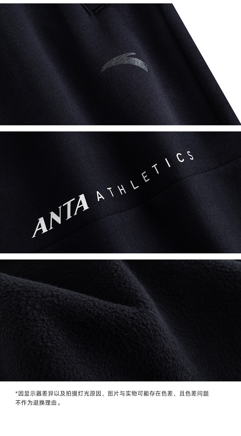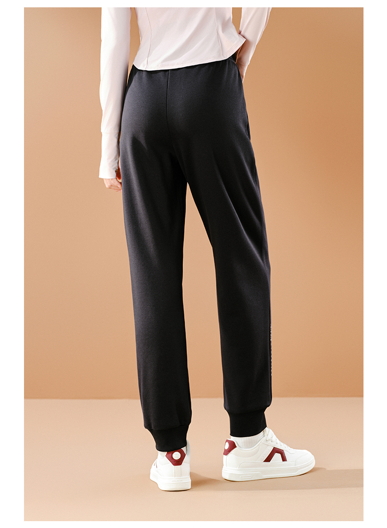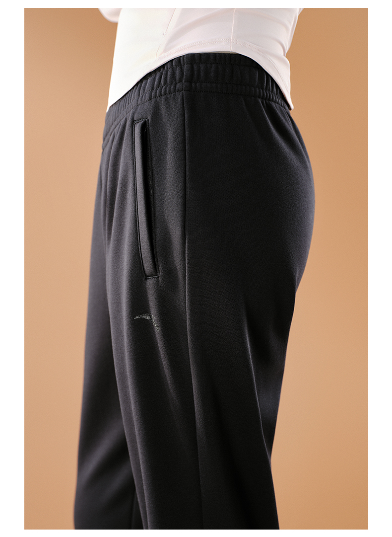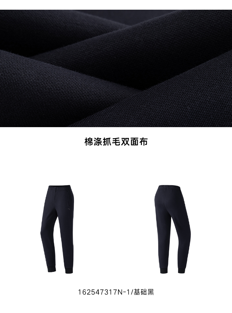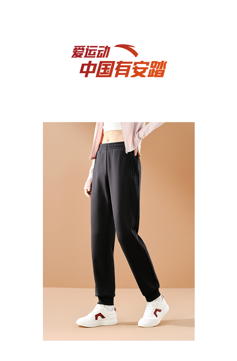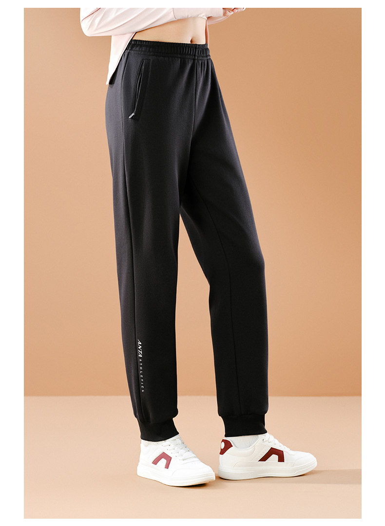 安踏针织运动长裤女2025新款加绒束脚卫裤黑色跑步裤子162547317N