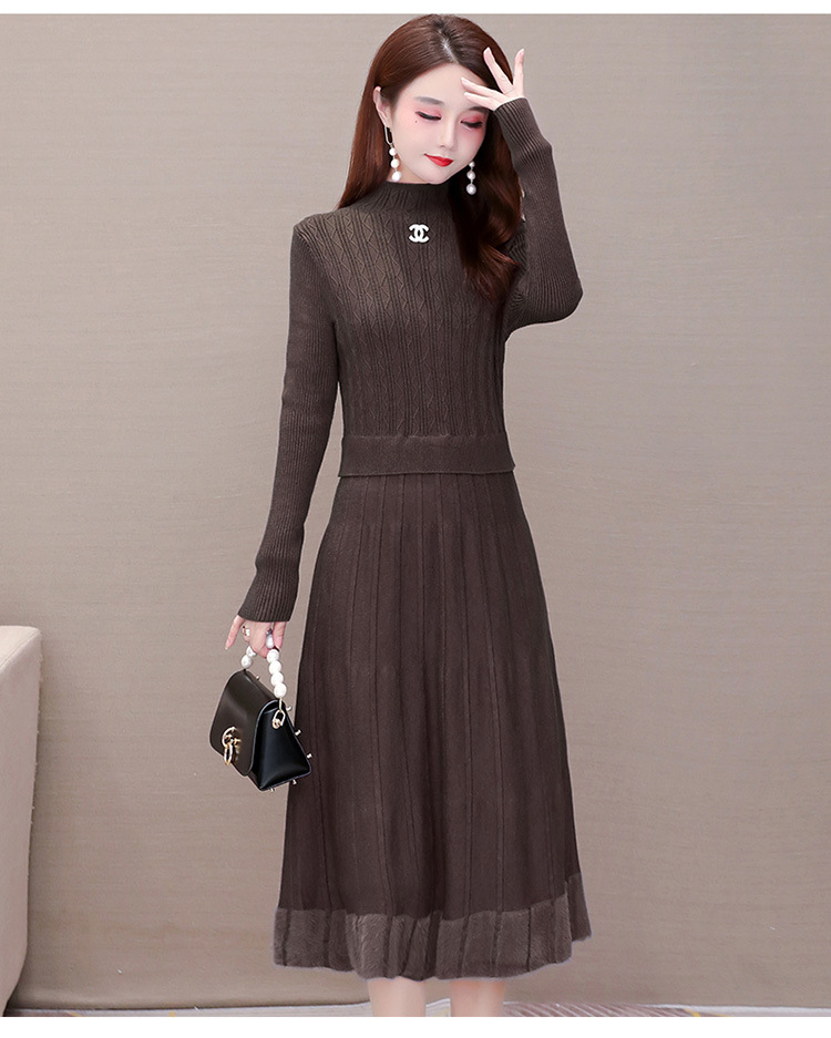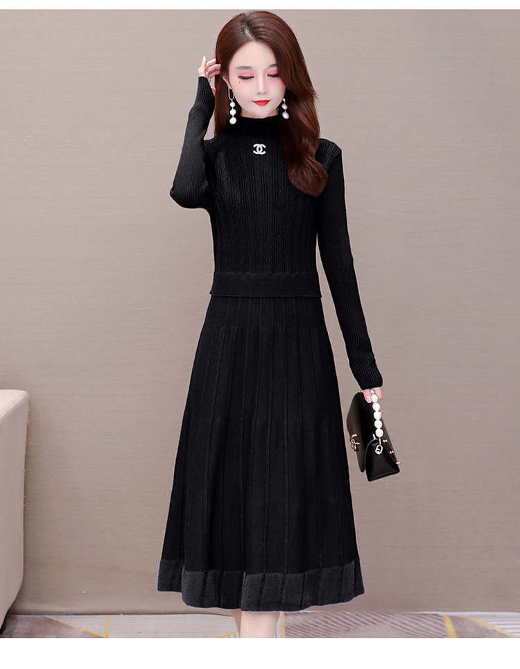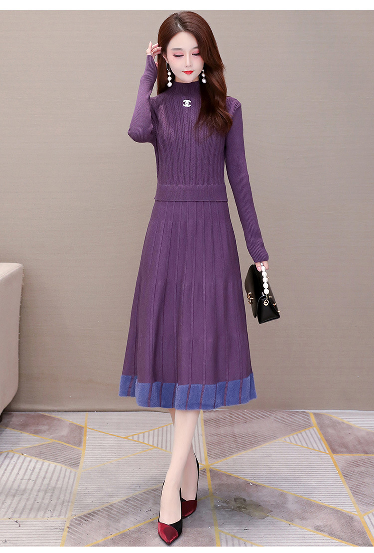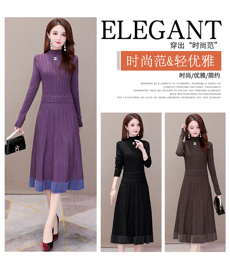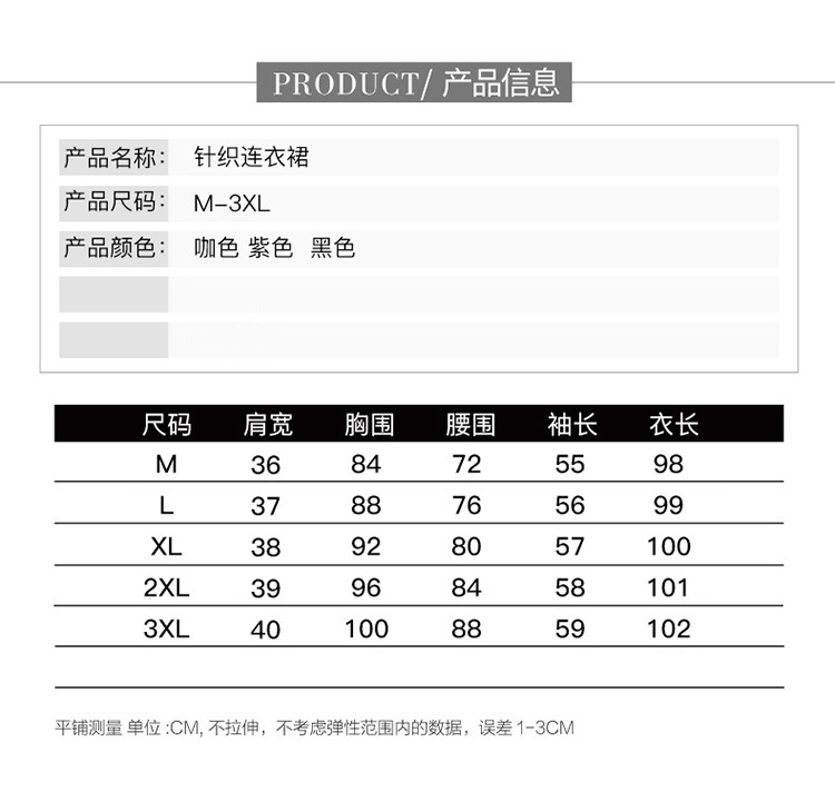 QYM 5CXFNR815-Y针织连衣裙厚款毛线裙秋冬季保暖内外可穿A字裙 商品图1