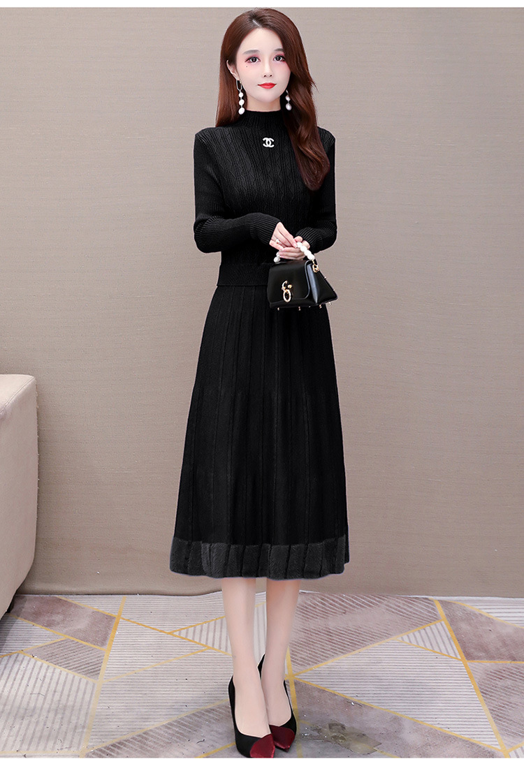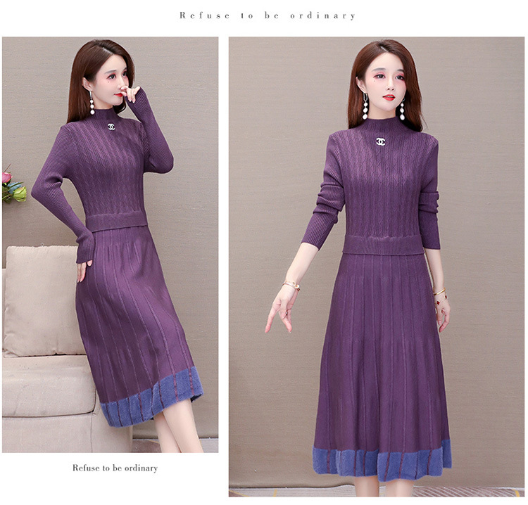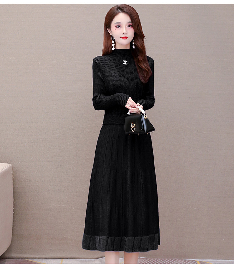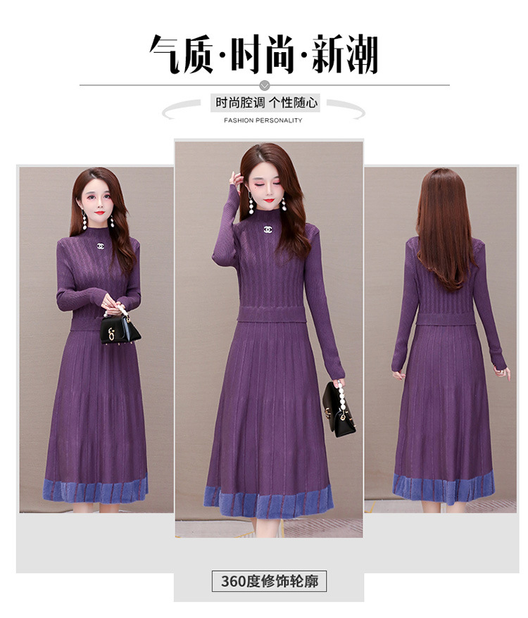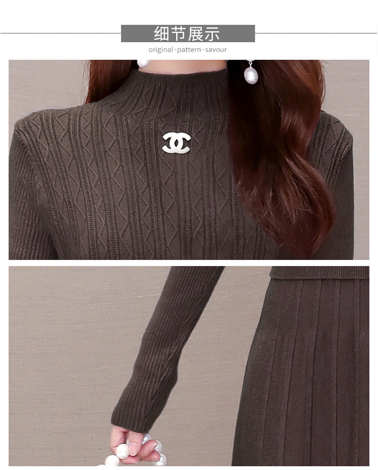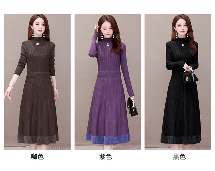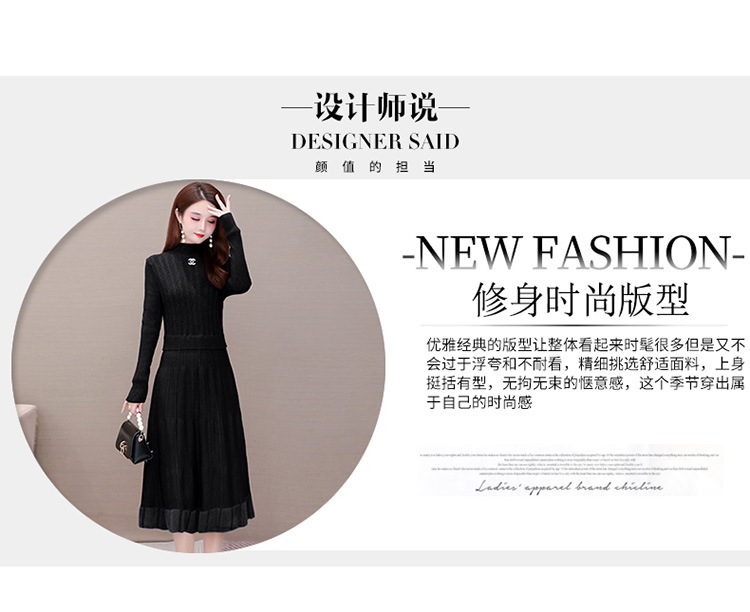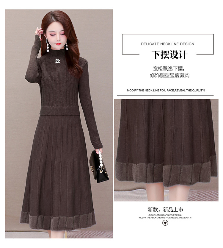 QYM 5CXFNR815-Y针织连衣裙厚款毛线裙秋冬季保暖内外可穿A字裙 商品图3