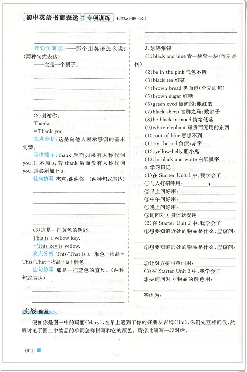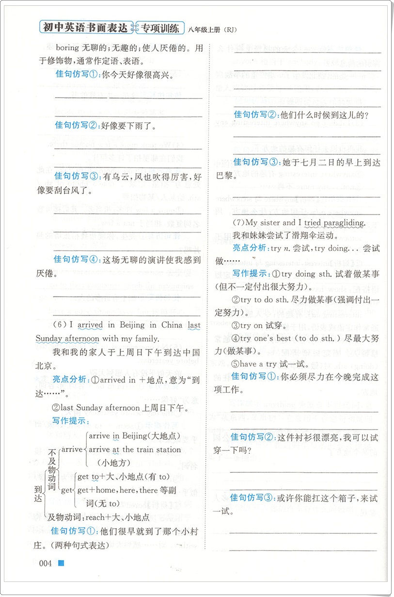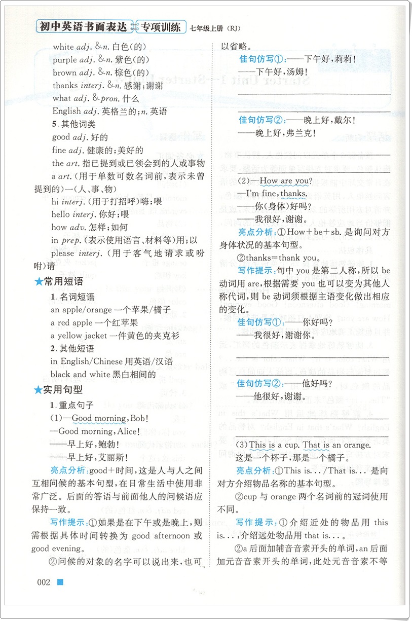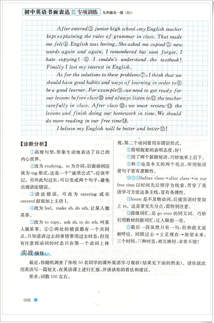 初中英语书面表达专项训练七年级上册八年级上册九年级全一册