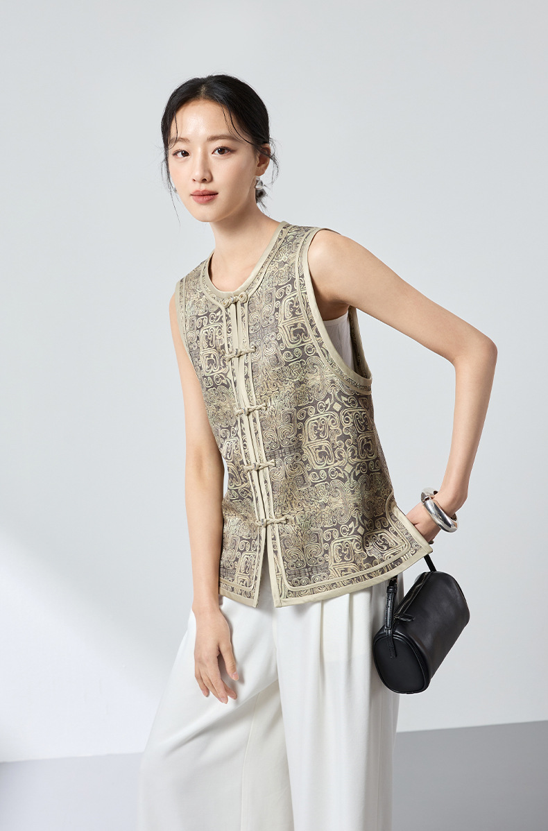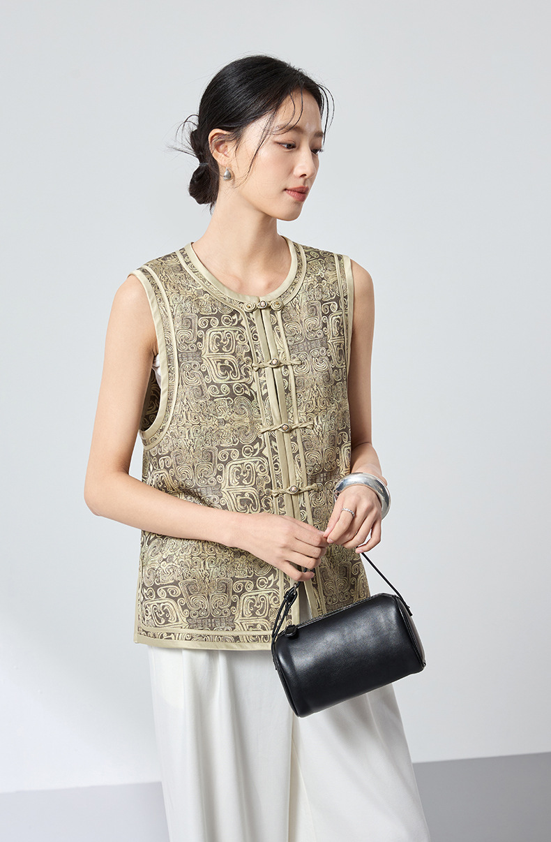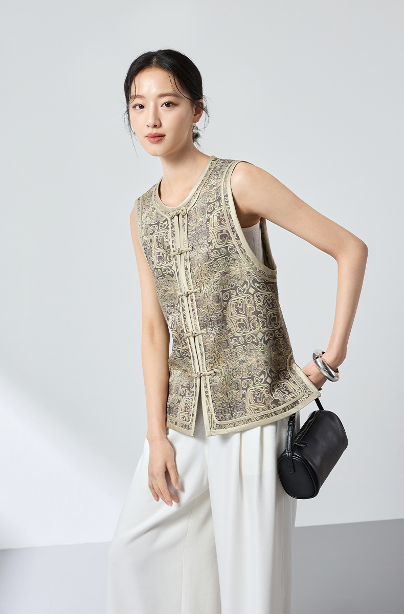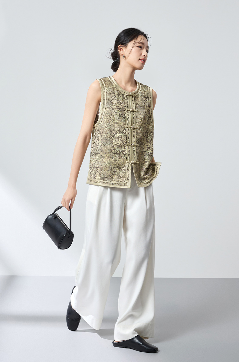 QS原创中式真丝羊毛混纺马甲重工提花高级轻奢马甲26春气质上衣2899