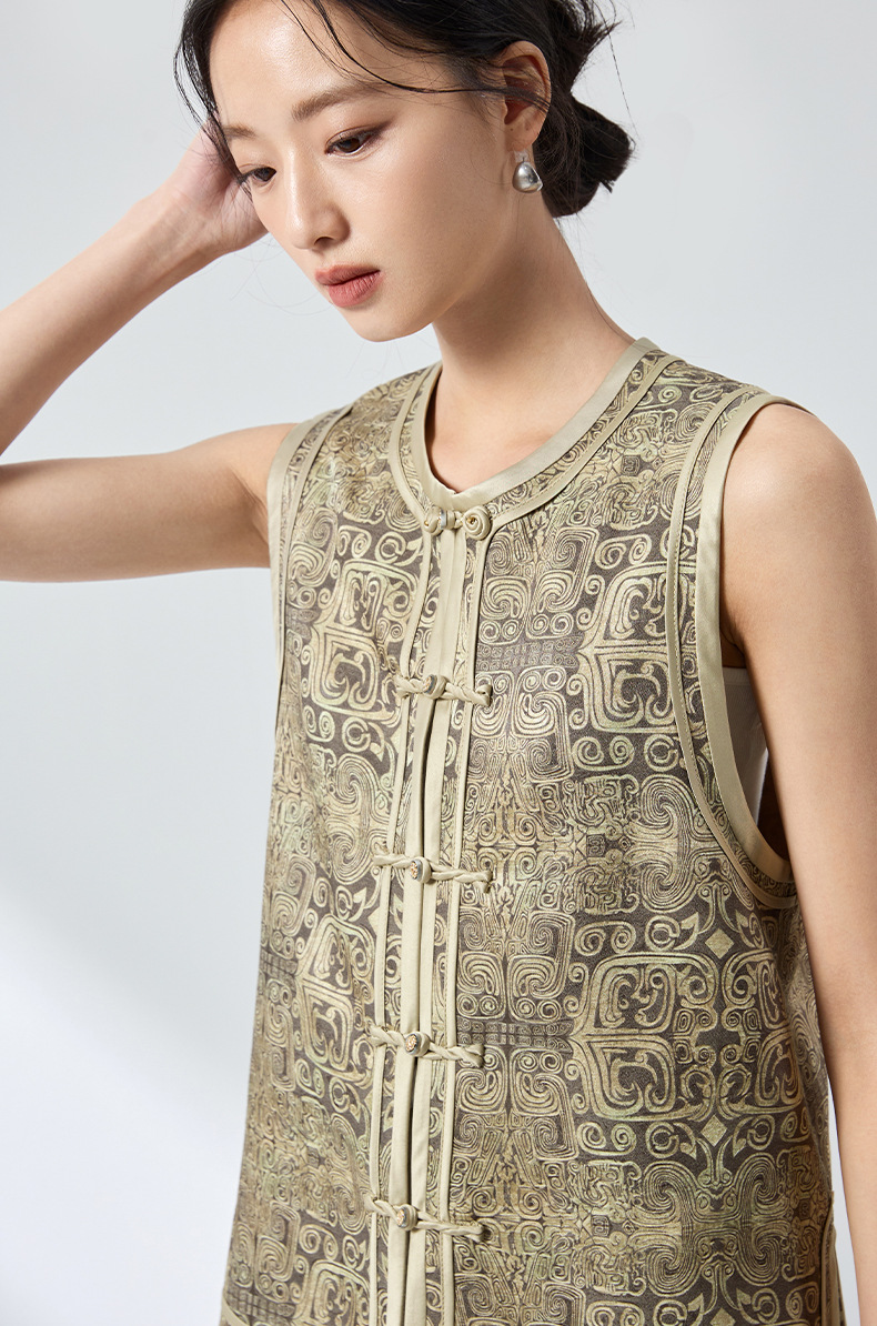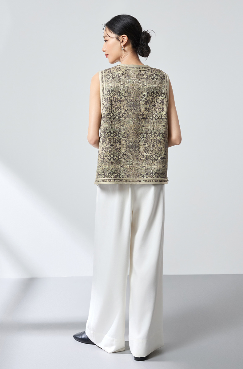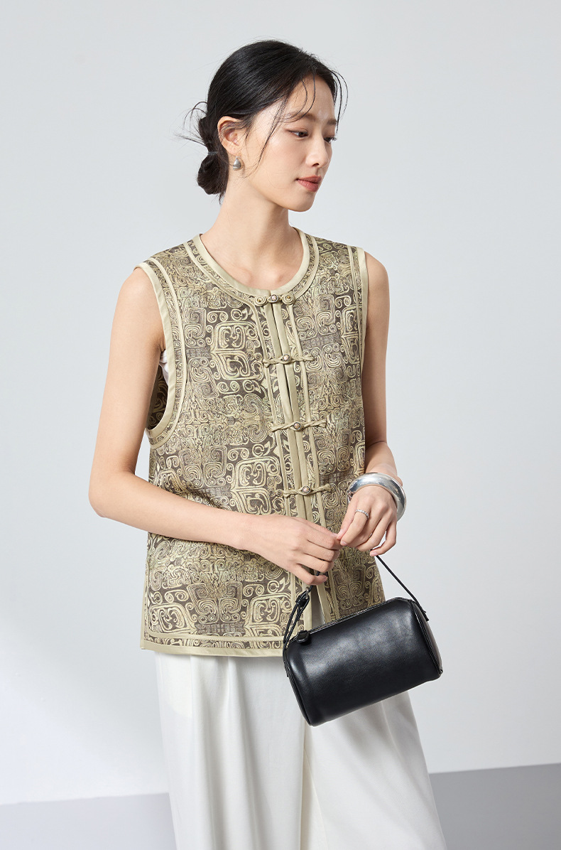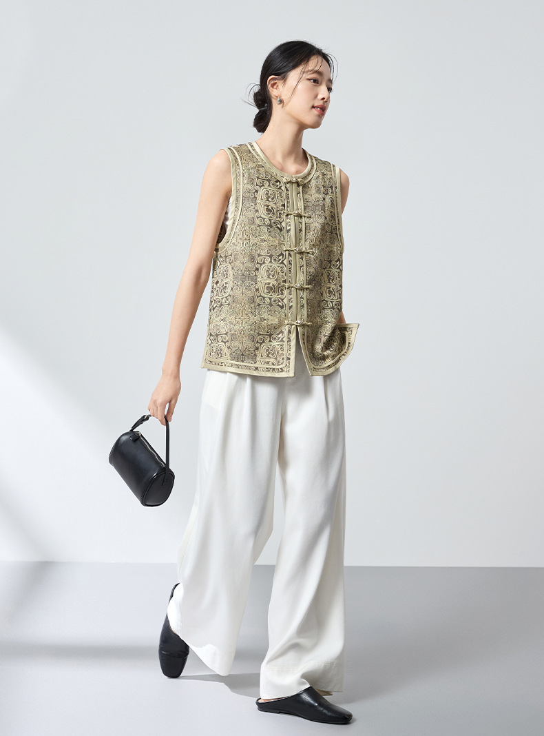 QS原创中式真丝羊毛混纺马甲重工提花高级轻奢马甲26春气质上衣2899