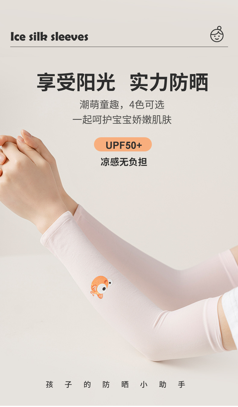 【39.9/任选3双!】A类品质儿童冰袖防晒防紫外线UPF50+冰丝套袖套,高弹透气柔韧活动不受限,分段舒压佩戴更舒适!-ry