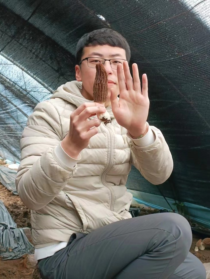 这款羊肚菌的生产者叫张友,2016年河北农大农业机械专业毕业,在北京一家有机农场从事有机农业的相关工作,主要做选品的工作,先后对接过上百家单位,几百款产品,2021年离职,开始种植生态羊肚菌和赤松茸。