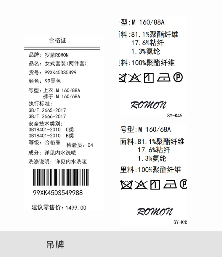 面料:81.1%聚酯纤维17.6%粘纤1.3%氨纶