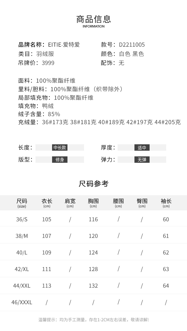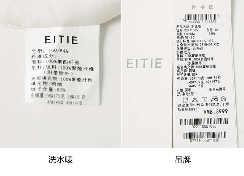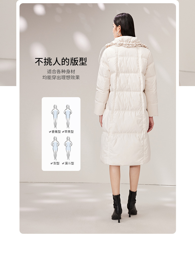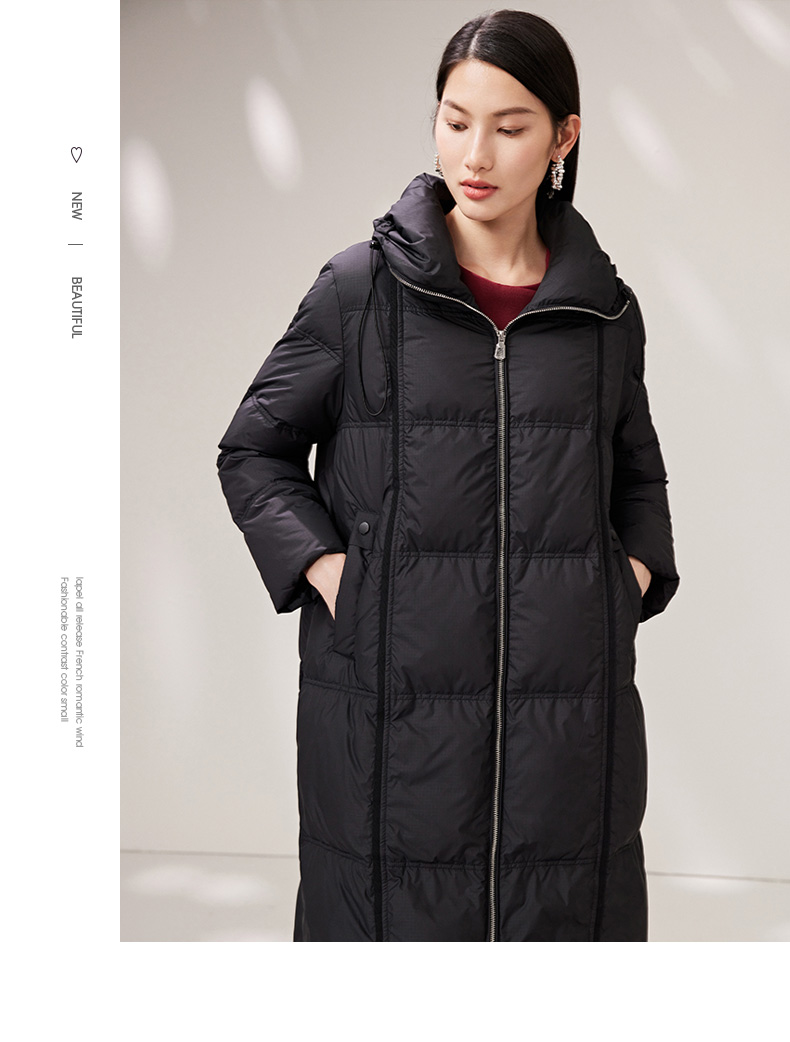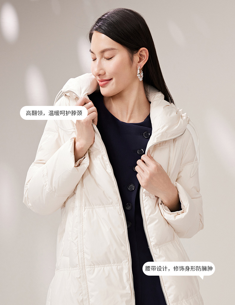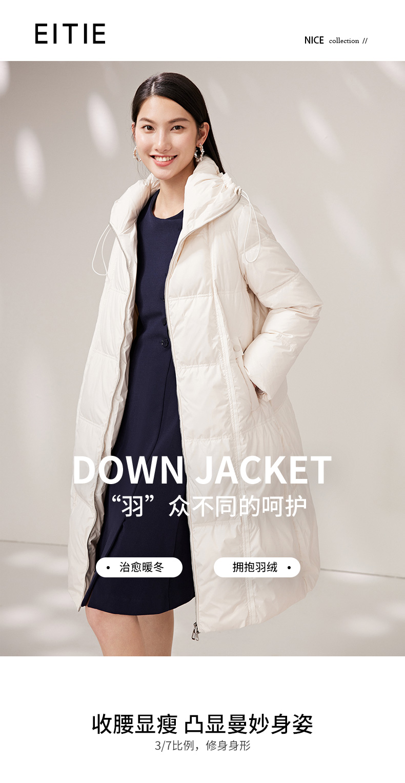 EITIE爱特爱纯色茧型保暖翻领羽绒服舒适柔软百搭显瘦冬新款D2211005
