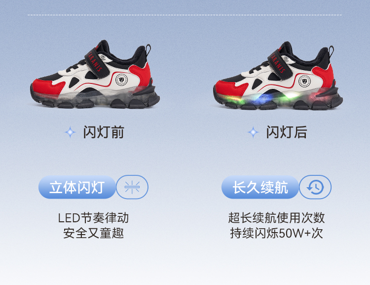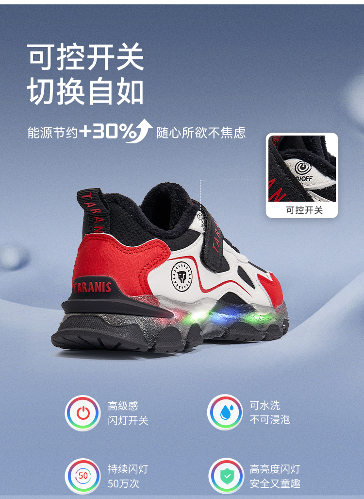 【泰兰尼斯】【新品】小童段冬款加绒保暖时尚舒适闪灯鞋运动鞋T01X5D8448