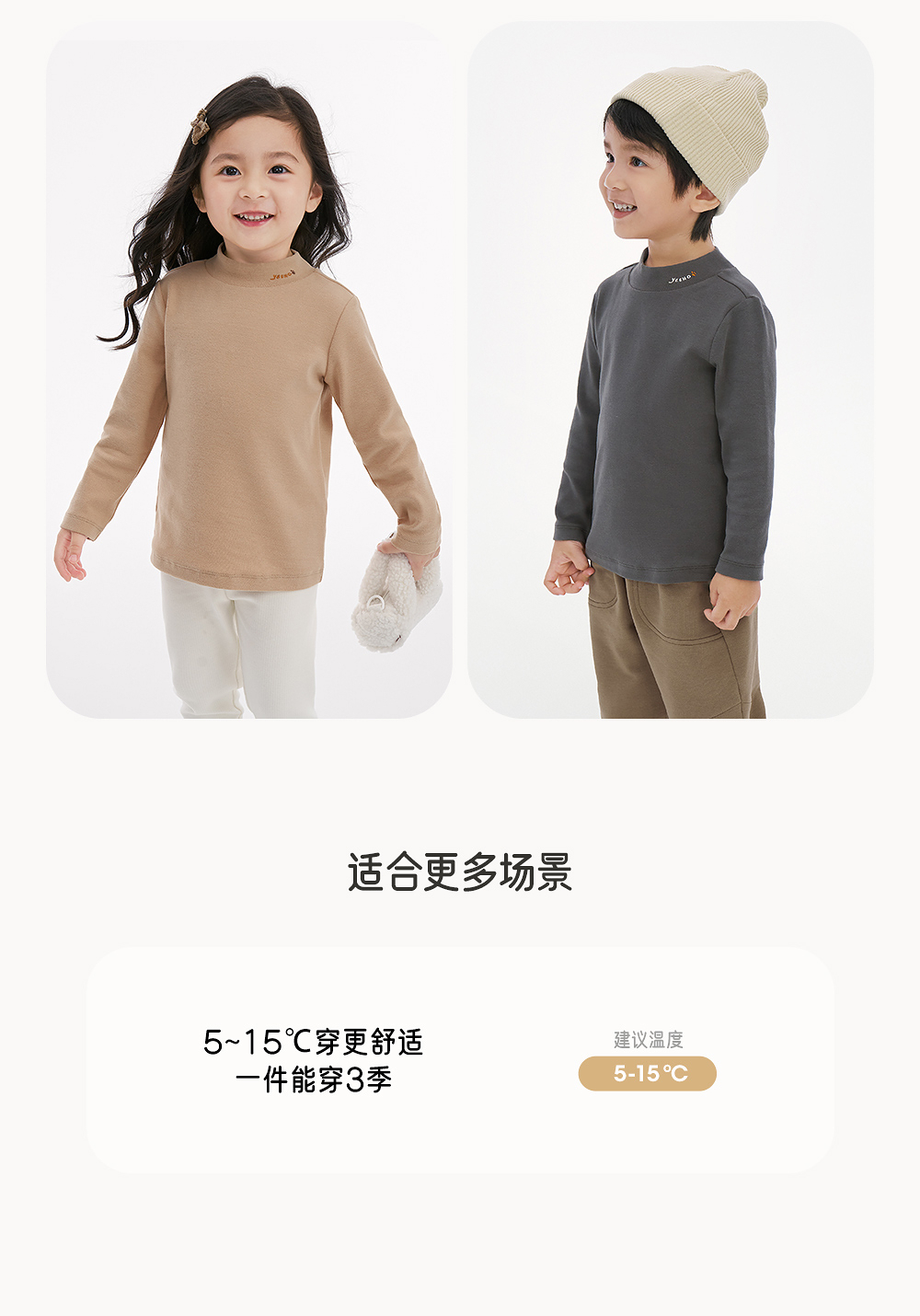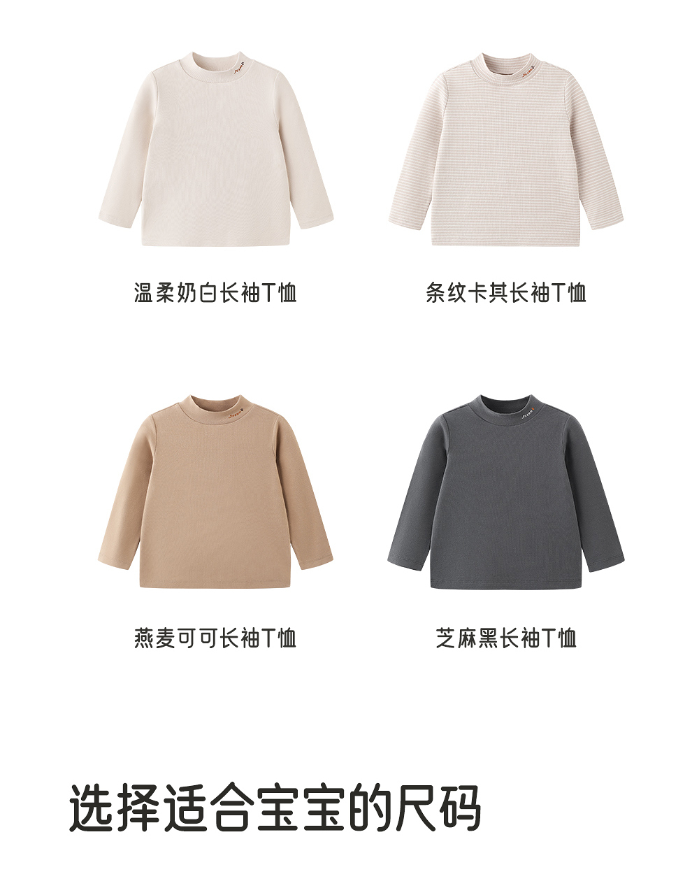 英氏儿童打底衫春秋季长袖男女童纯色百搭套头衫T恤中大童基础款