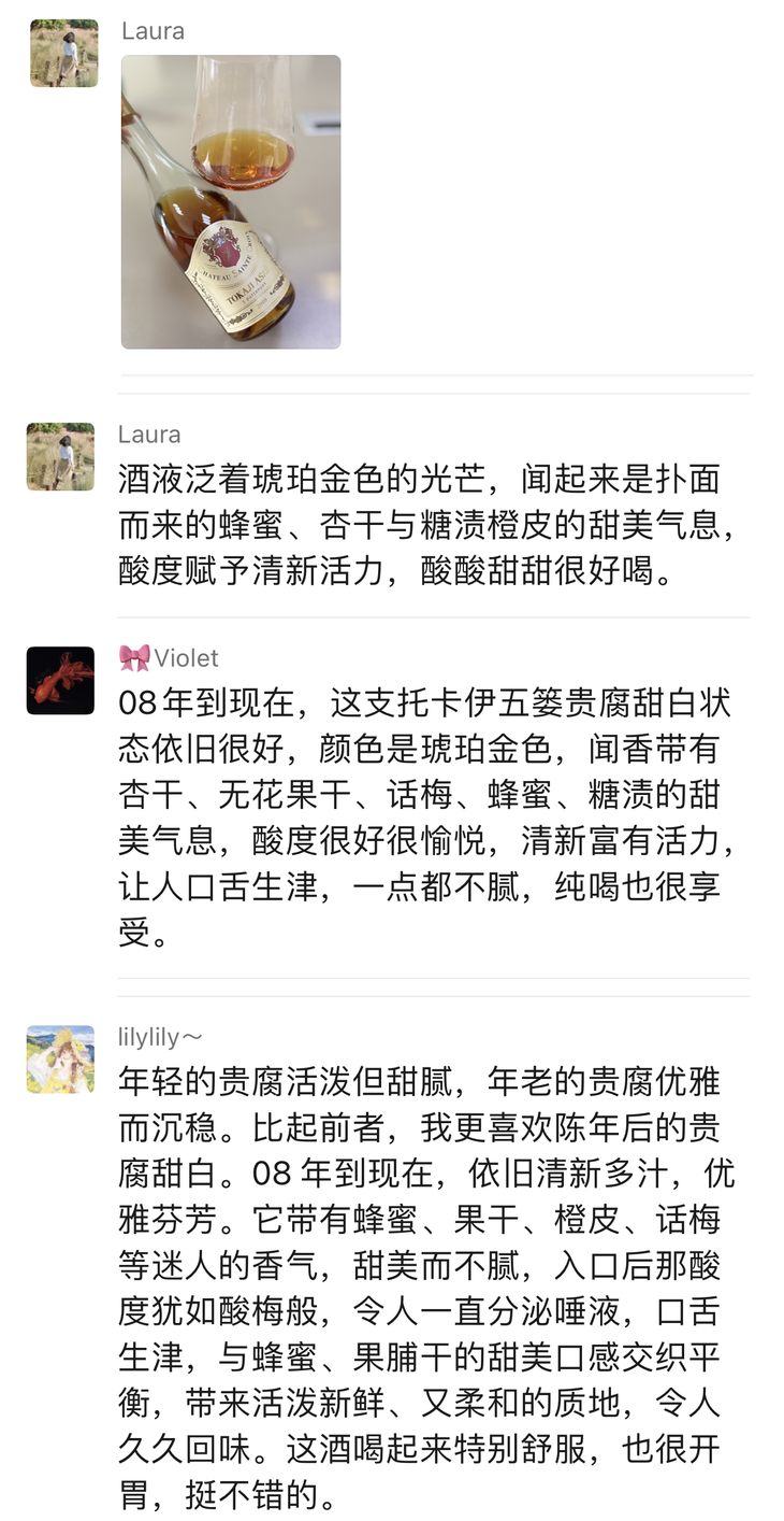 此酒属托卡伊 5 篓贵腐甜白,甜渣党闭眼入;