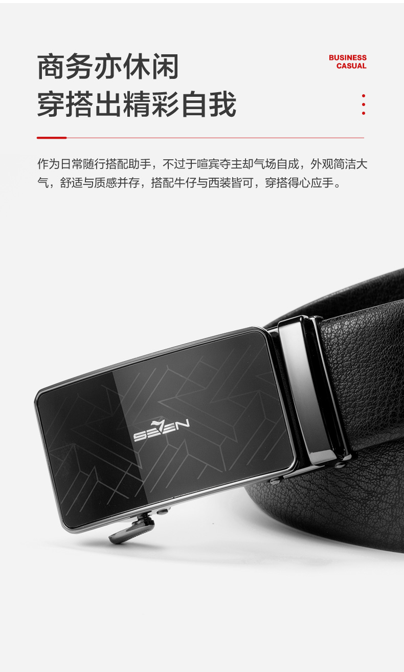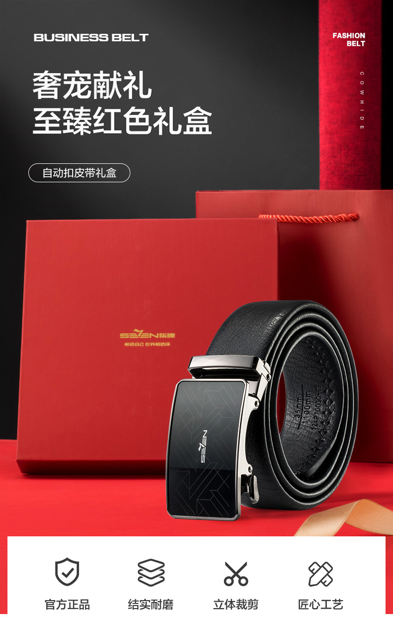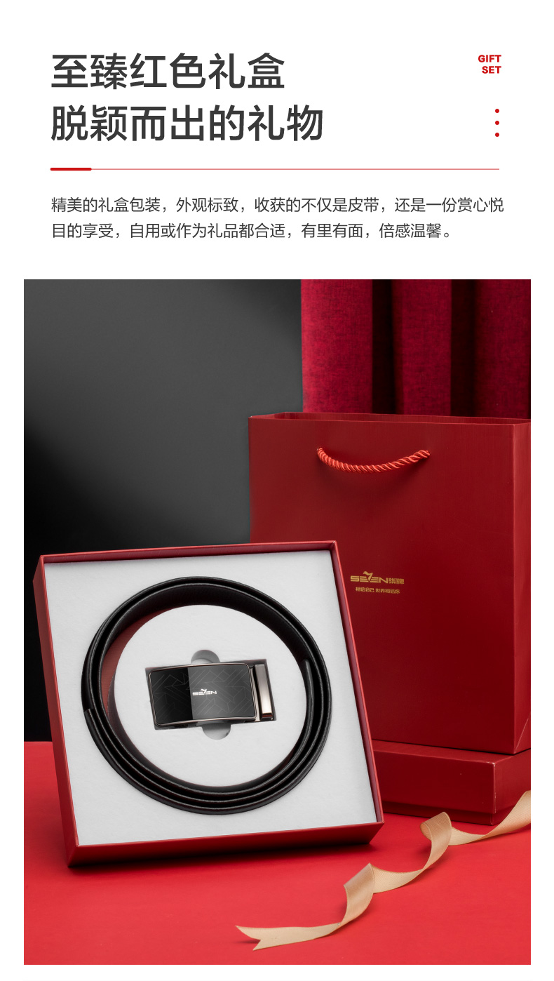 【特价】柒牌男装配饰皮带自动扣休闲商务百搭中年青年黑色西装裤带礼盒装 124P70030