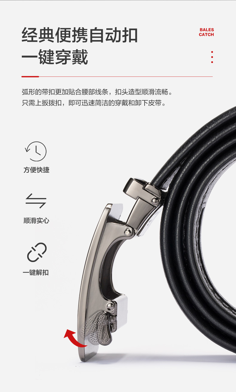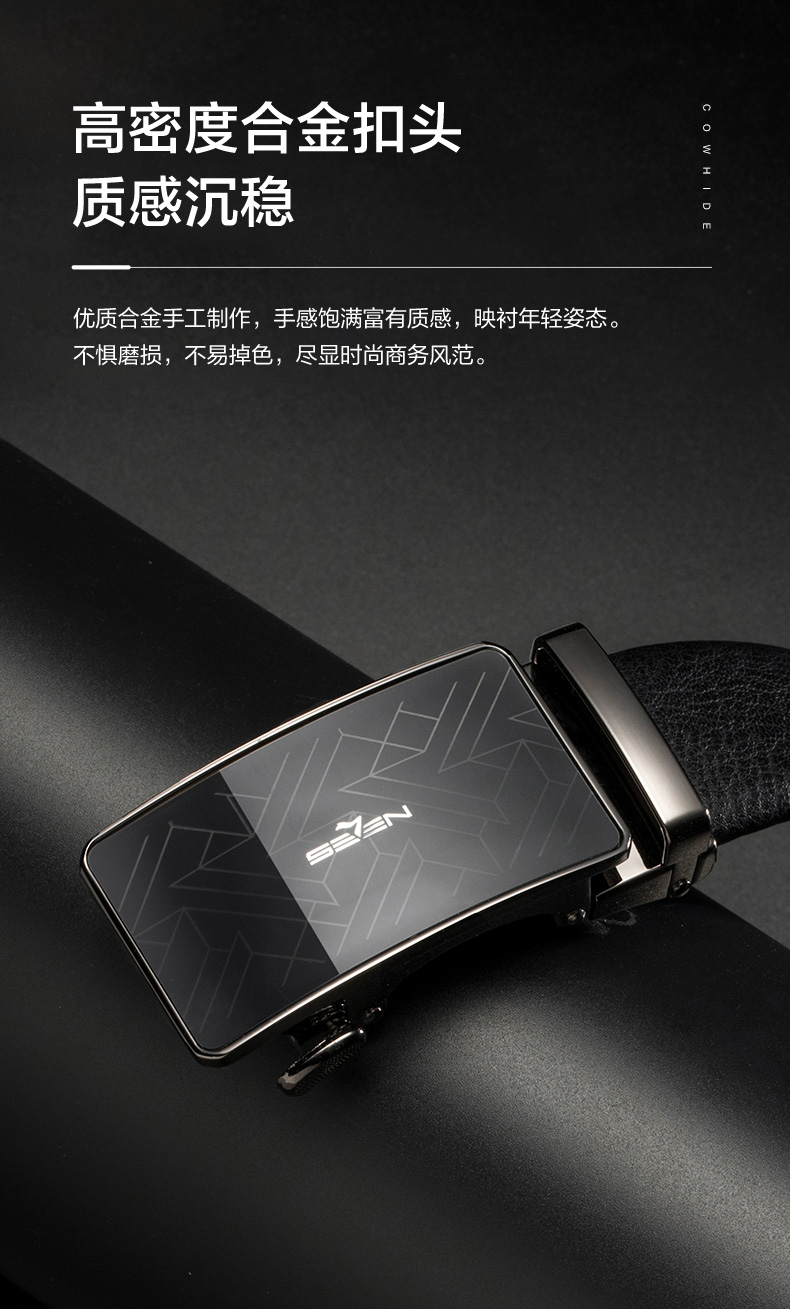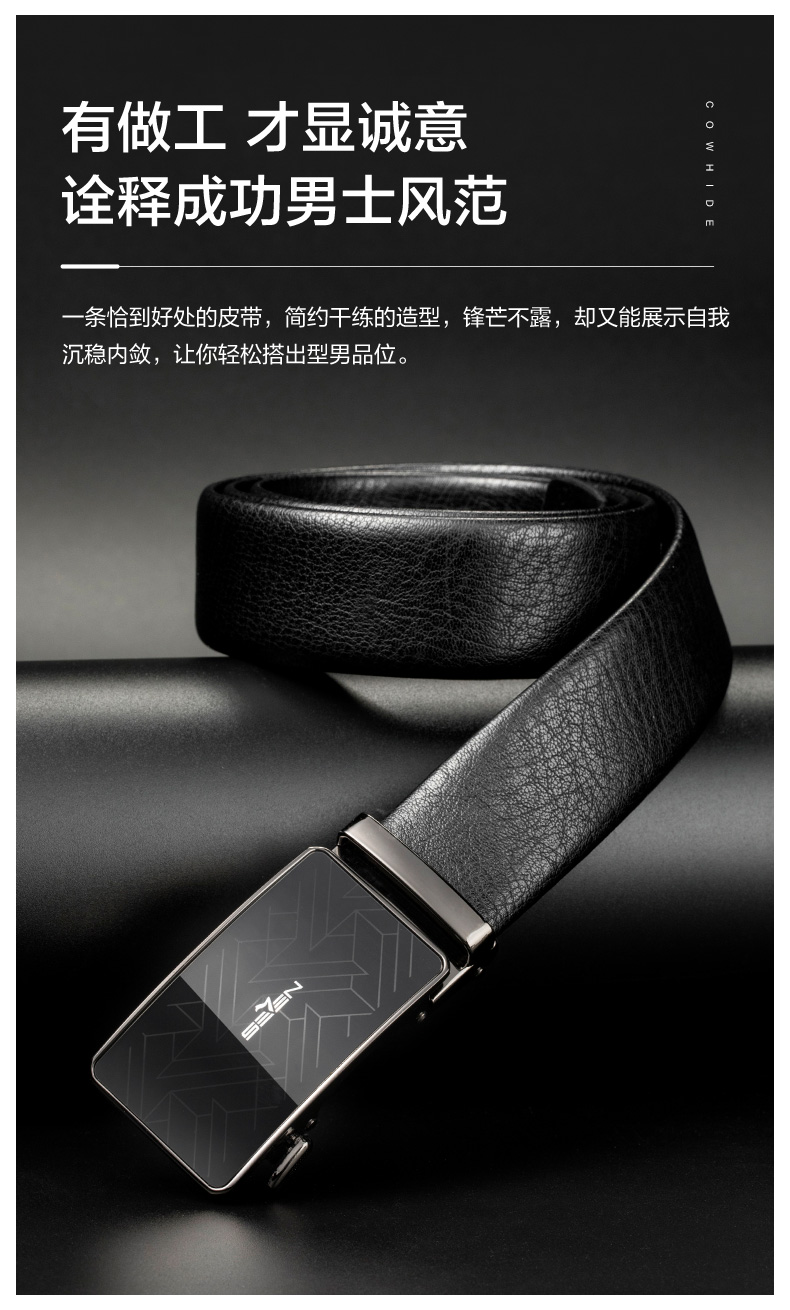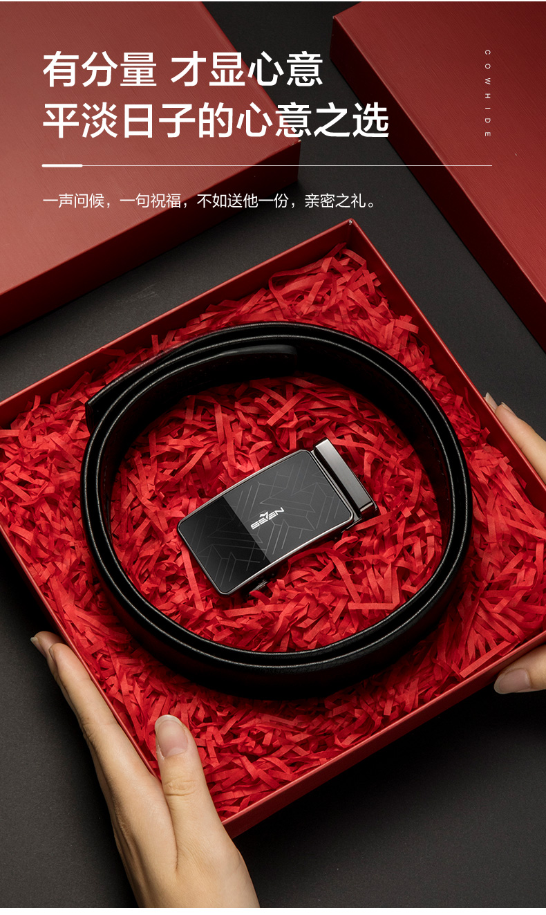 【特价】柒牌男装配饰皮带自动扣休闲商务百搭中年青年黑色西装裤带礼盒装 124P70030