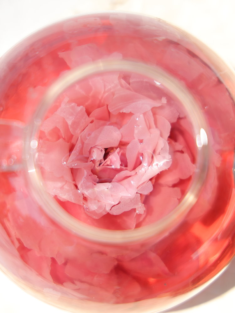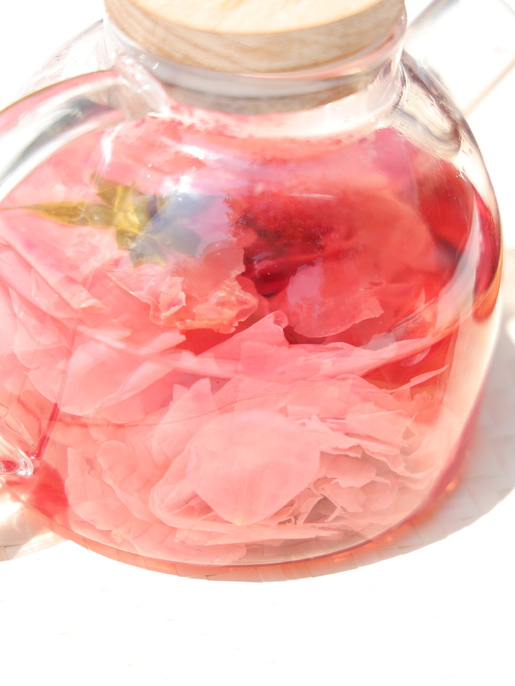 冲泡方法:刚开始冲泡时水沿杯壁注入杯子,可用筷子或者勺子压一压,使玫瑰花朵充分浸入水中。
