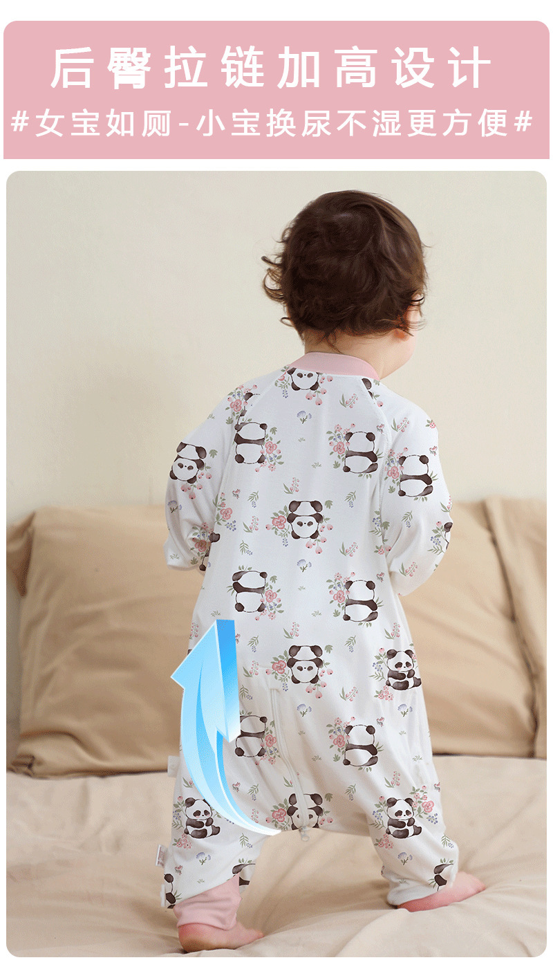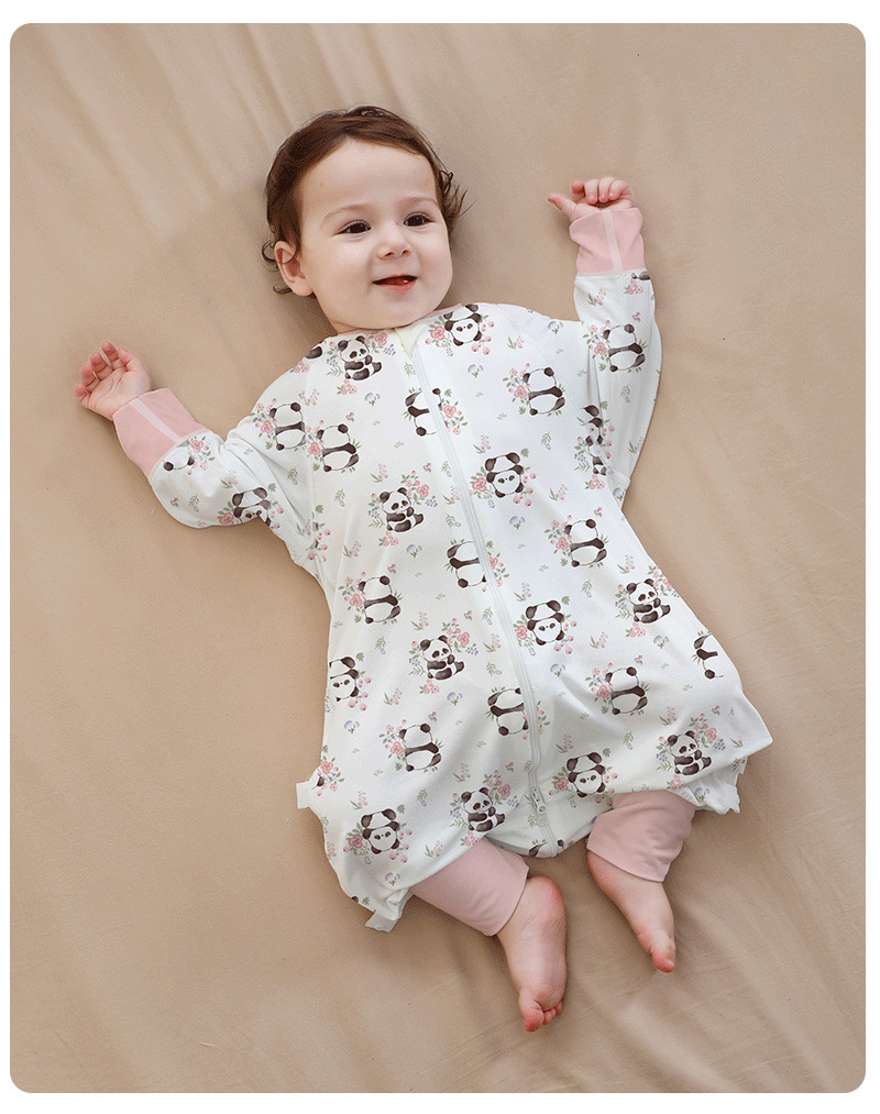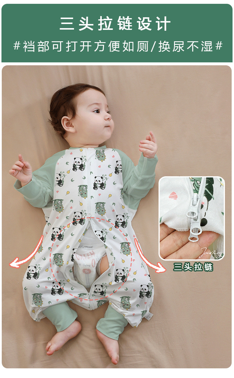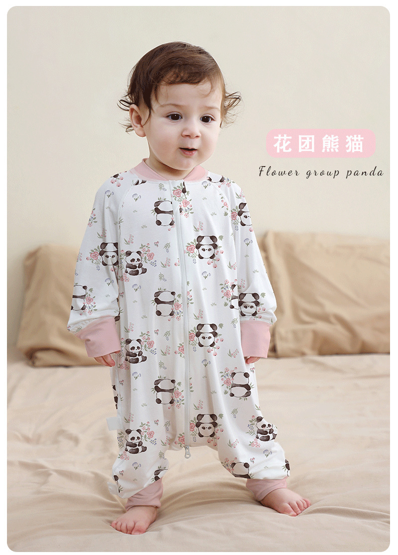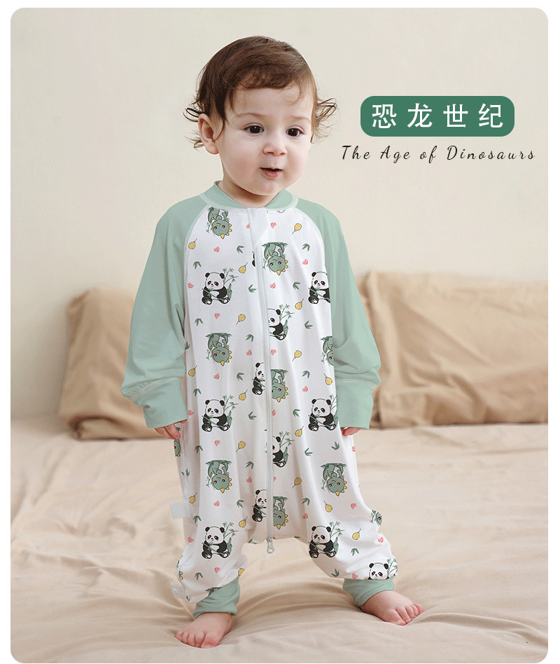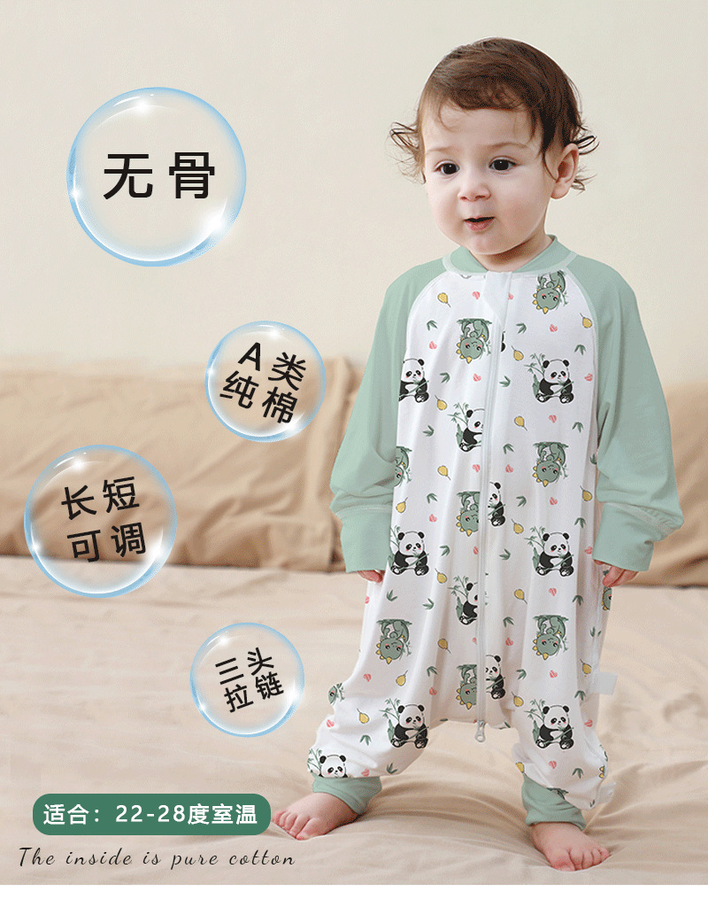 A类婴儿无骨纯棉长袖分腿睡袋男女宝宝四季卡通家居连体衣防踢被