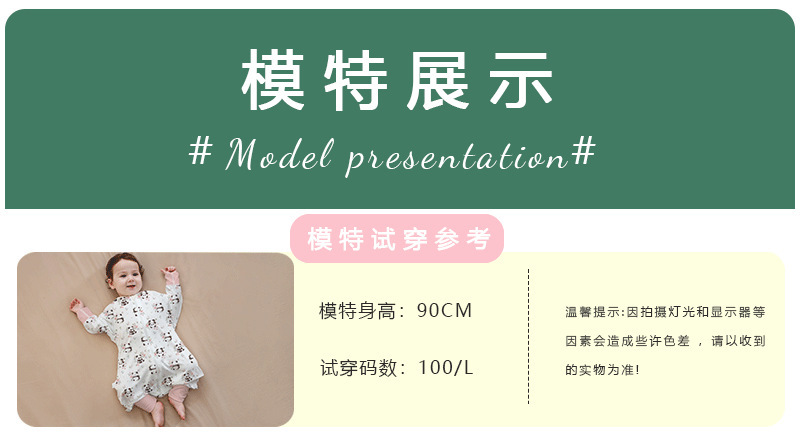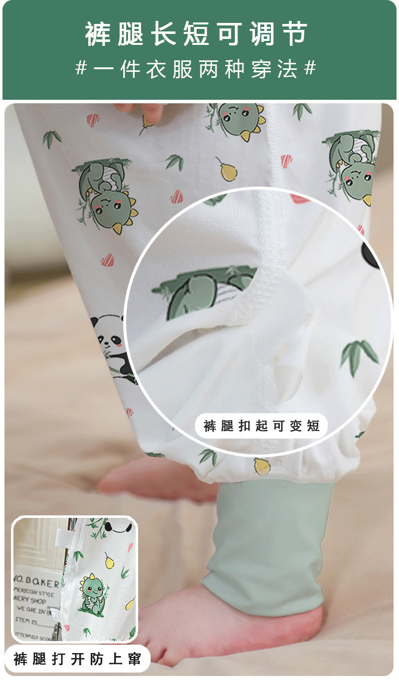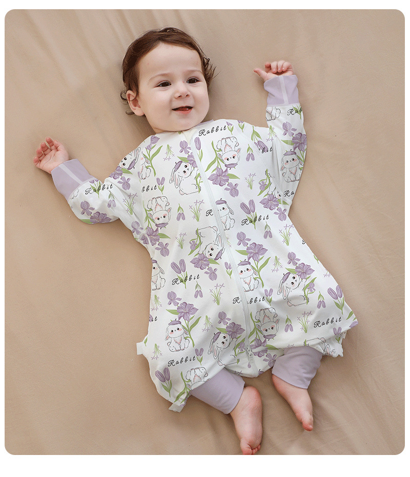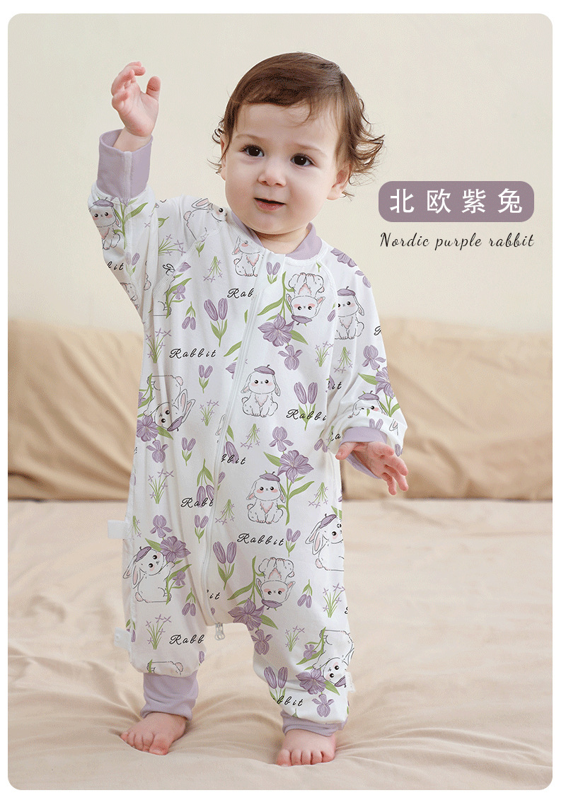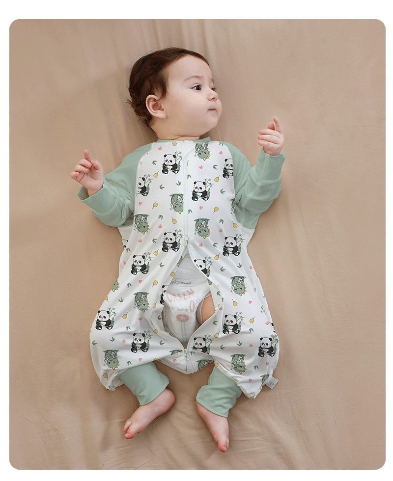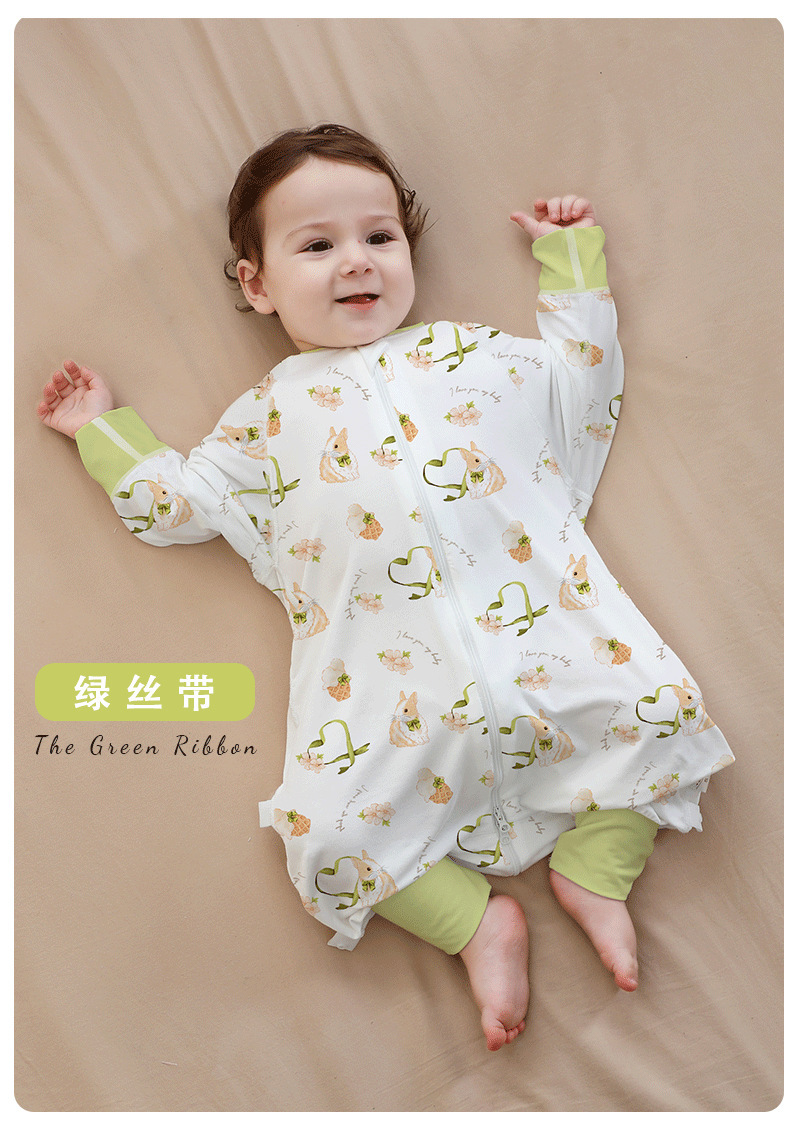 A类婴儿无骨纯棉长袖分腿睡袋男女宝宝四季卡通家居连体衣防踢被