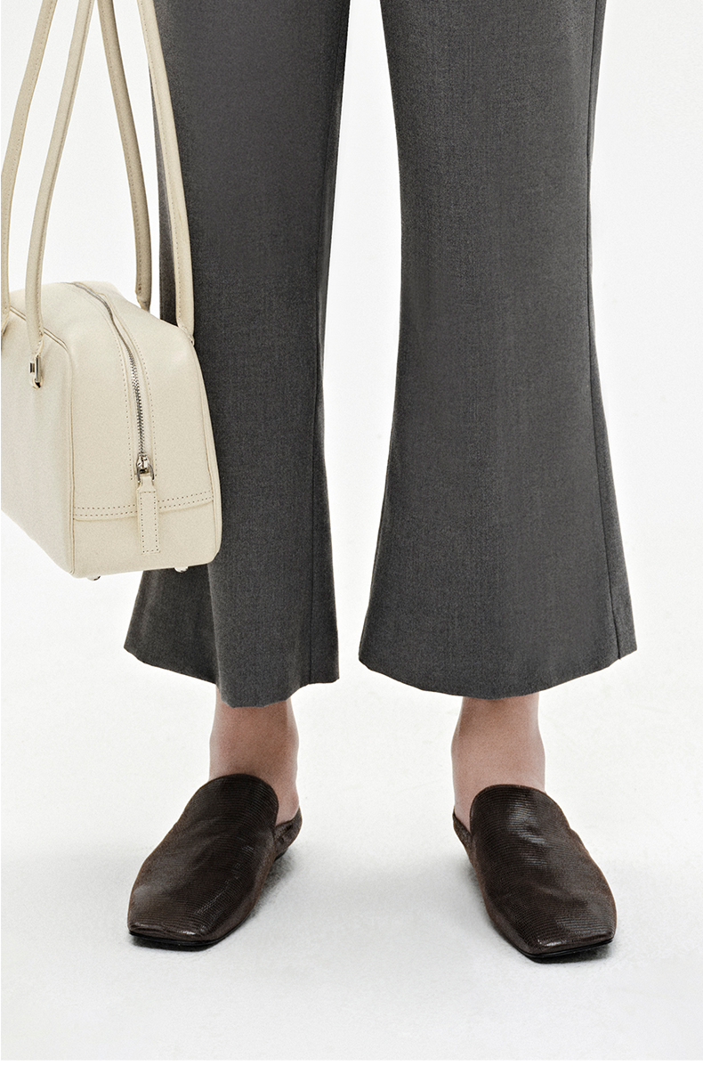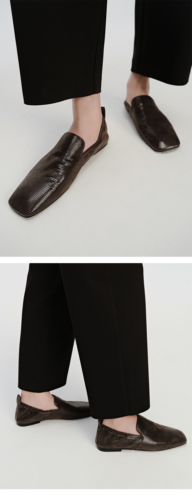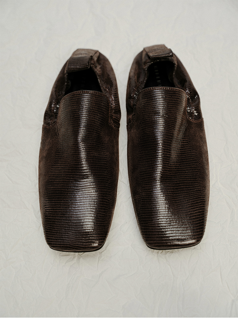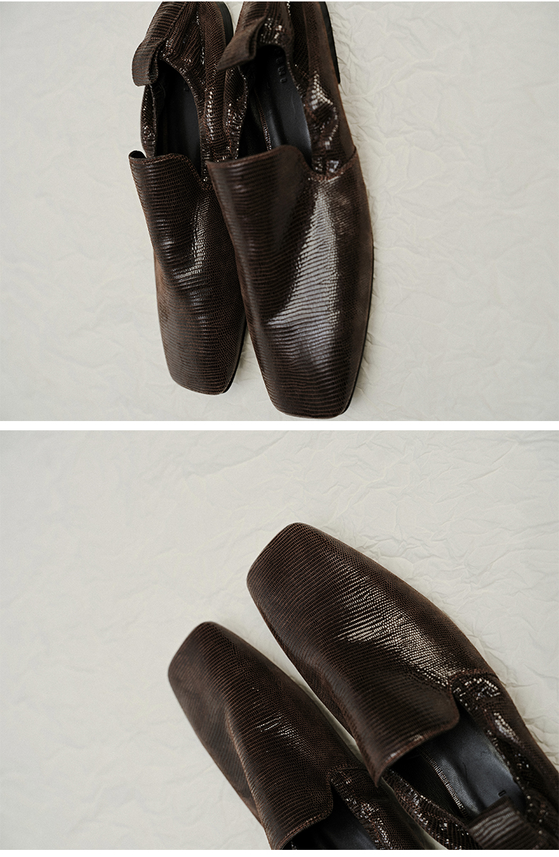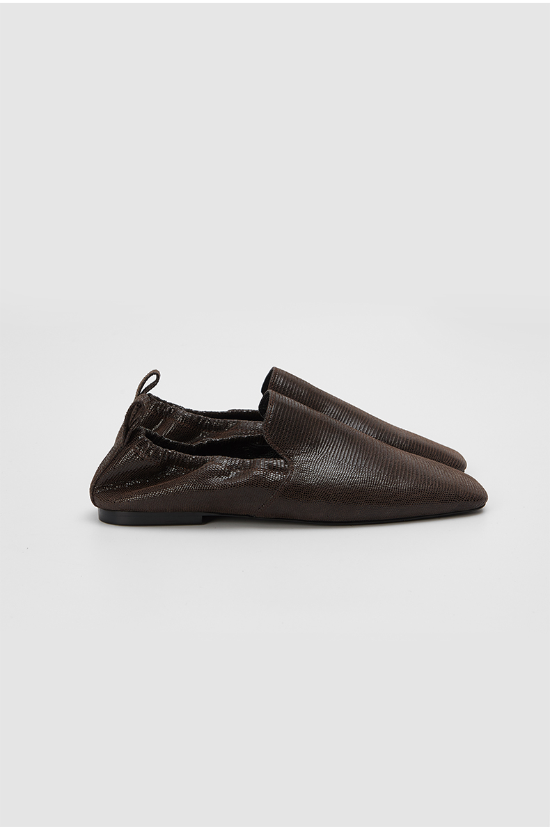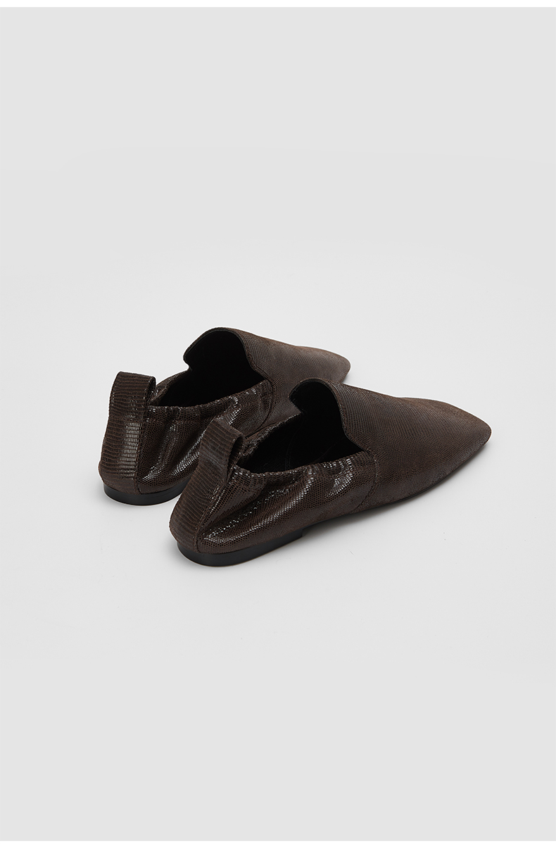 HIDEMI 经典款蜥蜴压纹深棕色方头平底鞋