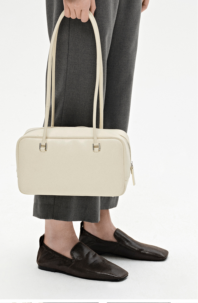 HIDEMI 懒人必备/奶昔白肌理感亚麻套装 圆领衬衫/垂直感侧开衩长裤