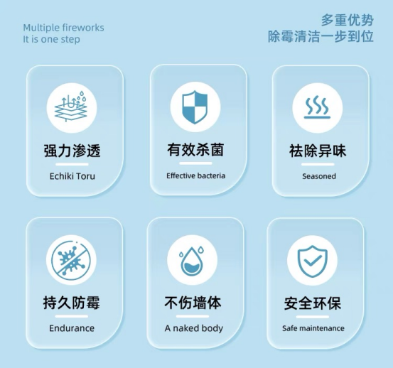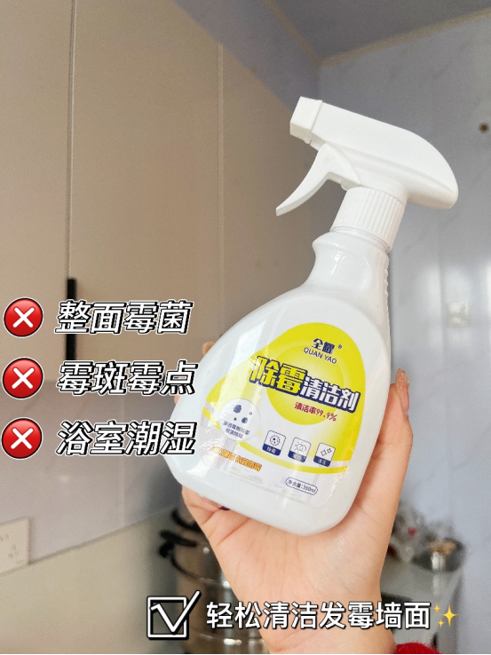 为什么选择【除霉清洁剂】? - 高效除霉,立竿见影:采用强效杀菌成分,迅速渗透霉菌根部,彻底清除霉菌,防止再生。 - 安全环保,放心使用:温和配方,不伤表面,无刺激性气味,适合家庭日常使用。 - 广泛适用,一喷多用:墙面、瓷砖、浴室、厨房、家具、一瓶搞定所有霉菌问题! - 持久防护,省心省力:一次使用,长效防霉,告别反复清洁的烦恼!