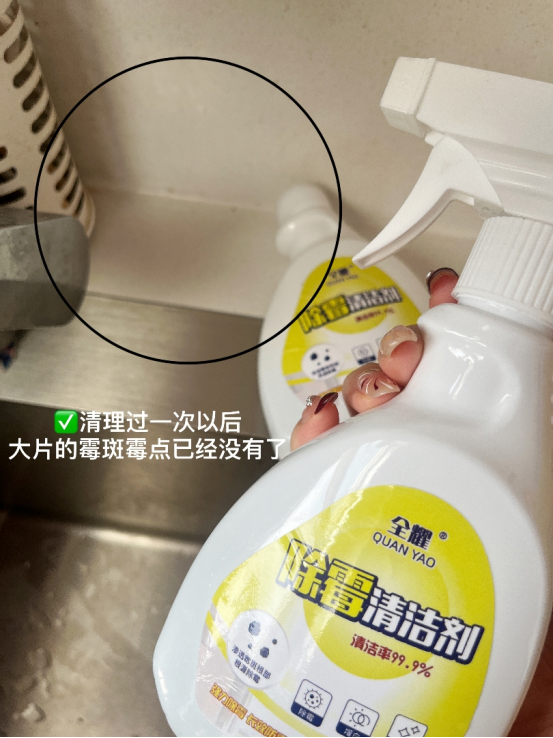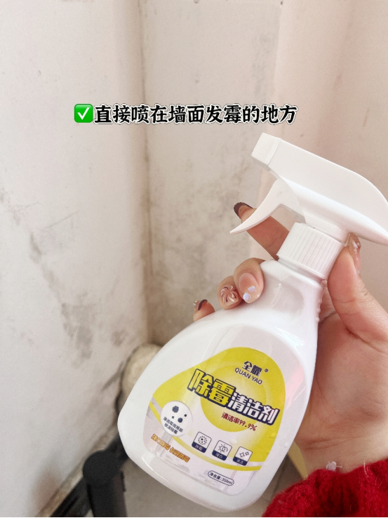 好好做了功课入了这个全耀除霉清洁剂 💖轻松喷一喷就把霉点清除干净啦,效果直接惊艳到我了! - 使用方法非常简单 开窗保持通风后,把喷雾喷洒在墙面有霉点的地方 静置15-30分钟直至墙面泡沫消失就可以了 ✅像家里发霉的地方:墙面、天花板、地面、洗漱台...等都可以使用 而且成分很温和经常使用也不用担心会损害墙面或者家具