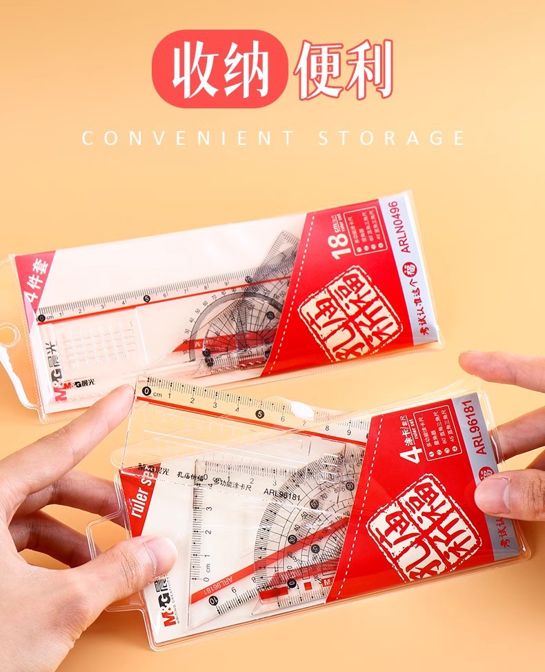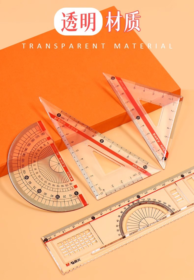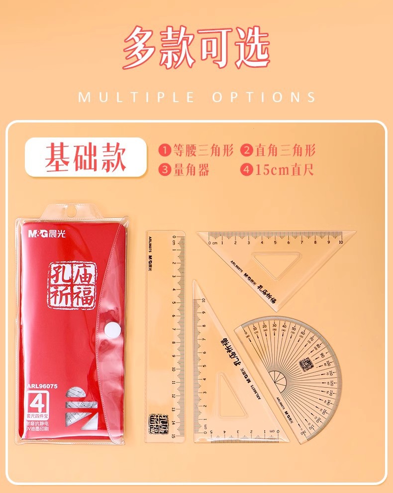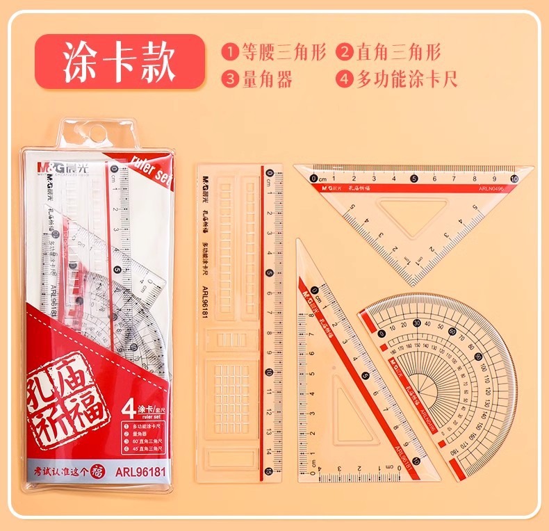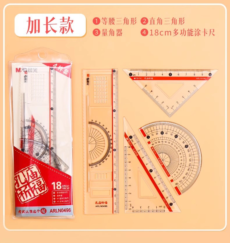 【开学必备!孔庙祈福套尺套尺】晨光套尺三角板量角器考试尺子绘图测量直尺三角尺四件套。ry