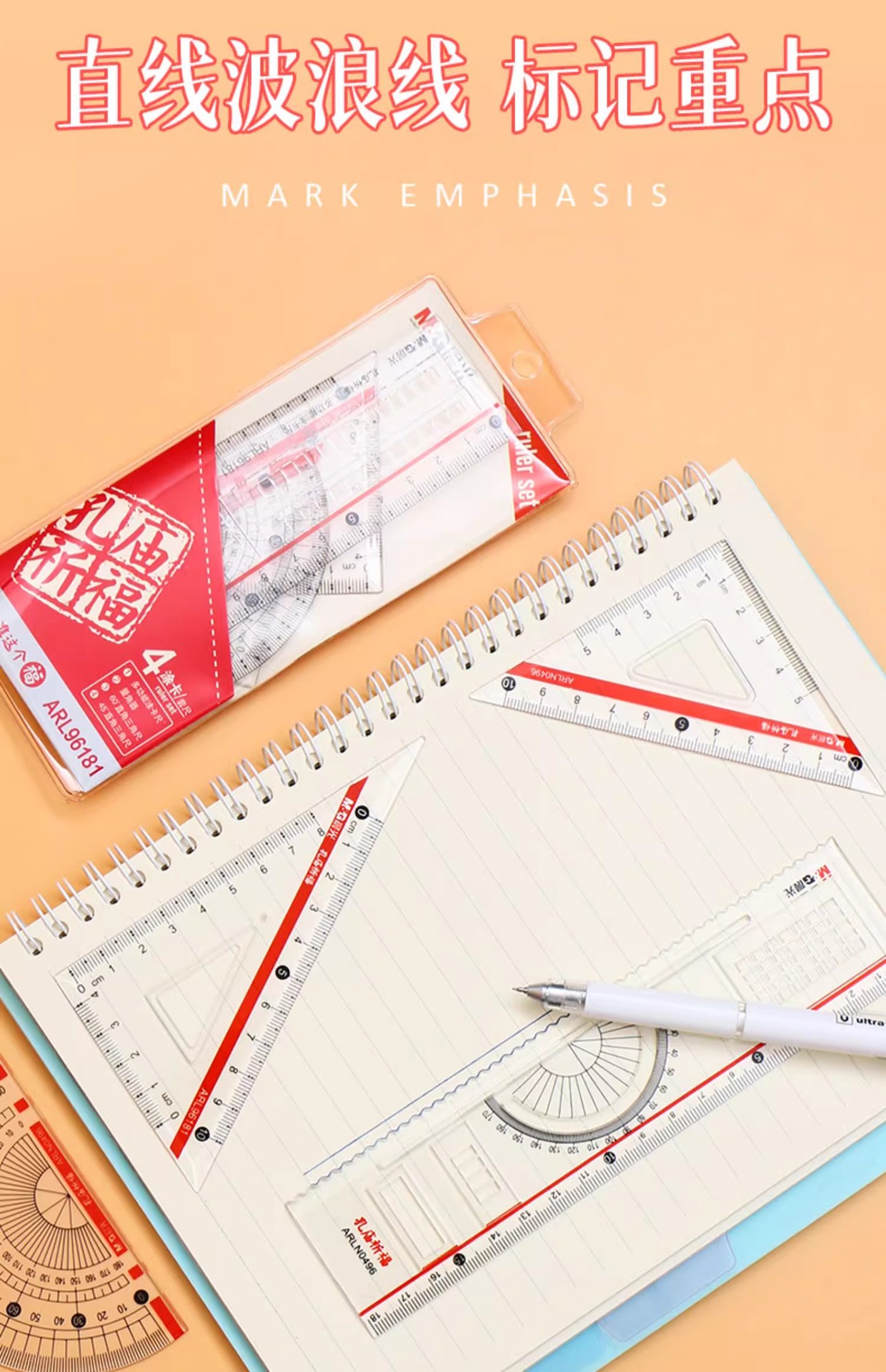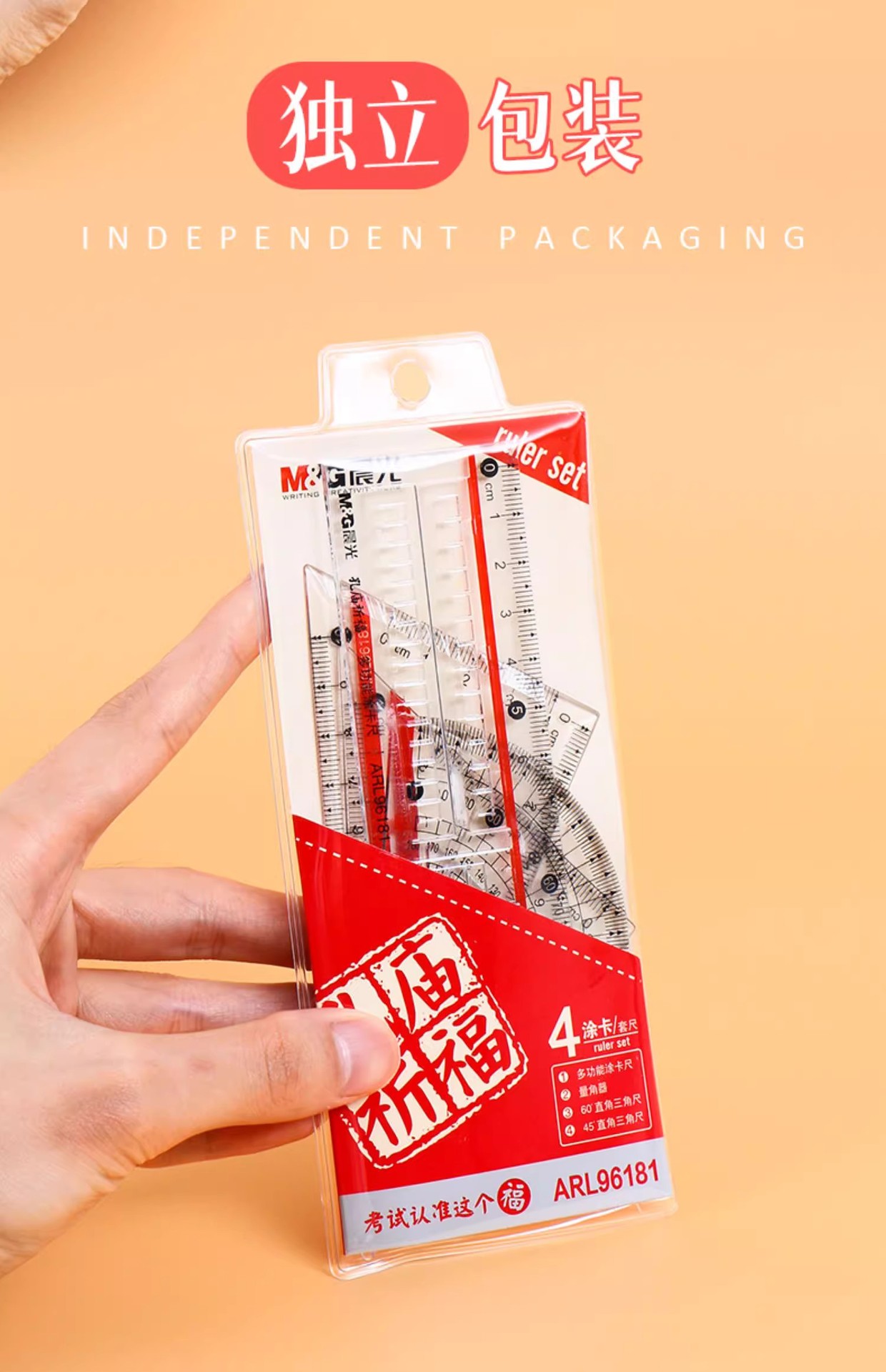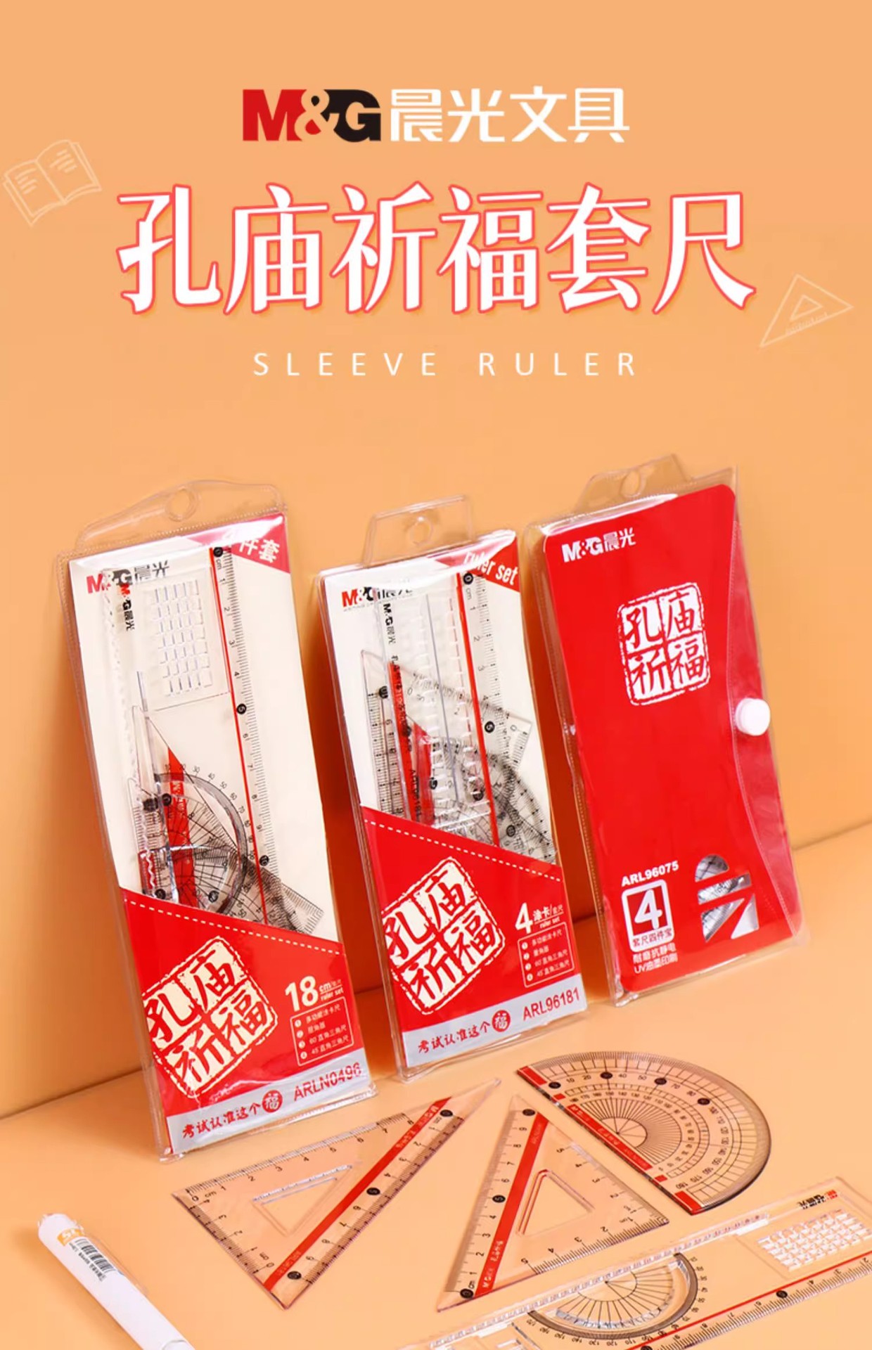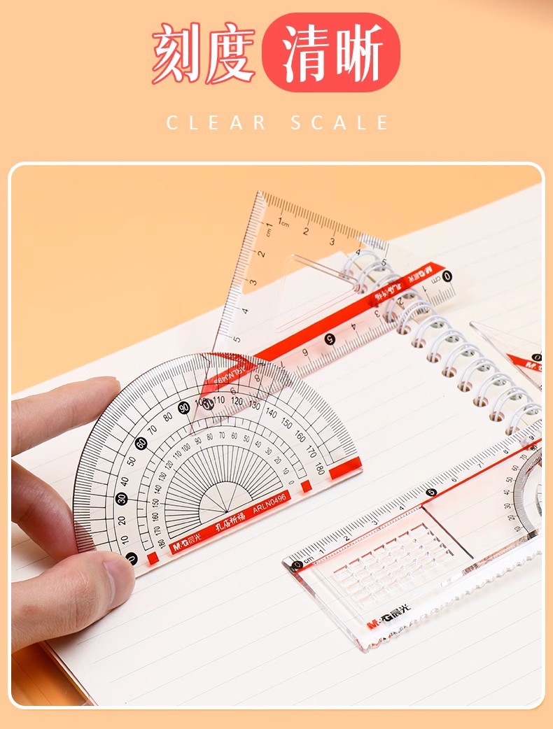 【开学必备!孔庙祈福套尺套尺】晨光套尺三角板量角器考试尺子绘图测量直尺三角尺四件套。ry