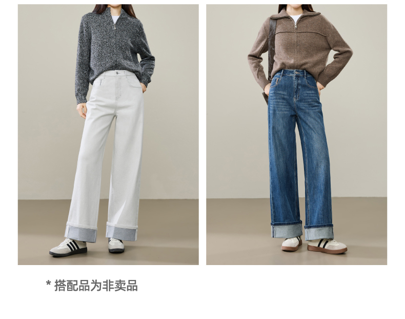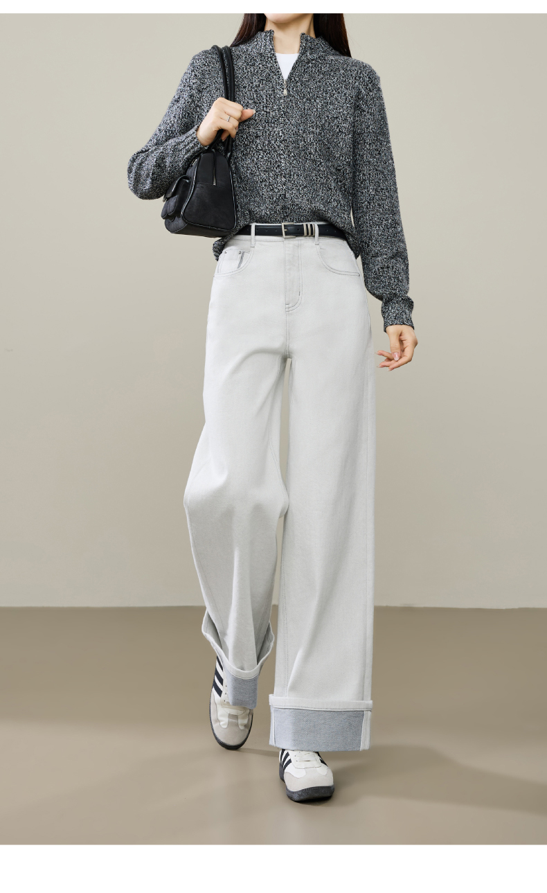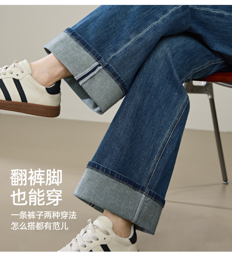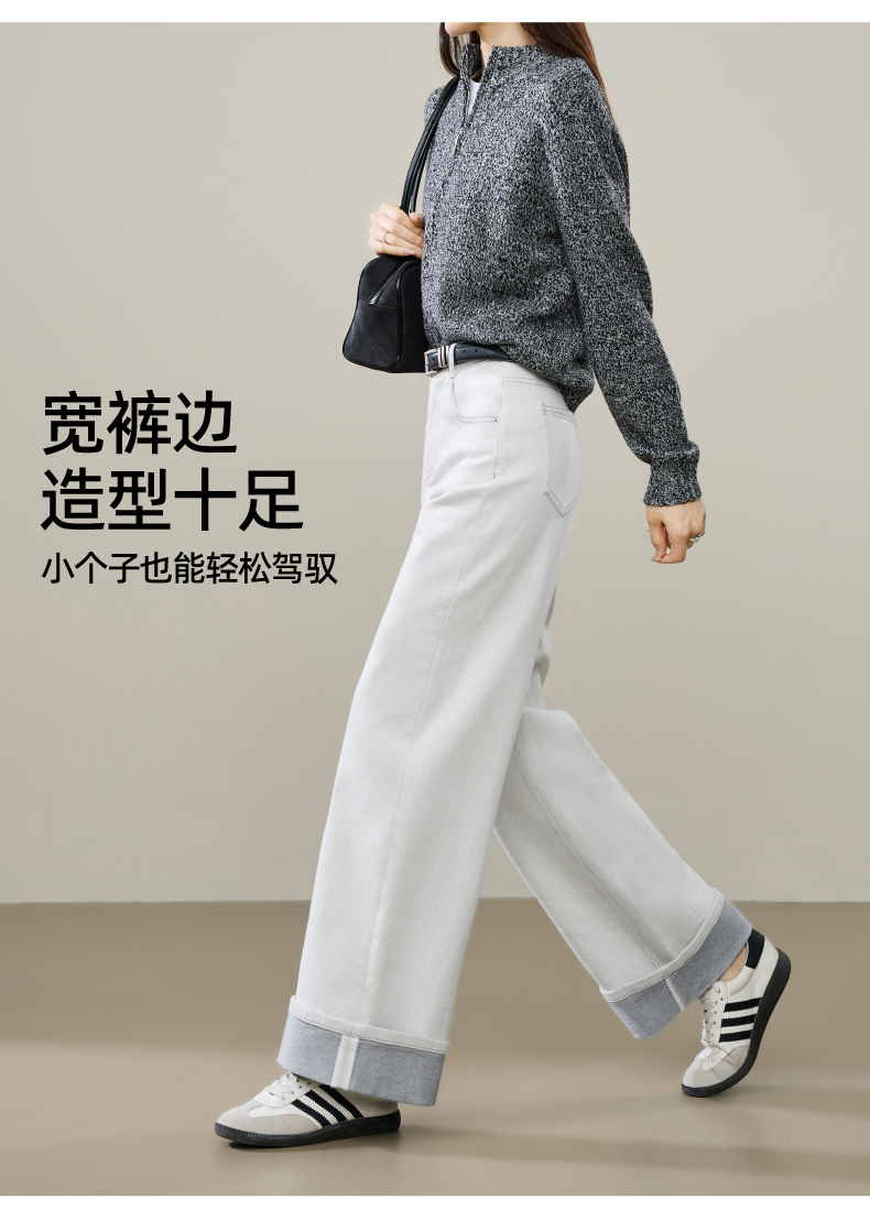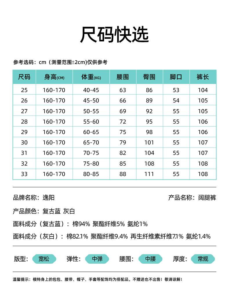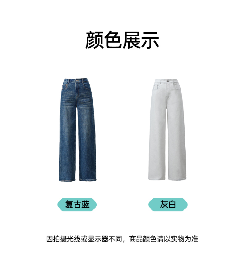 【可翻边、两穿阔腿牛仔】逸阳春新品复古蓝色松弛感弹力灰白阔腿裤子8356