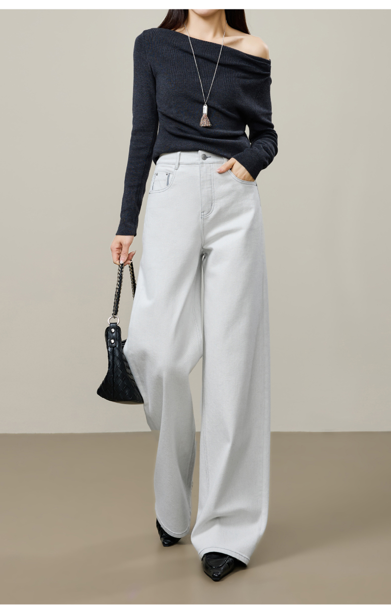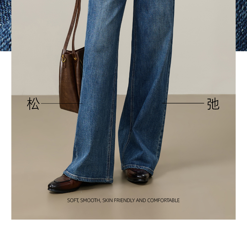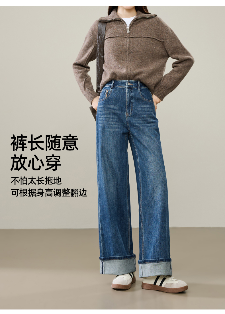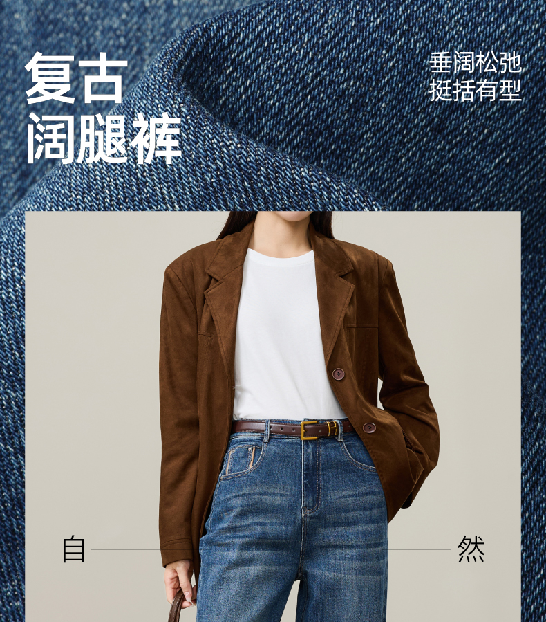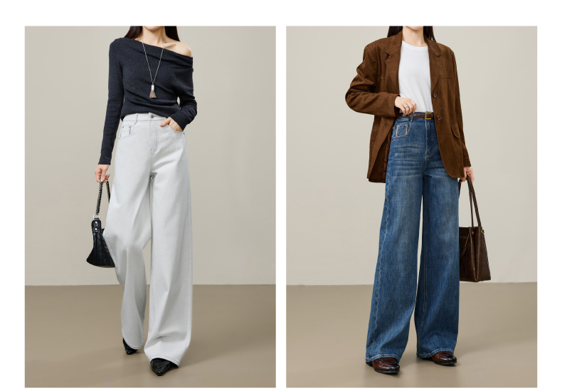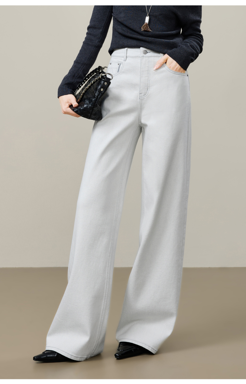 【可翻边、两穿阔腿牛仔】逸阳春新品复古蓝色松弛感弹力灰白阔腿裤子8356