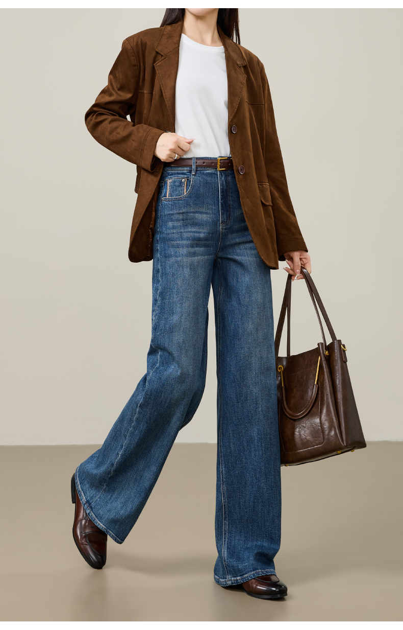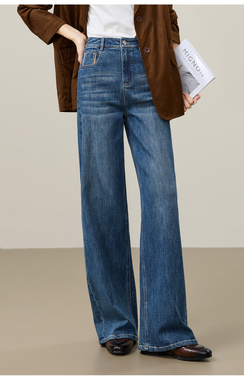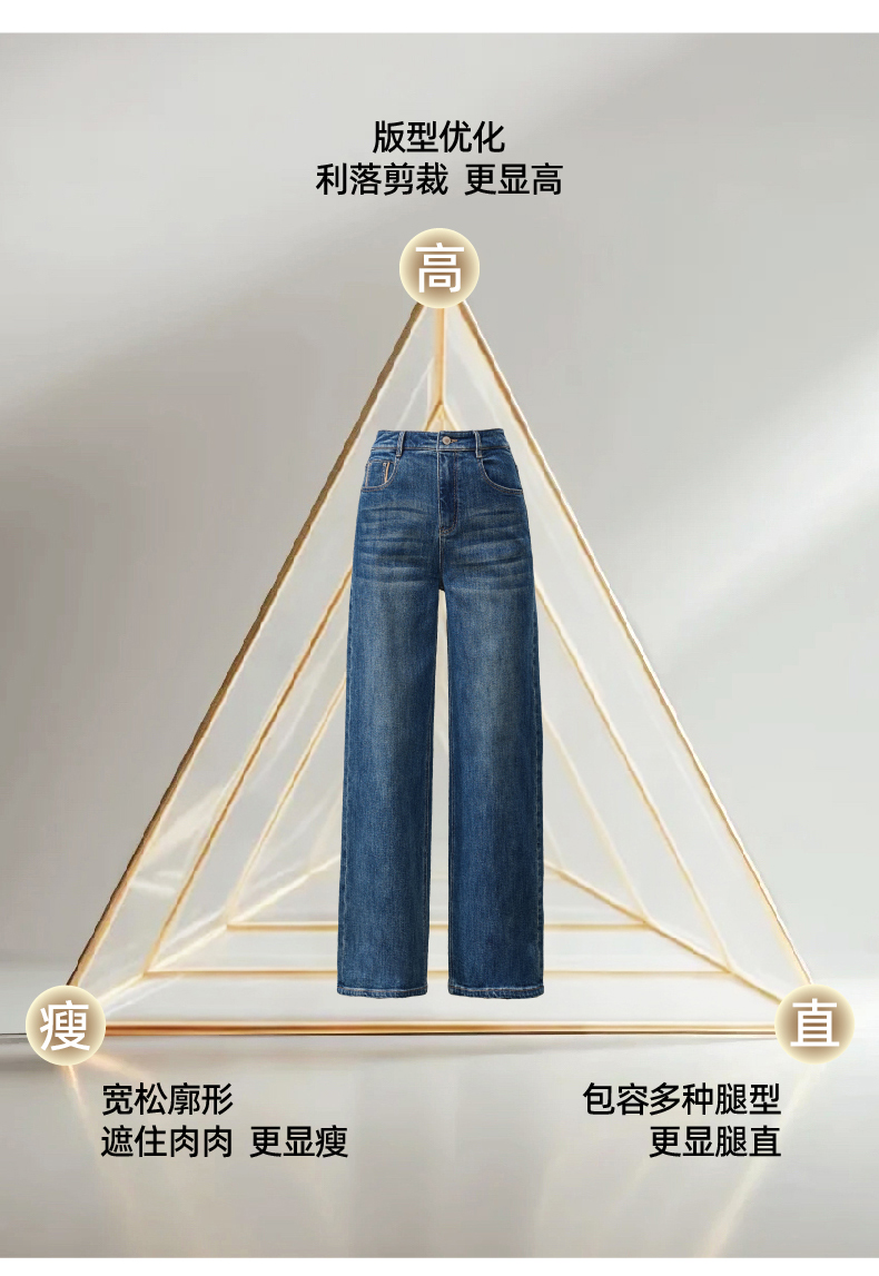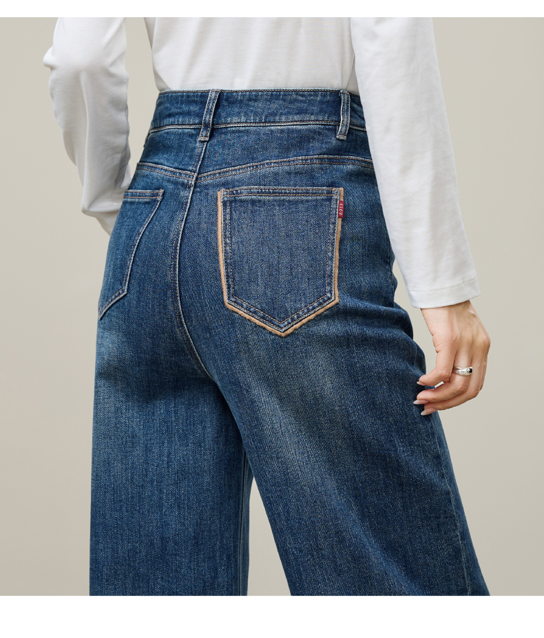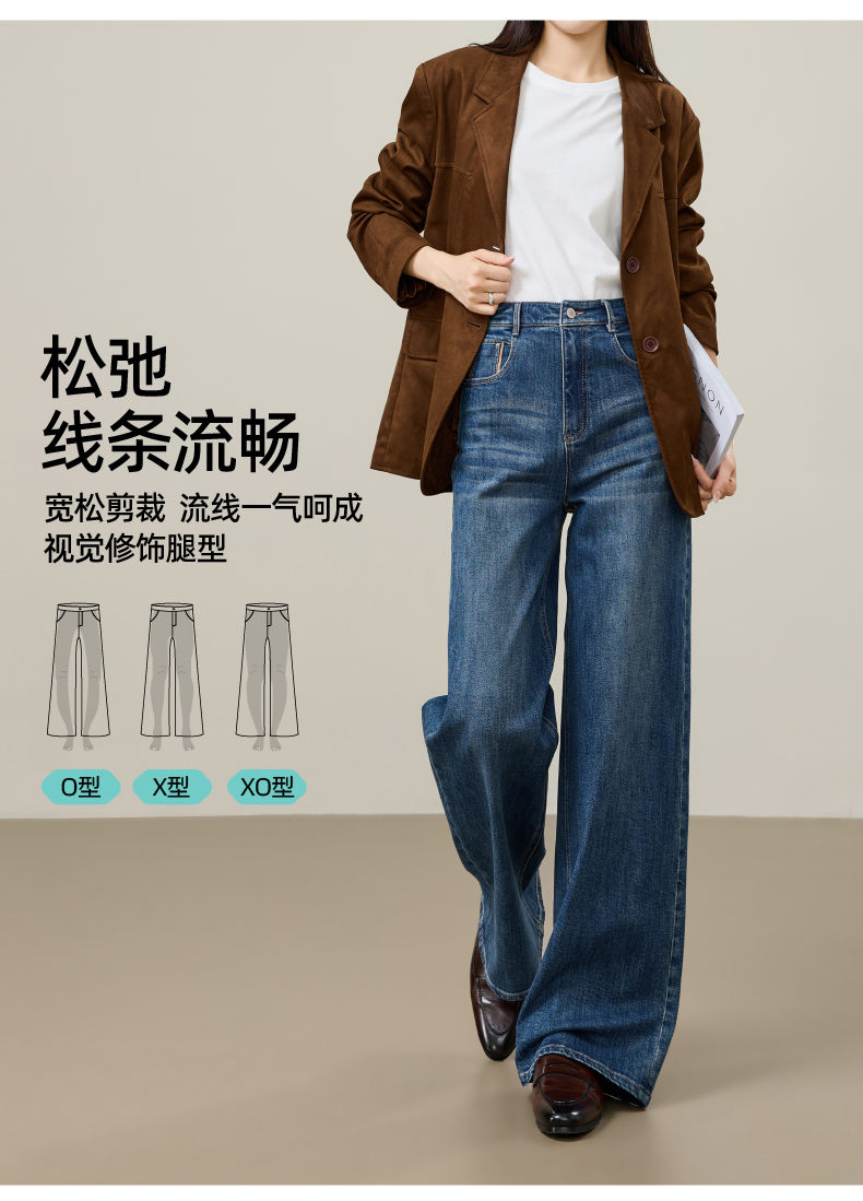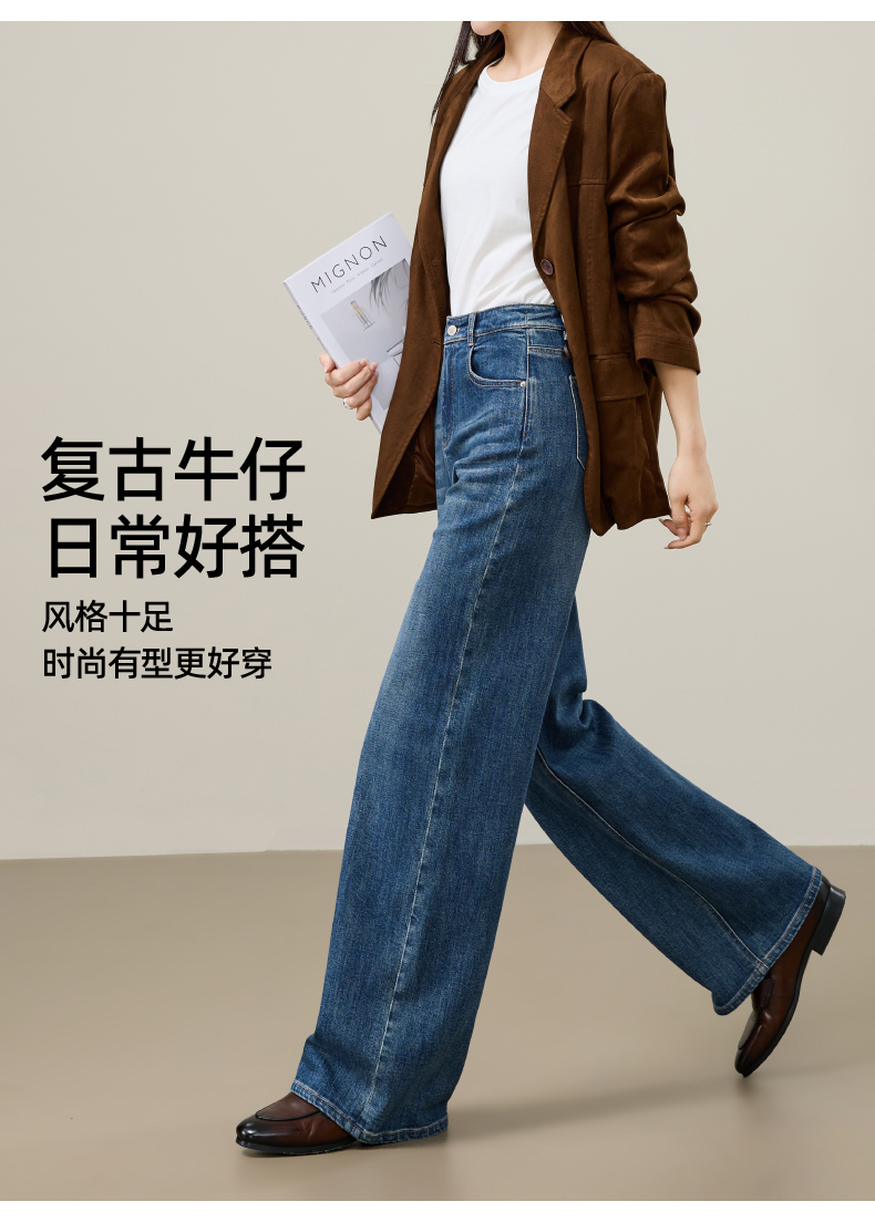 【可翻边、两穿阔腿牛仔】逸阳春新品复古蓝色松弛感弹力灰白阔腿裤子8356