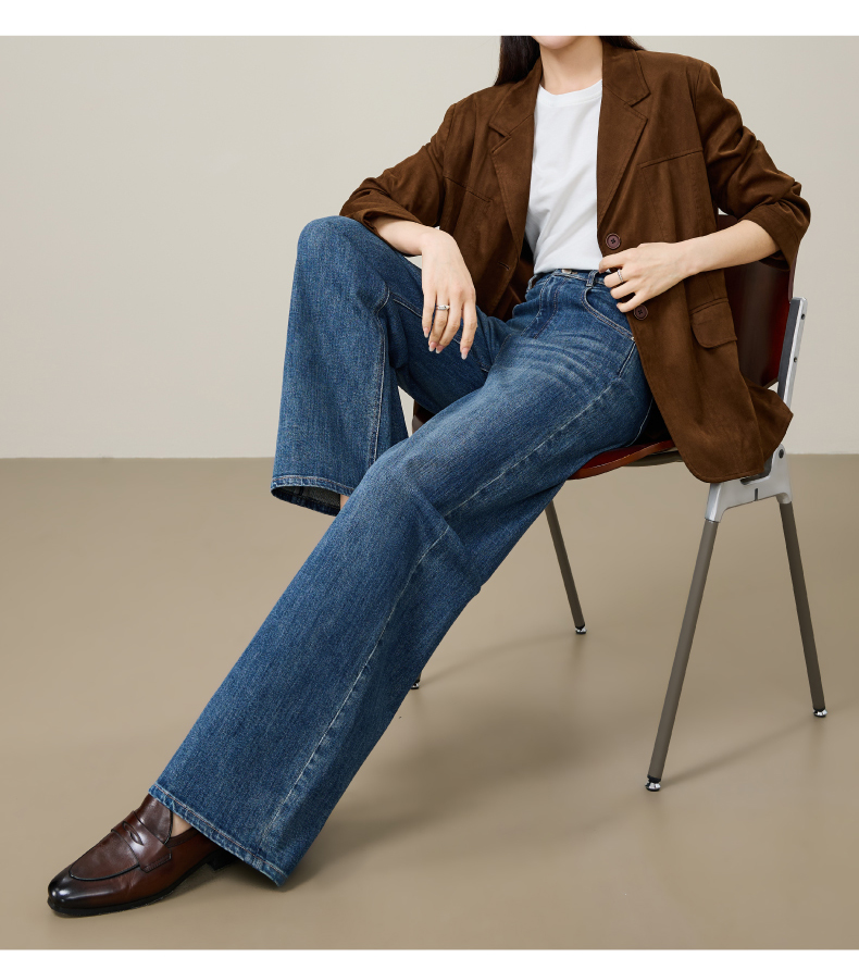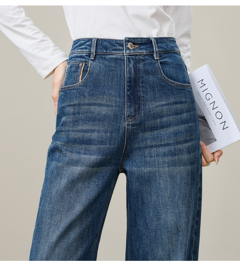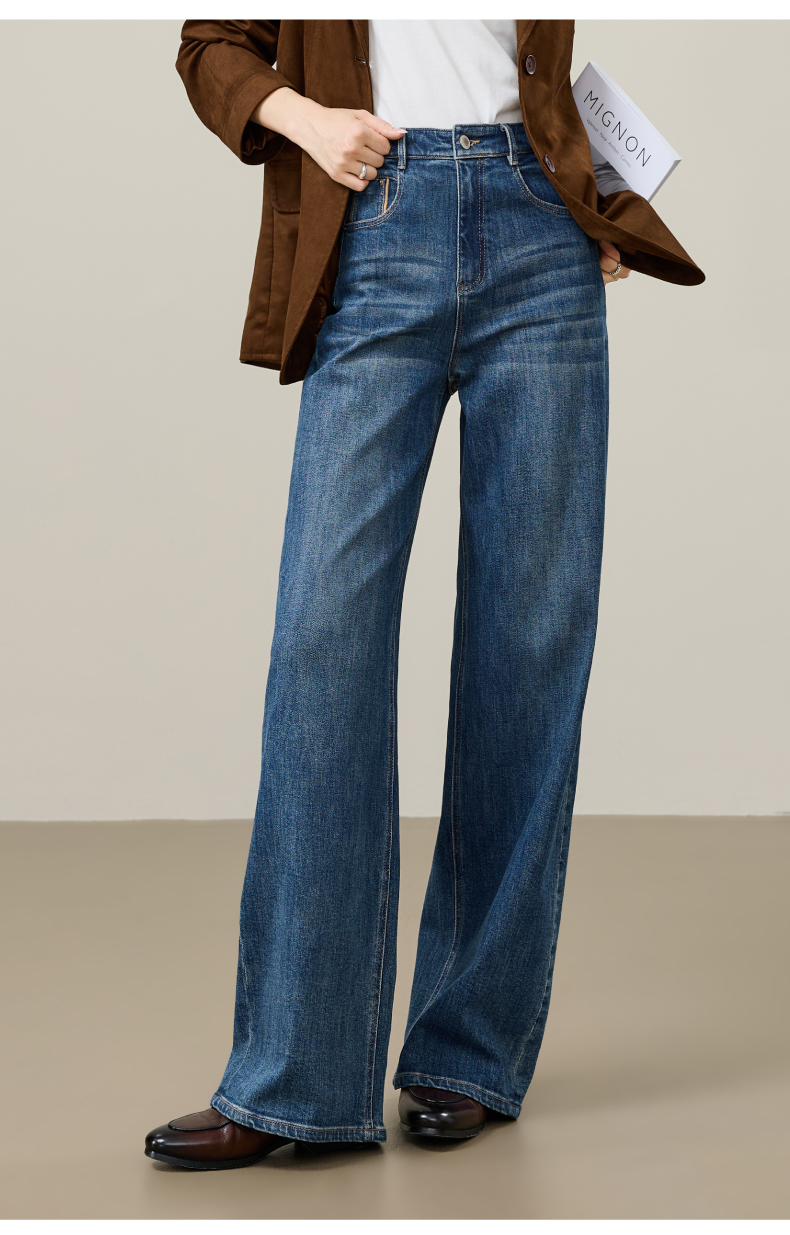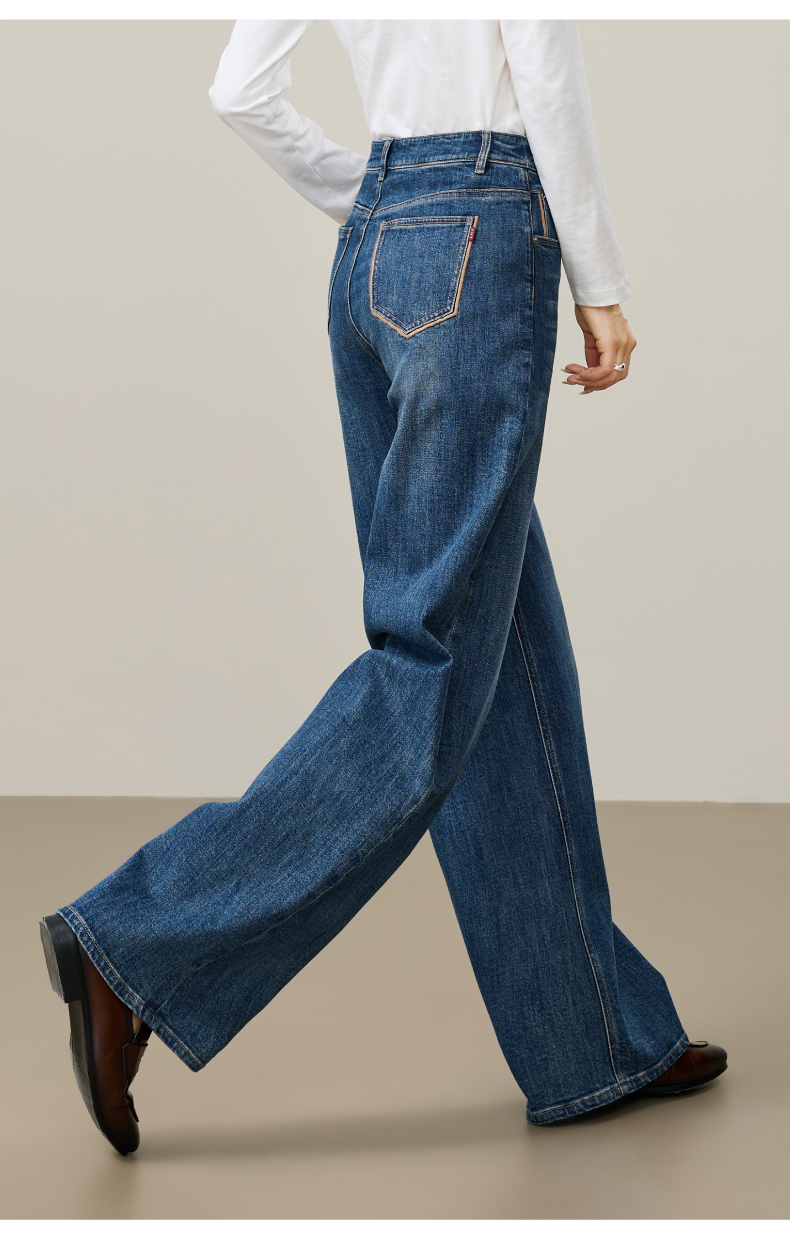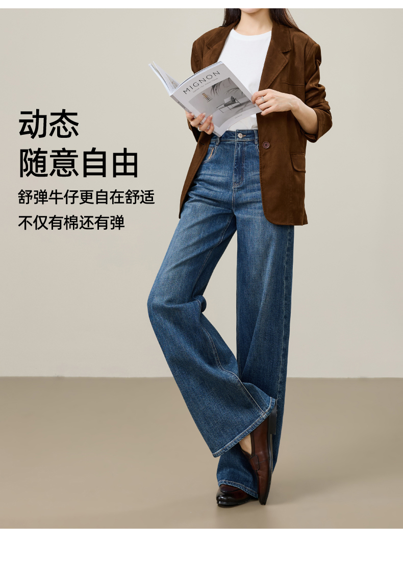 【可翻边、两穿阔腿牛仔】逸阳春新品复古蓝色松弛感弹力灰白阔腿裤子8356
