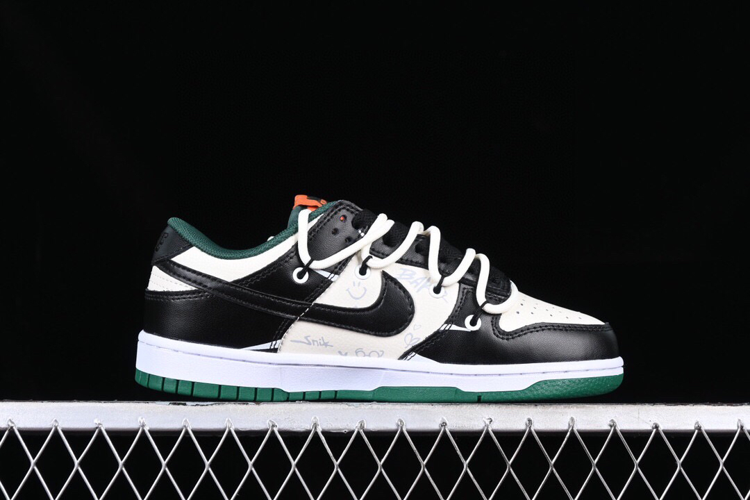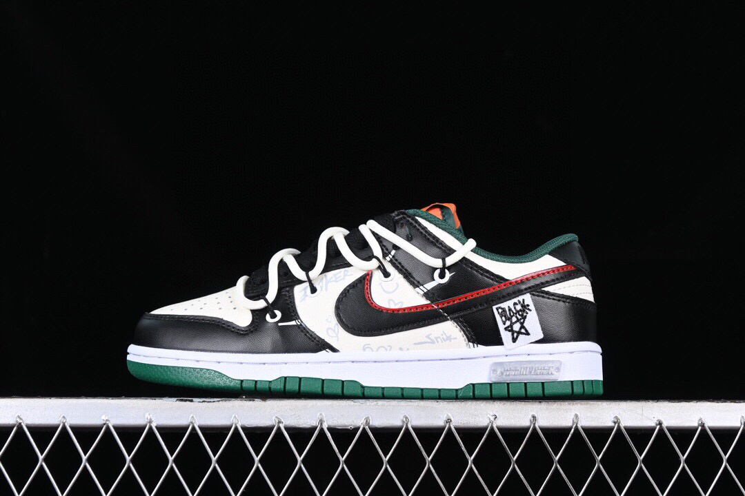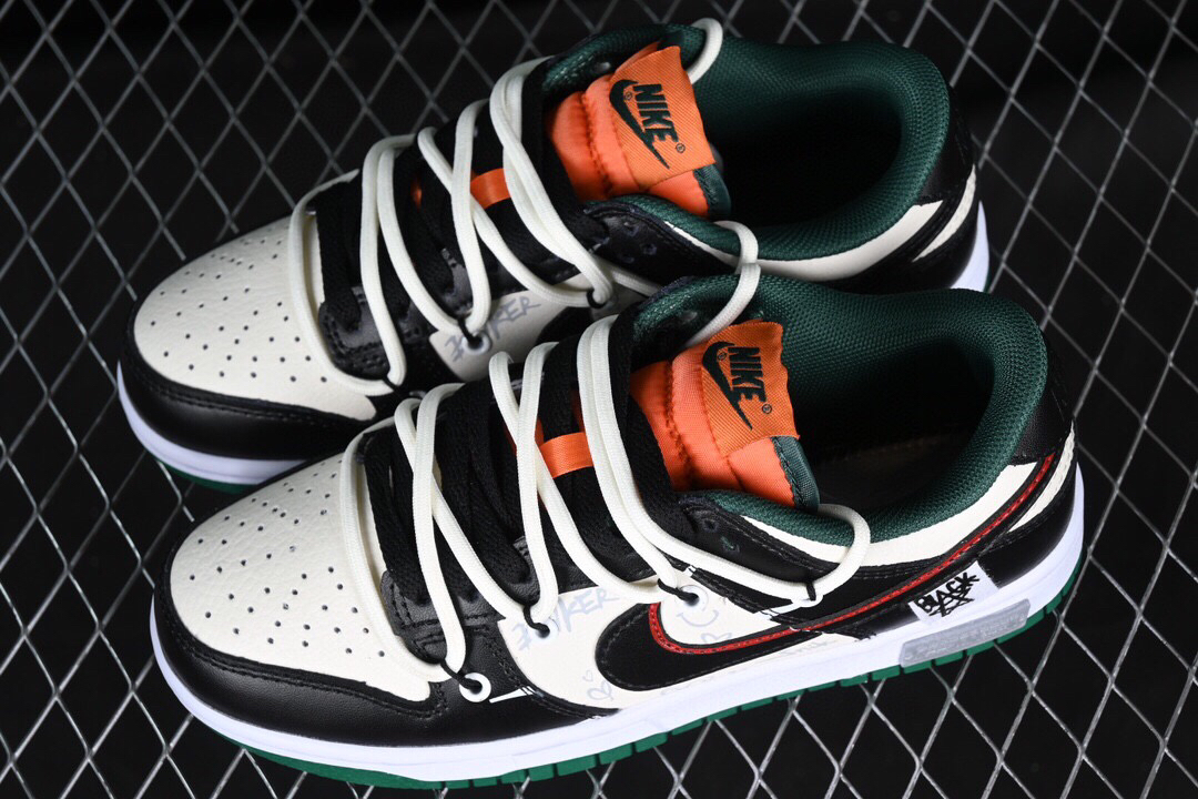 #配色整体围绕熊猫恶作剧滑板为主题设计,鞋身整体采用专属颜料重新喷涂。特殊原创设计图标涂鸦装饰,添加潮流元素效果喷涂点缀。