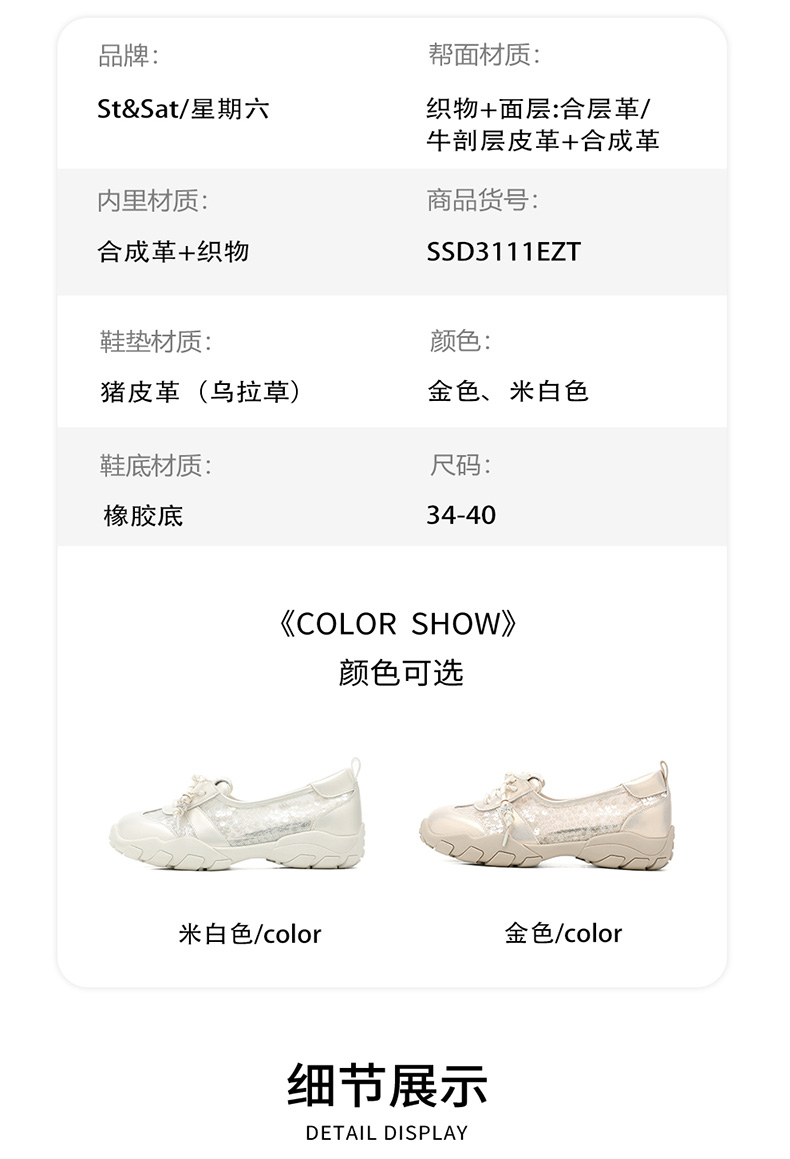 星期六亮片网纱拼接运动玛丽珍SSD3111EZT