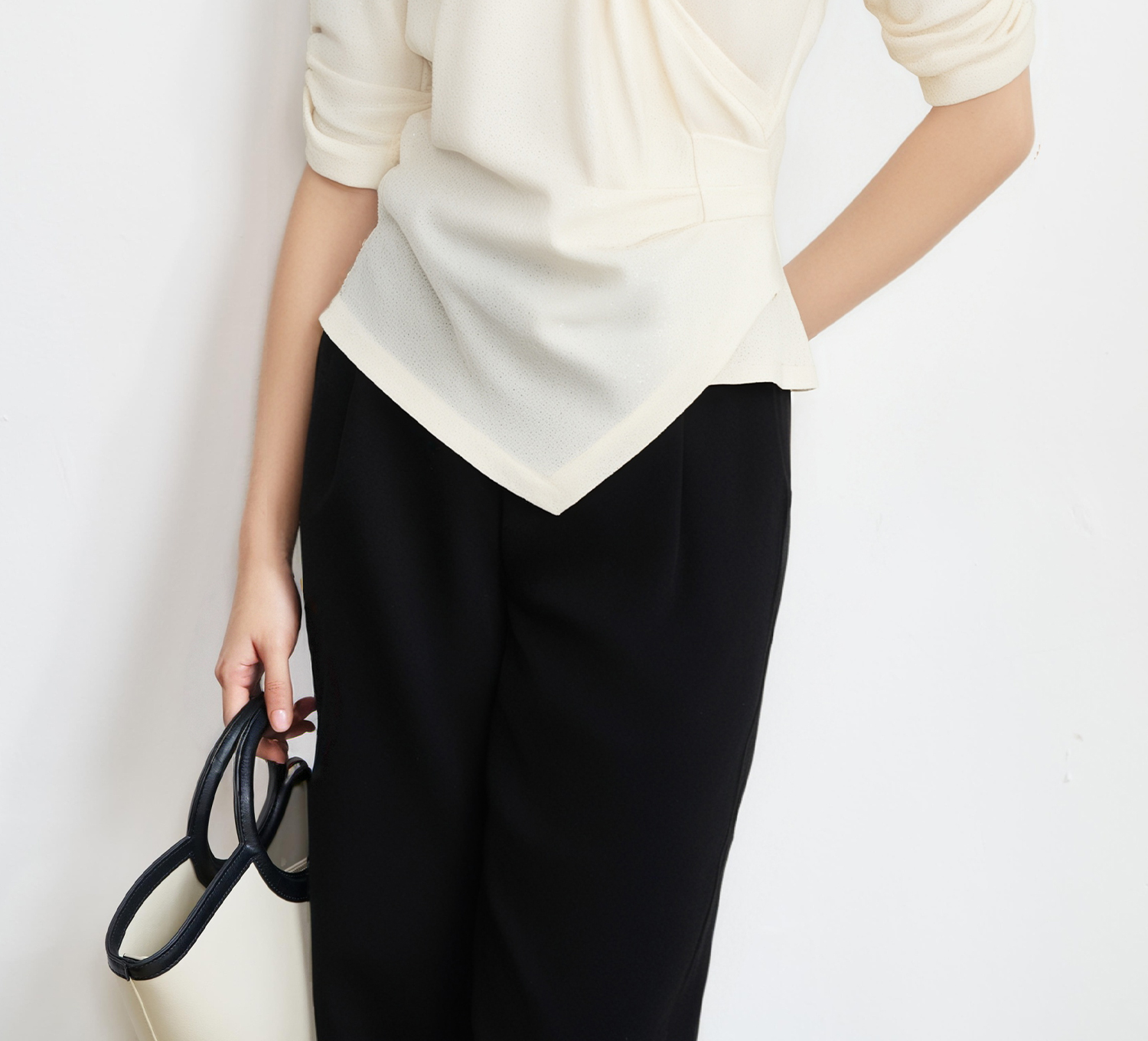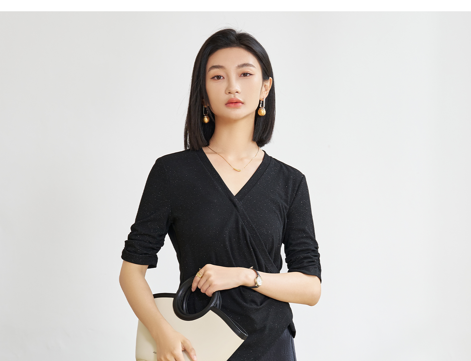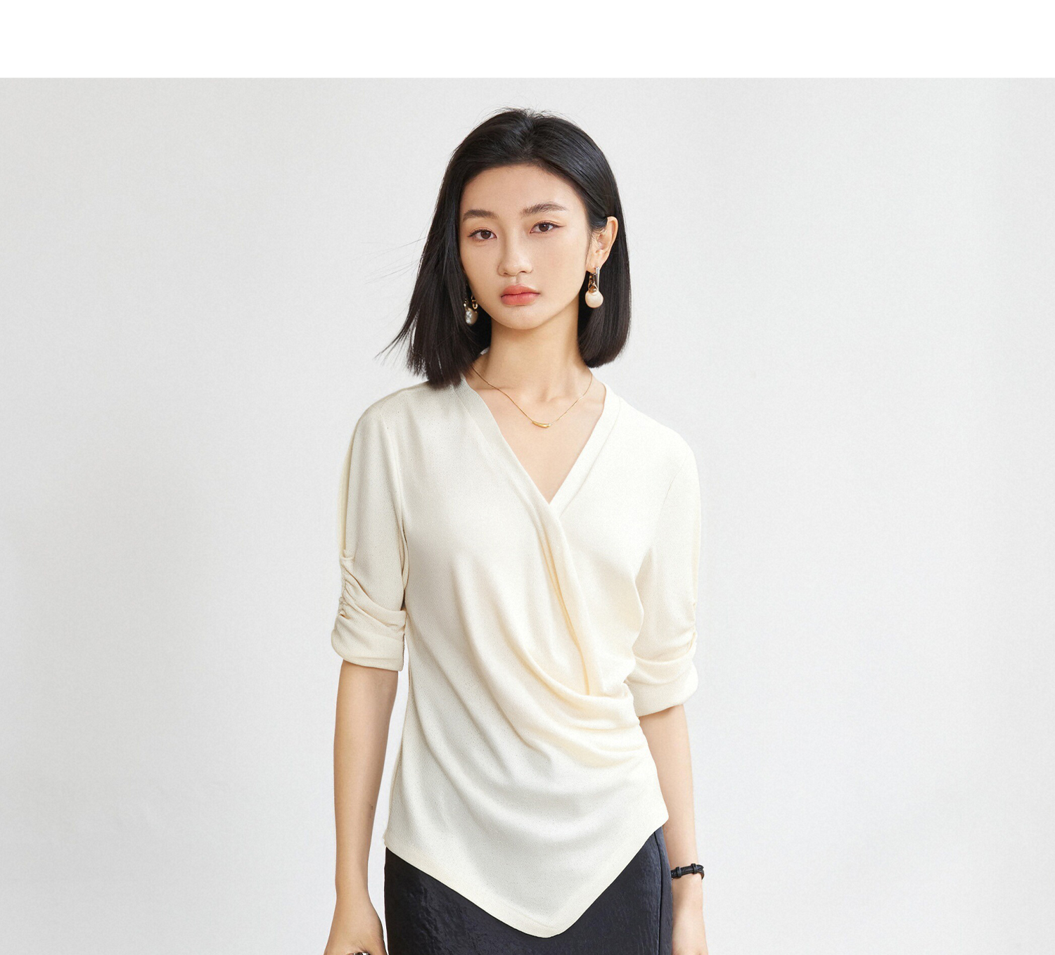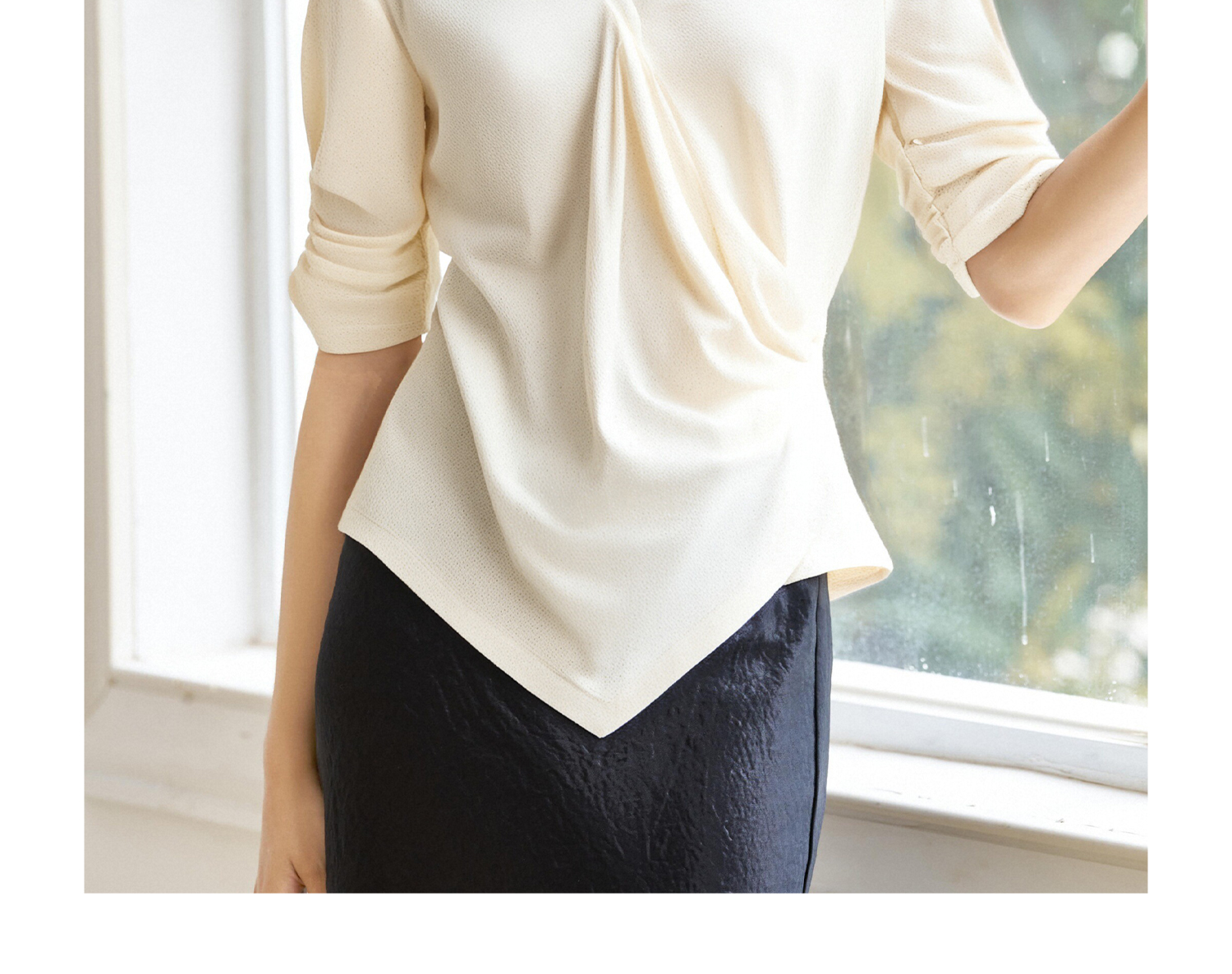 米思阳2025夏季新款设计感不规则捏褶T恤独特细闪气质显瘦小衫女5897