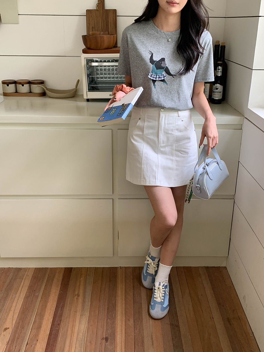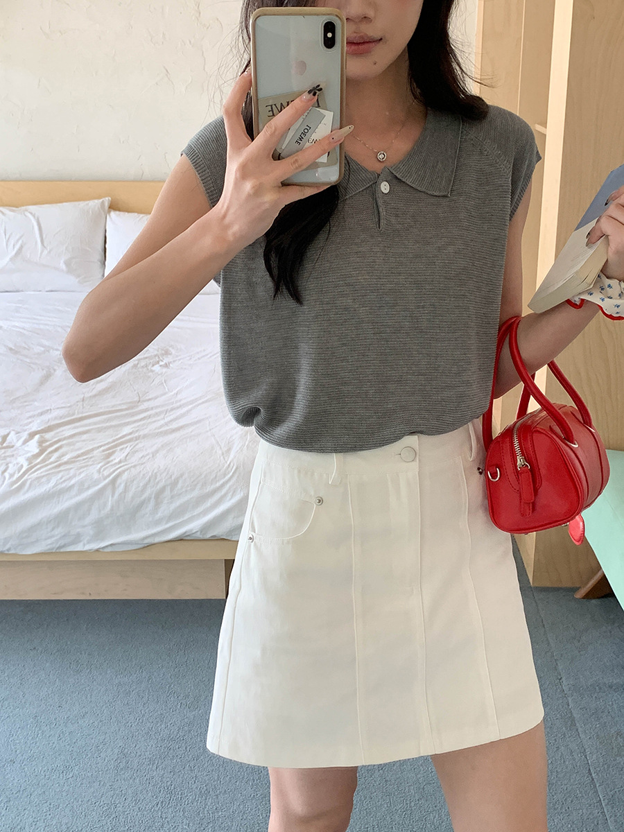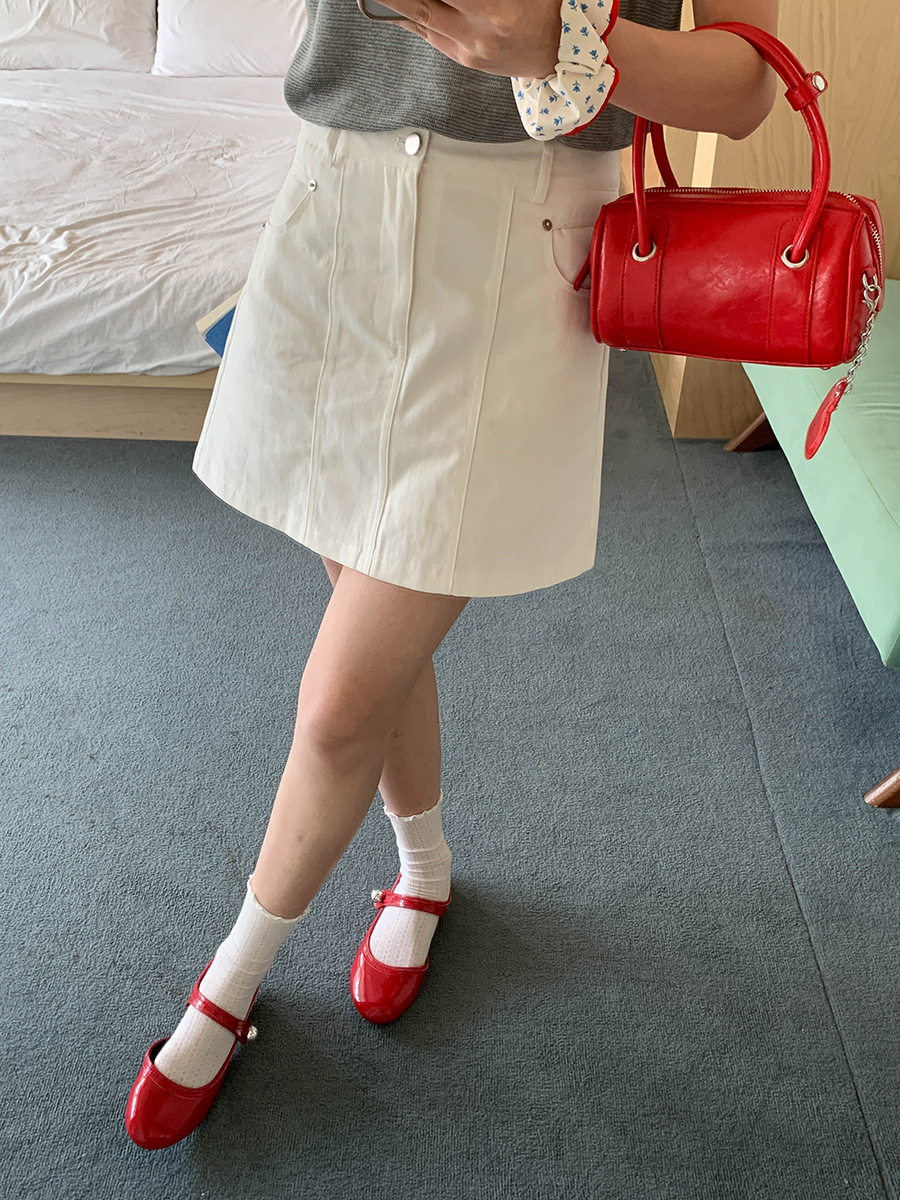 高腰双压线显瘦A 字半身短裙