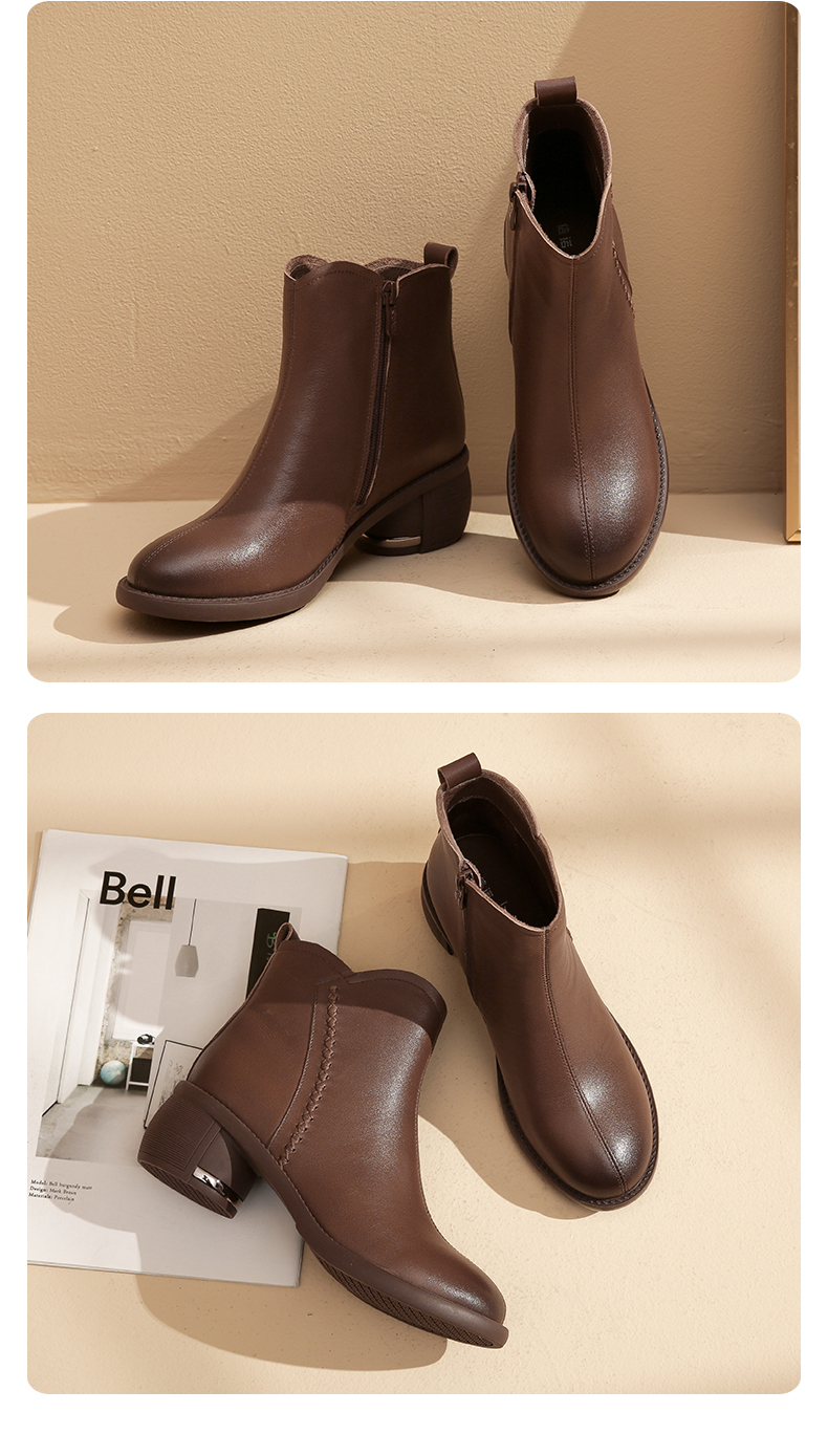 信诺妈妈鞋真皮粗跟乐福鞋2025新款秋季英伦风女士小皮鞋软底单鞋5Q2066-2