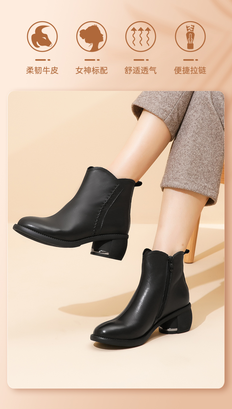 信诺真皮软底妈妈鞋乐福鞋粗跟单鞋一脚蹬小皮鞋女款2025夏季新款5Q5126-1