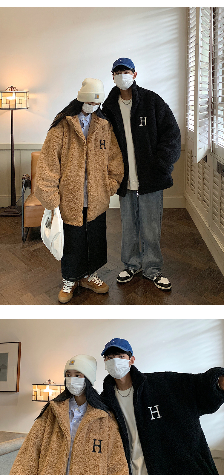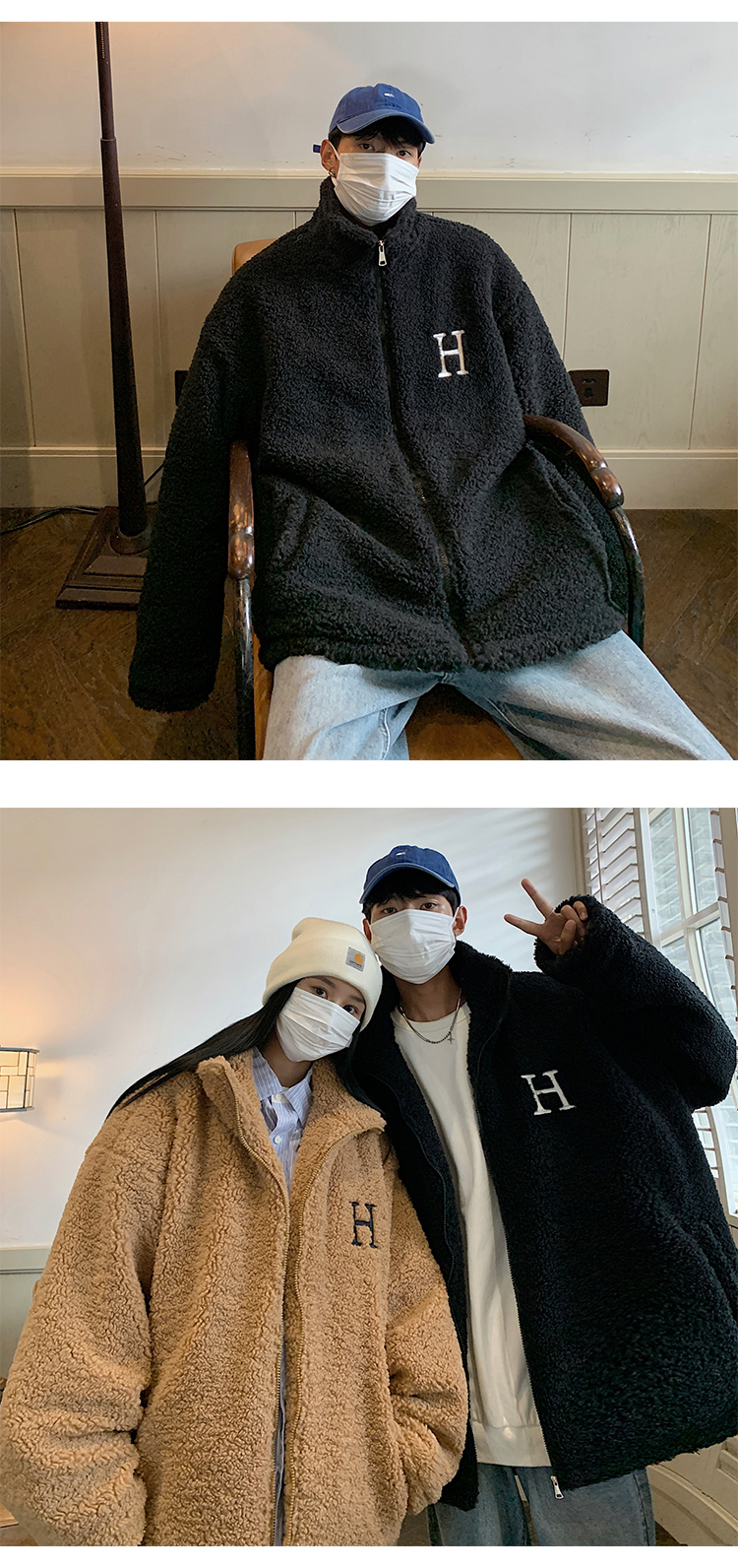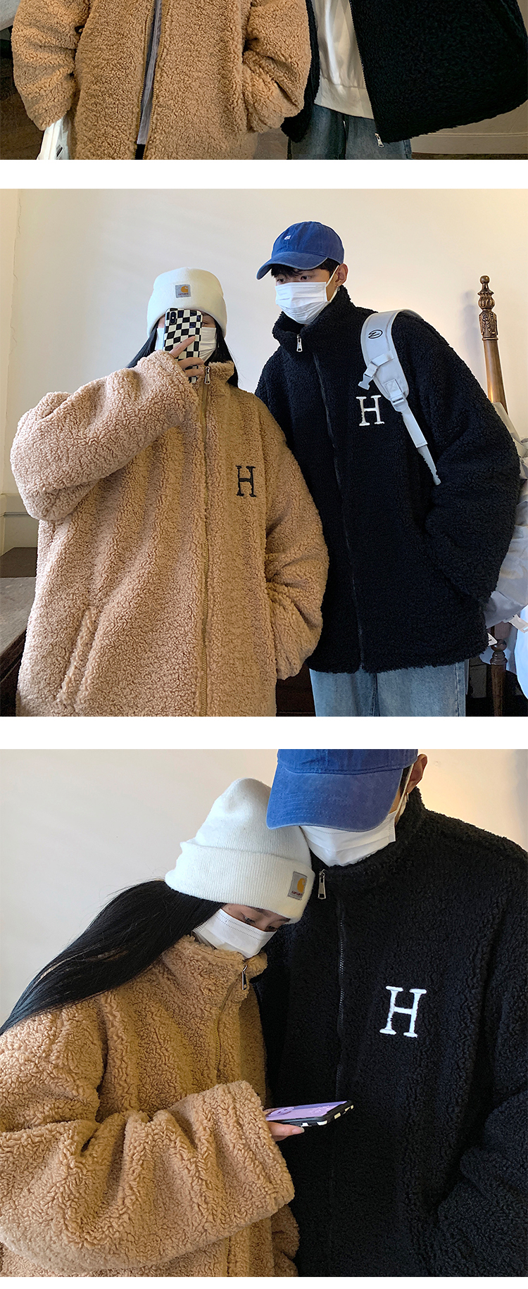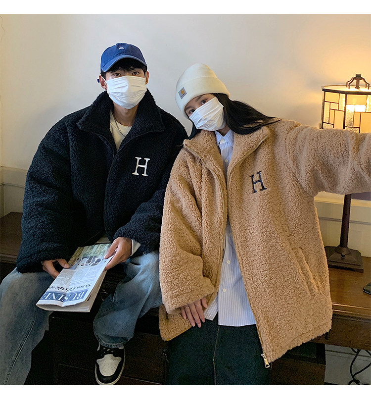 【暖阳棉服 伴你过冬】情侣装冬季字母刺绣羊羔毛棉服男oversize加厚美式复古棉衣外套潮