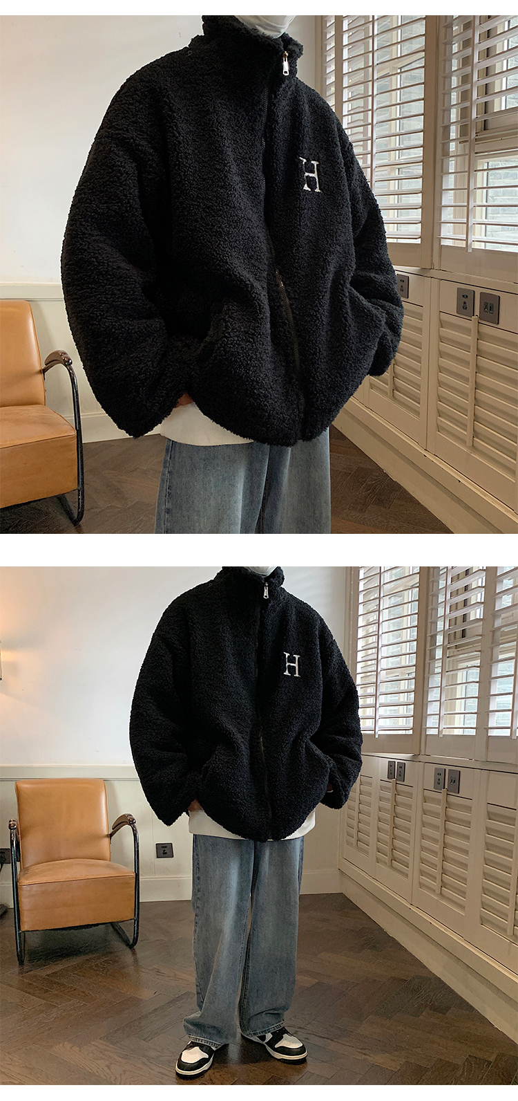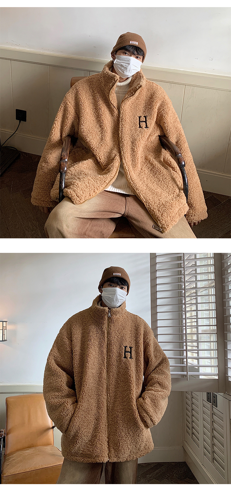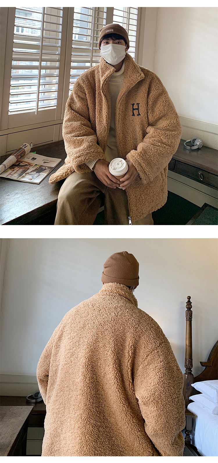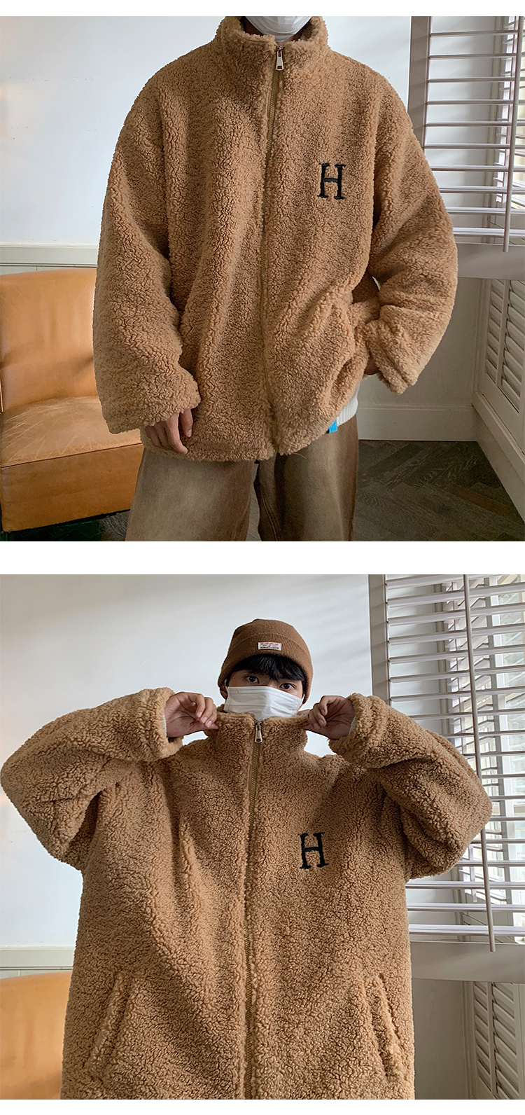 【暖阳棉服 伴你过冬】情侣装冬季字母刺绣羊羔毛棉服男oversize加厚美式复古棉衣外套潮