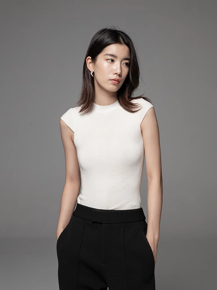 LIYIHAN 24夏秋进口美丽诺100%纯羊毛可机洗包肩袖T恤针织毛衫