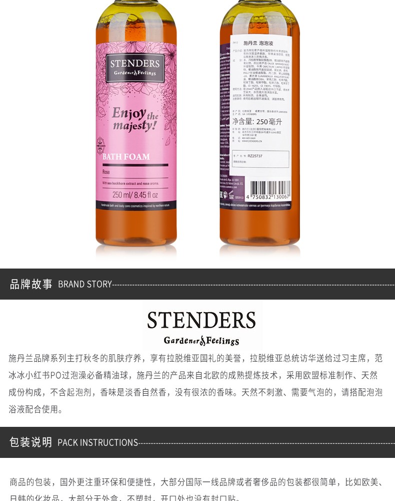 STENDERS/施丹兰 玫瑰泡泡浴液 250MLJPY带授权招加盟代理