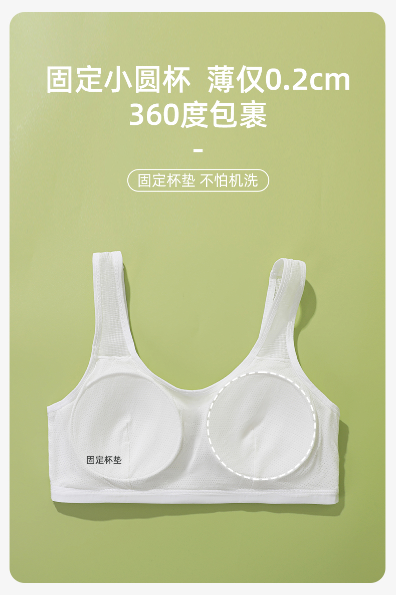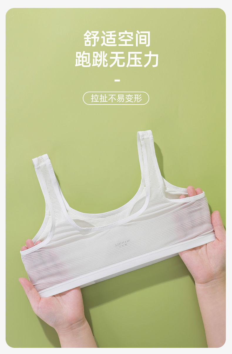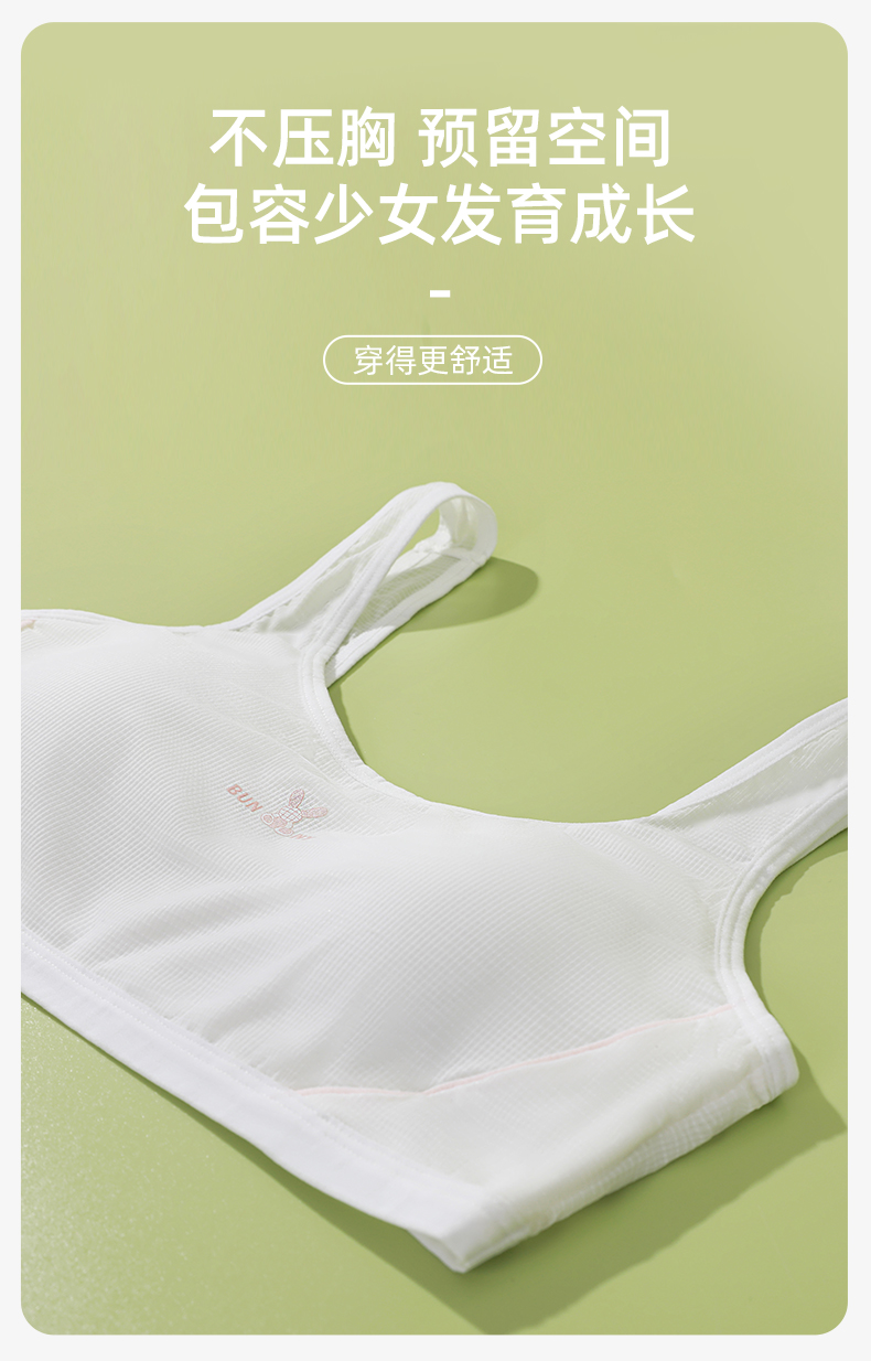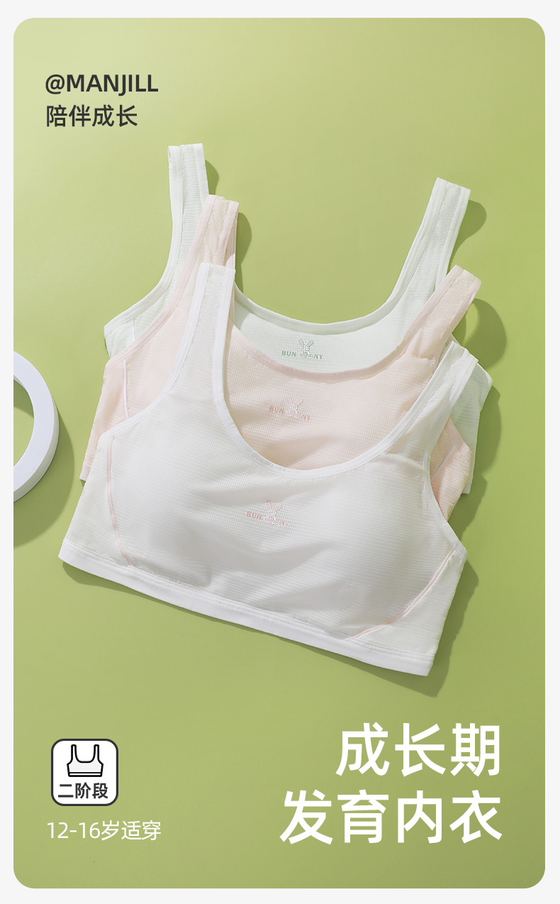 【第3件0元】熳洁儿 凉感格子固定圆杯 二三阶青春发育期少女文胸U型领口商场同款24201608