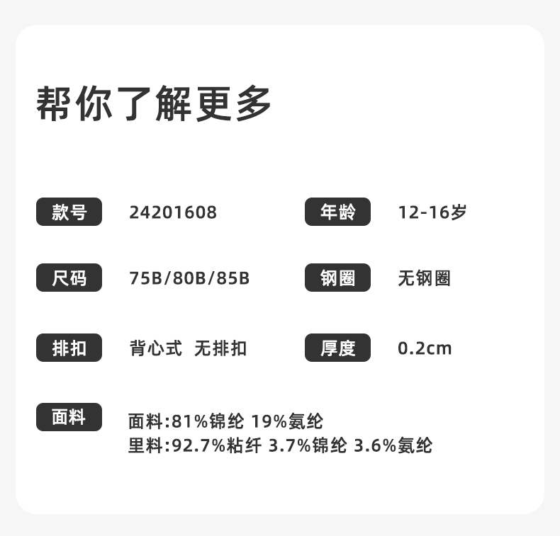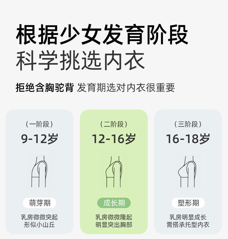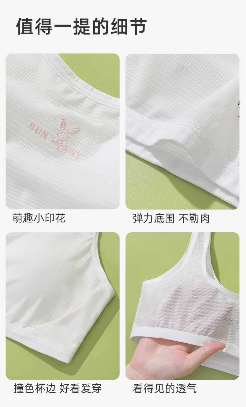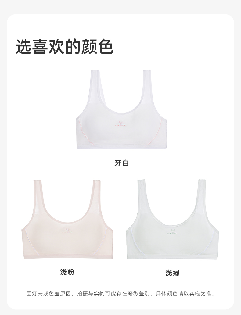 【第3件0元】熳洁儿 凉感格子固定圆杯 二三阶青春发育期少女文胸U型领口商场同款24201608
