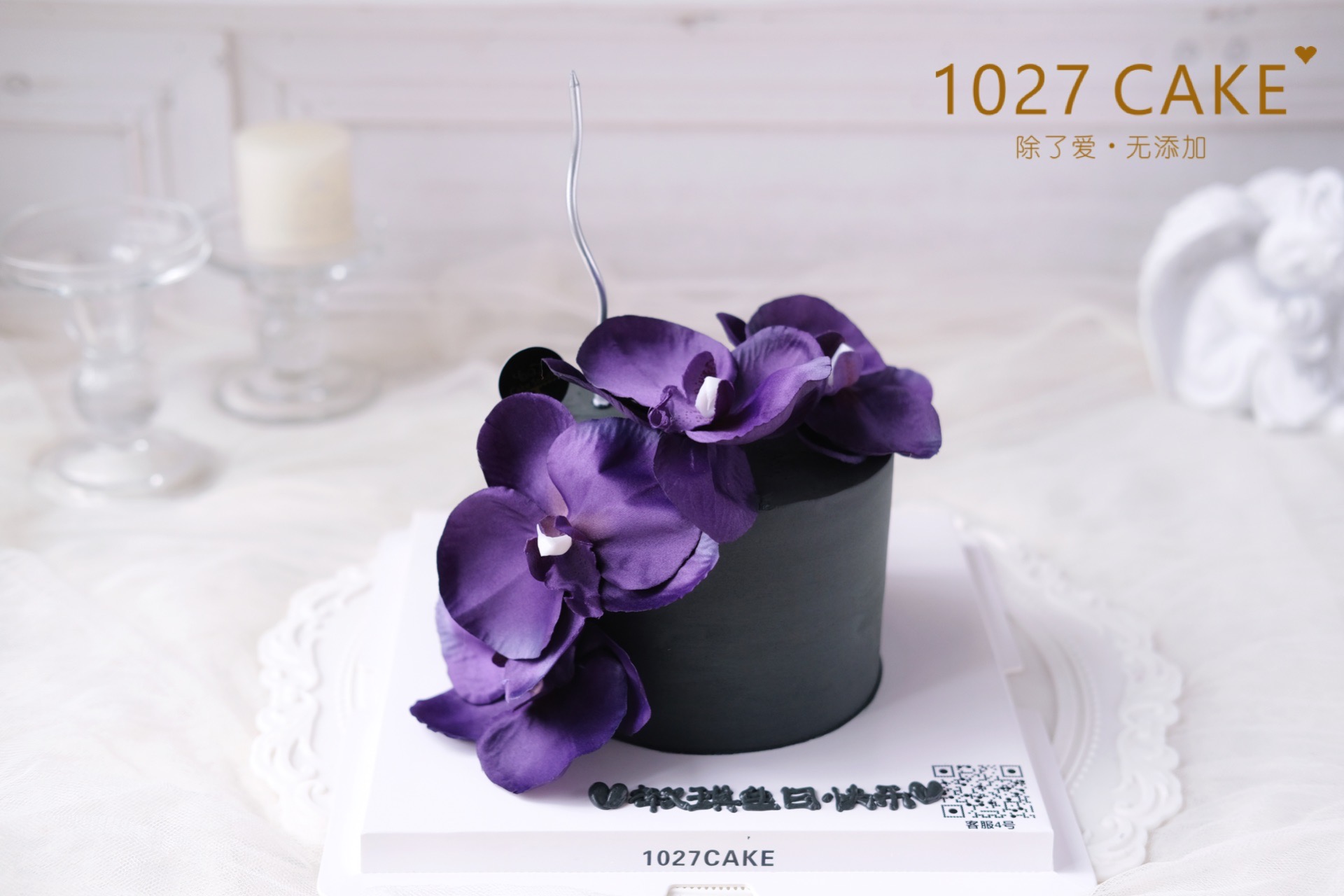 1027CAKE | 暗黑紫蝴蝶兰(图为假花,蛋糕颜色较重会染色,介意勿拍)