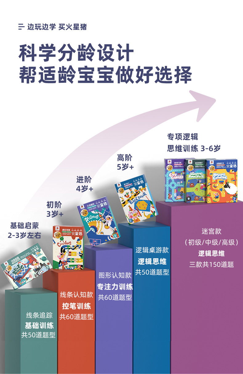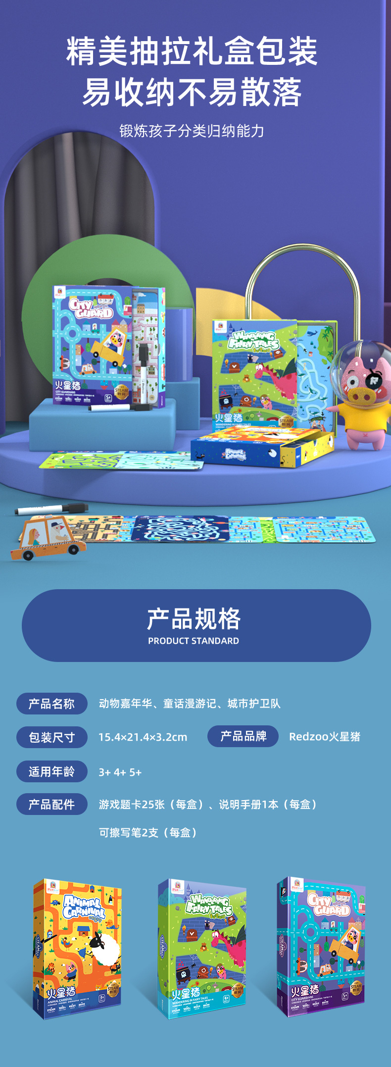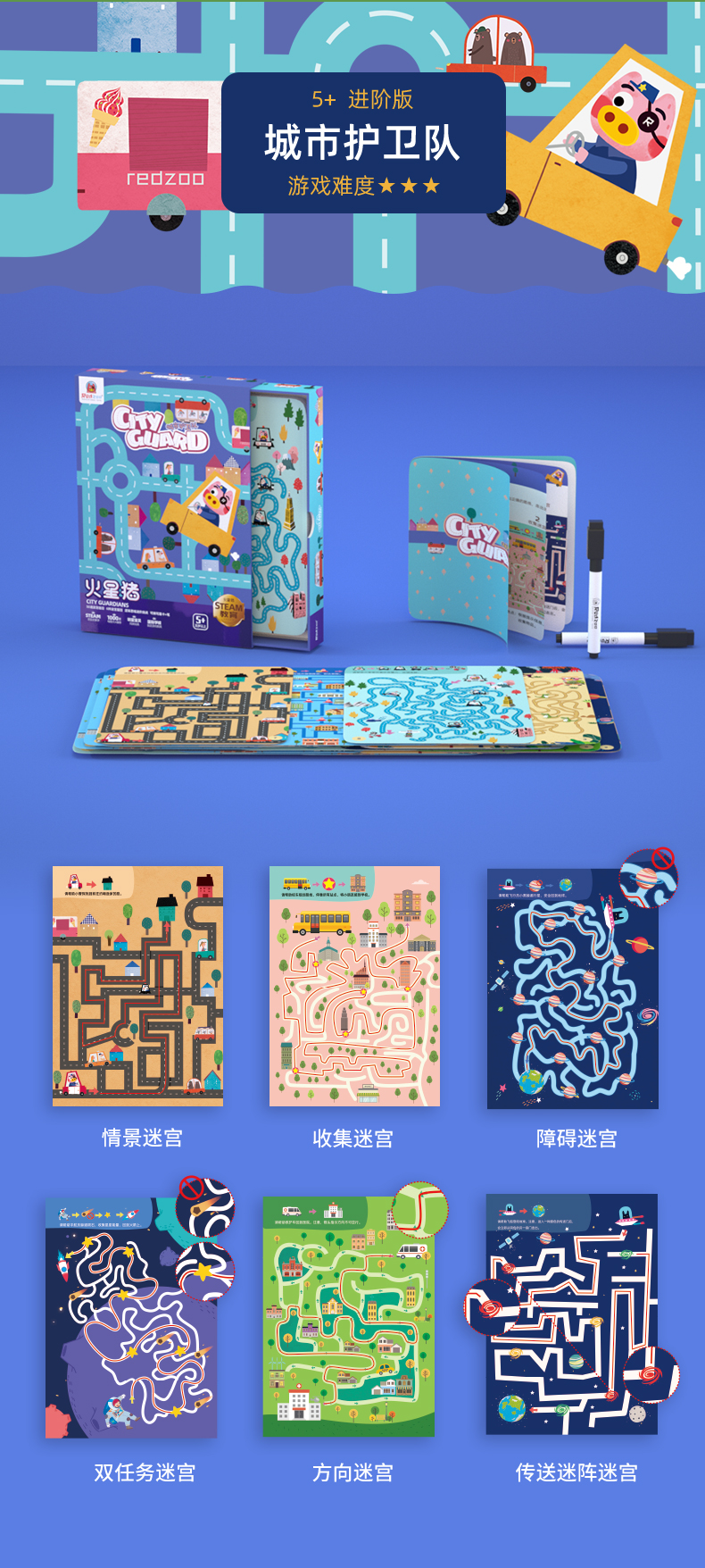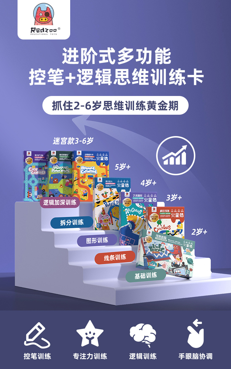 【控笔+逻辑进阶桌游迷宫卡】Redzoo火星猪儿童专注力思维逻辑训练走迷宫书 分龄进阶式 益智玩具
